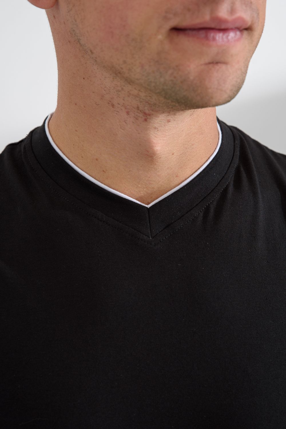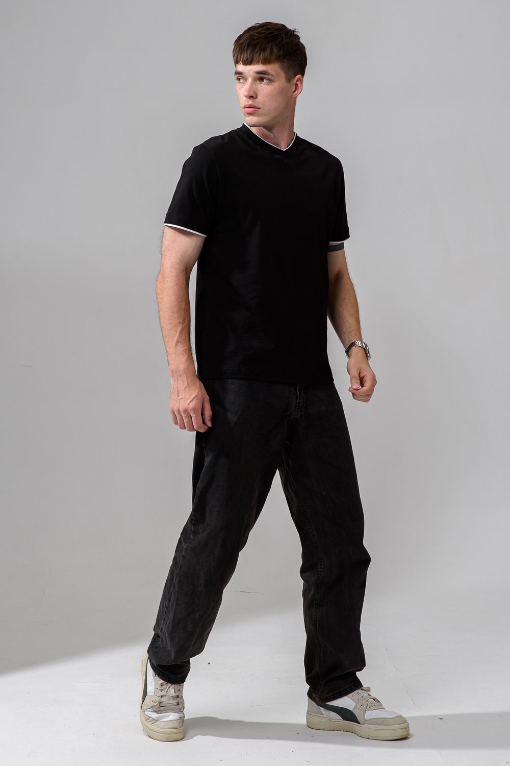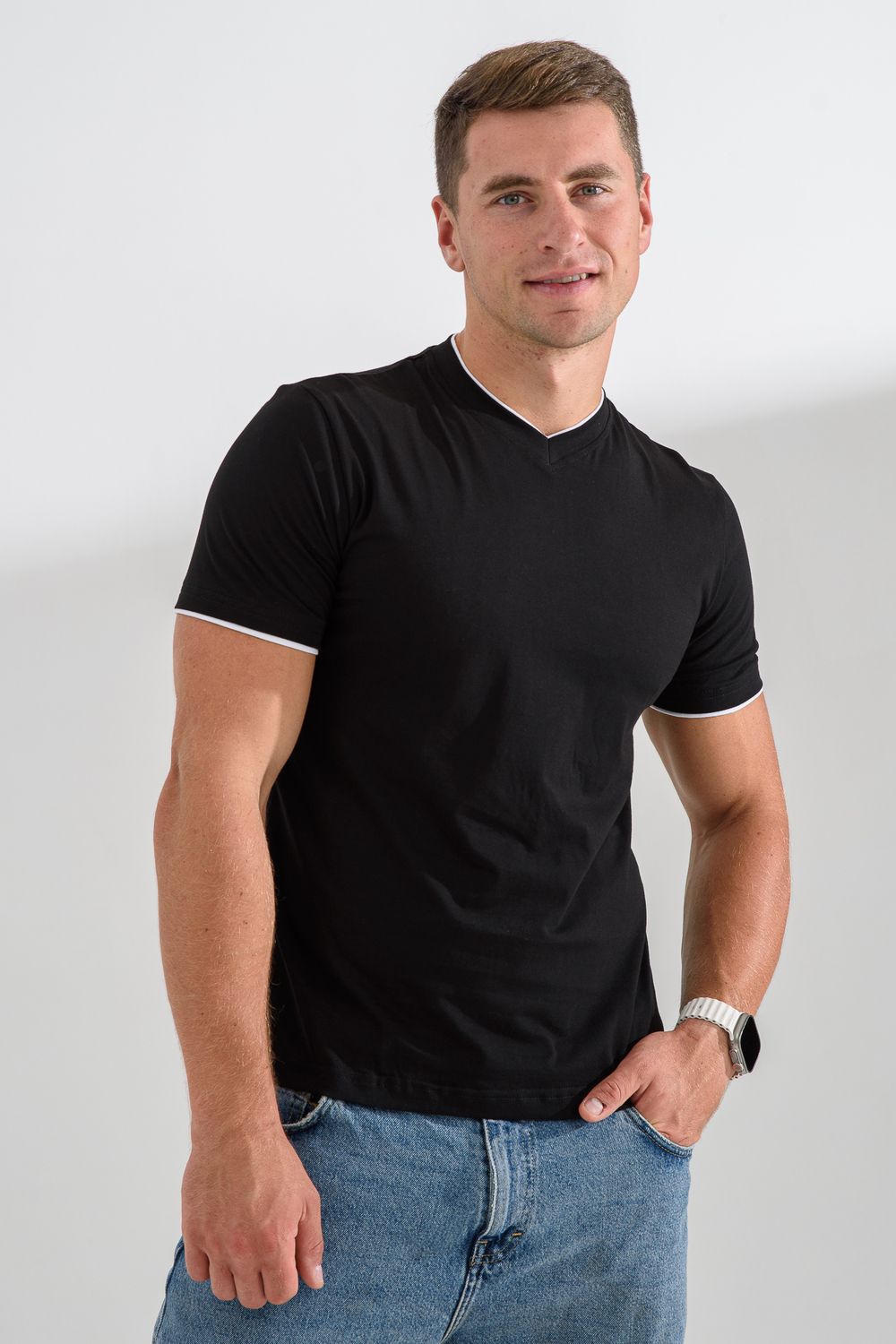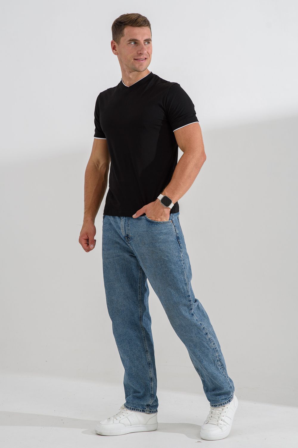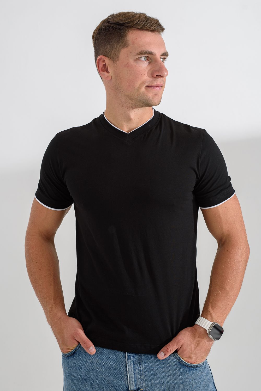 Футболка мужская однотонная с окантовкой из плотного дышащего хлопка. Модель в расслабленном молодежном стиле. Свободный прямой крой – база для любого гардероба. Представлены мягкие футболки стандартных размеров, подходят на высокий рост. С усиленным V-Образным вырезом и окантовкой, подойдет для тренировок, офиса, учебы, активного отдыха, туристических поездок, встреч с друзьями и дома.
