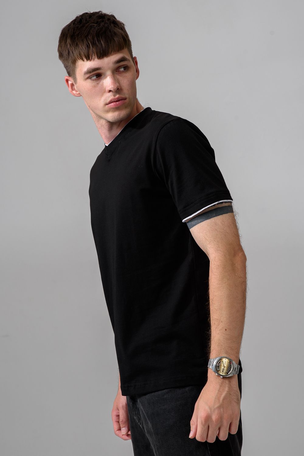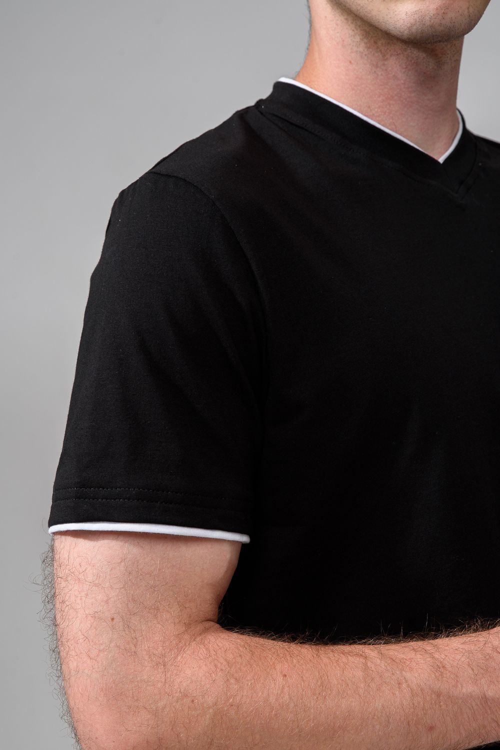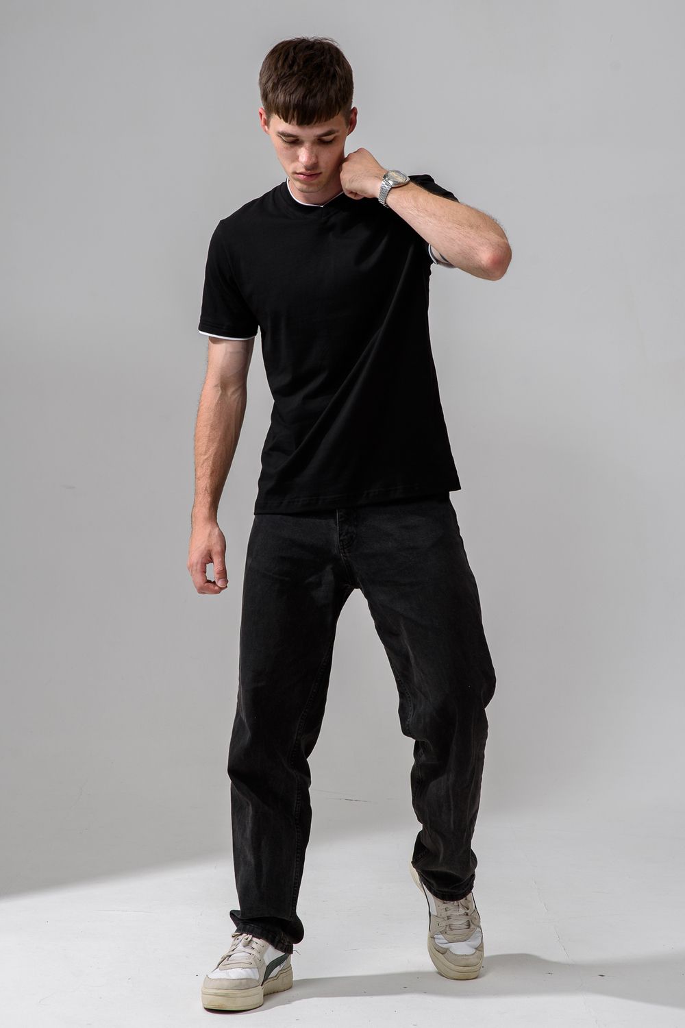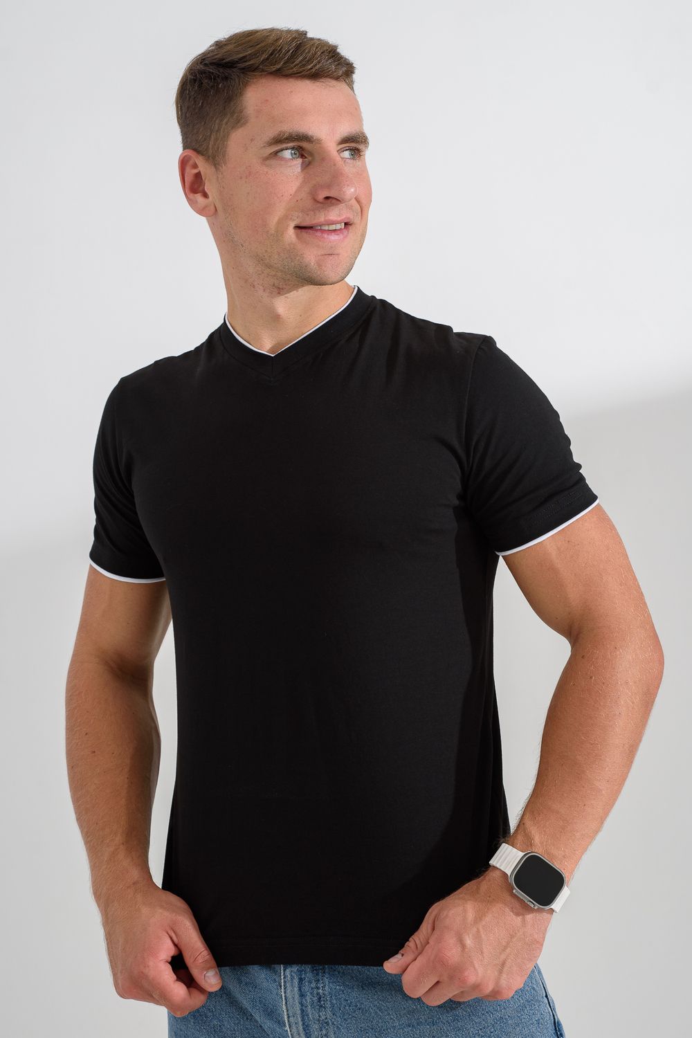 Футболка мужская однотонная с окантовкой из плотного дышащего хлопка. Модель в расслабленном молодежном стиле. Свободный прямой крой – база для любого гардероба. Представлены мягкие футболки стандартных размеров, подходят на высокий рост. С усиленным V-Образным вырезом и окантовкой, подойдет для тренировок, офиса, учебы, активного отдыха, туристических поездок, встреч с друзьями и дома.