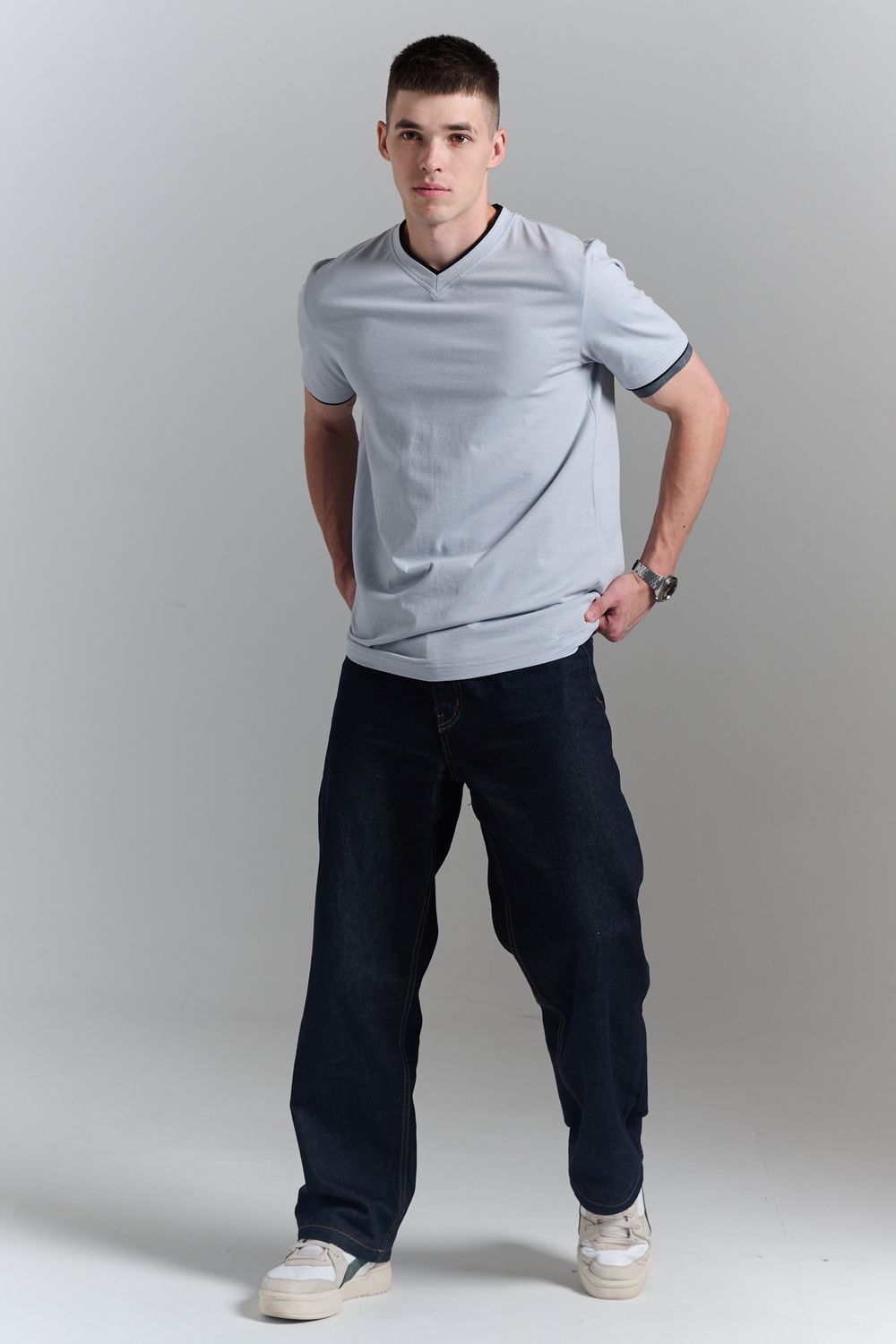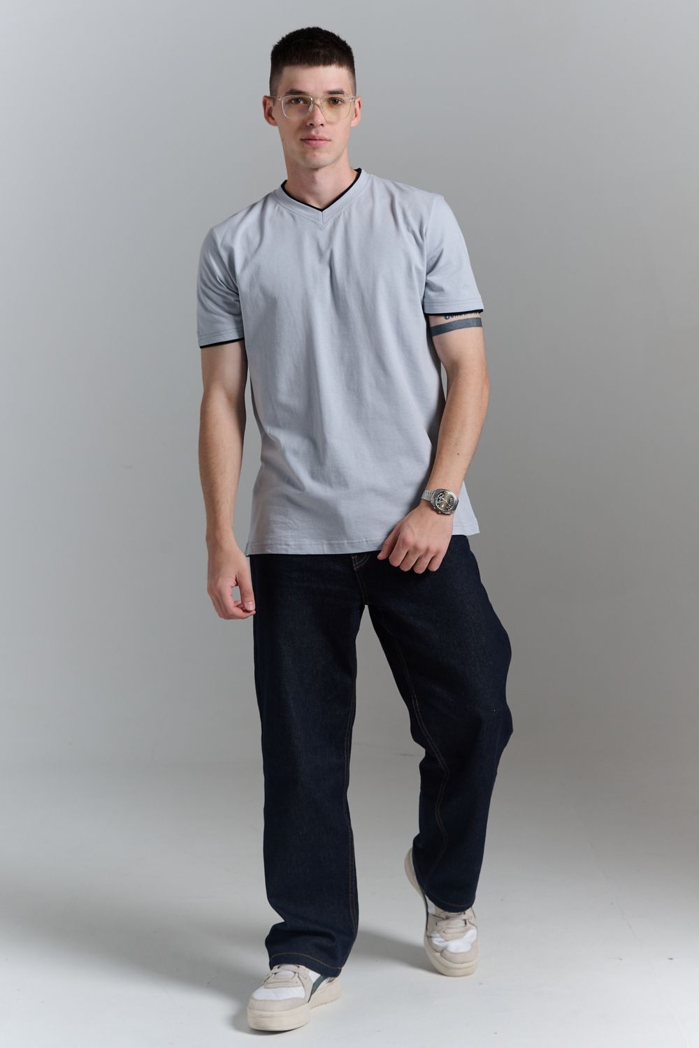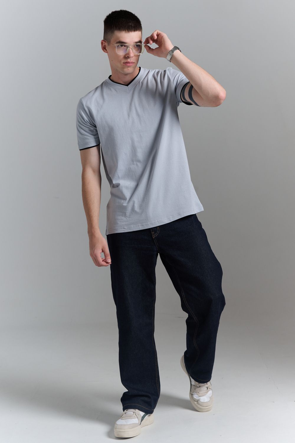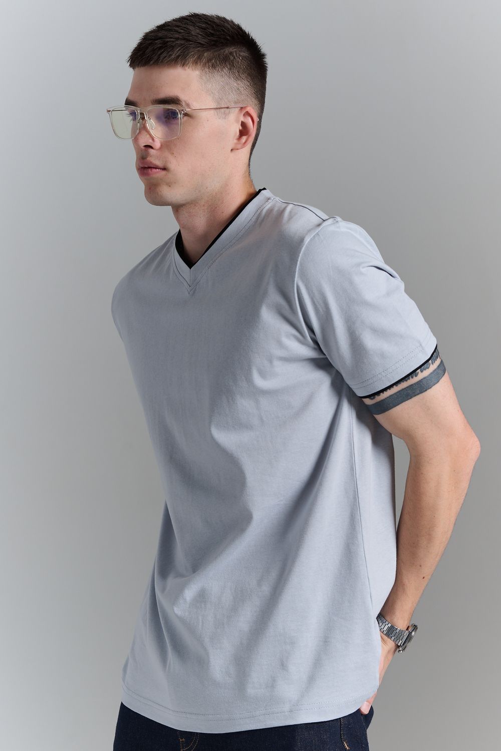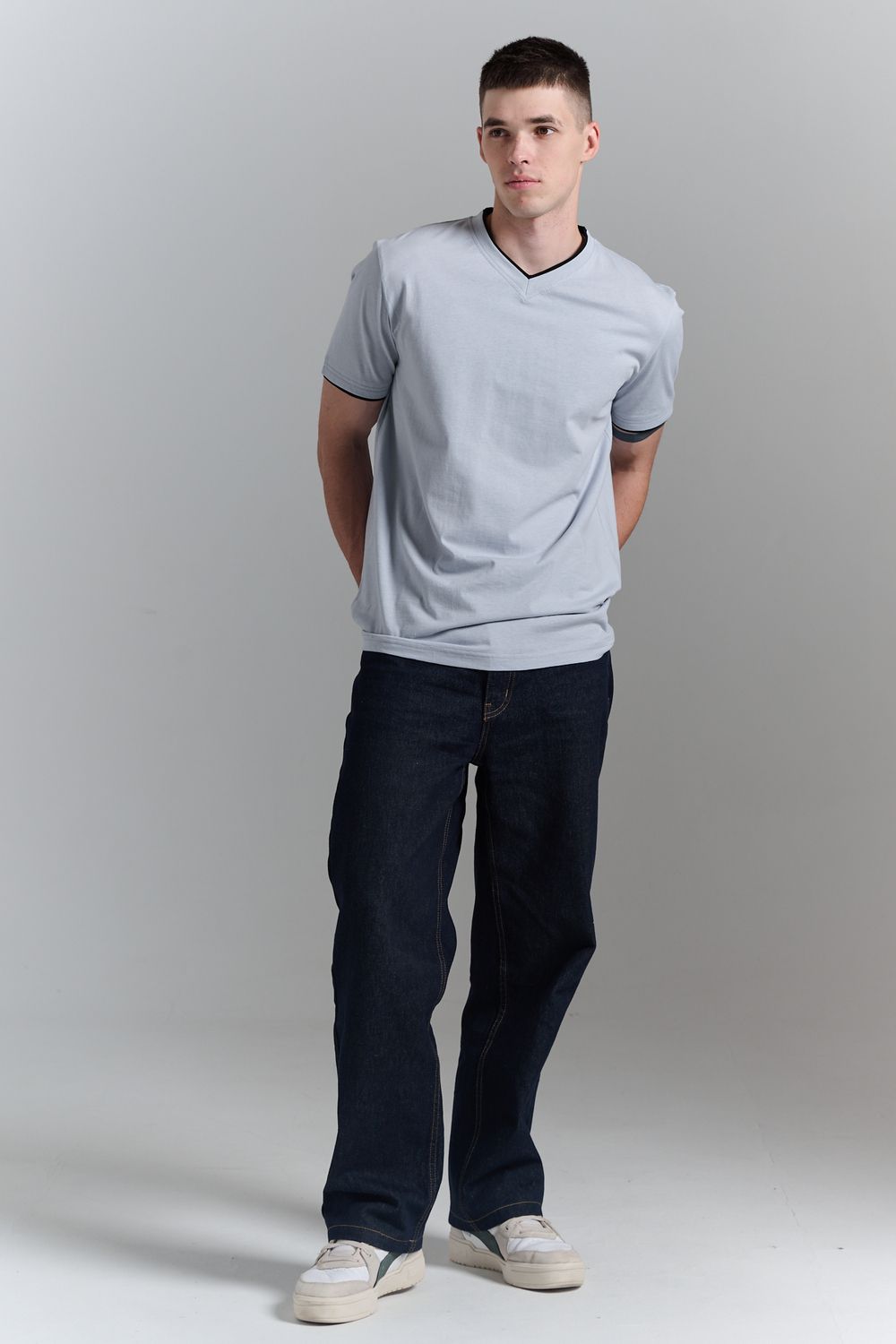 Футболка мужская однотонная с окантовкой из плотного дышащего хлопка. Модель в расслабленном молодежном стиле. Свободный прямой крой – база для любого гардероба. Представлены мягкие футболки стандартных размеров, подходят на высокий рост. С усиленным V-Образным вырезом и окантовкой, подойдет для тренировок, офиса, учебы, активного отдыха, туристических поездок, встреч с друзьями и дома.