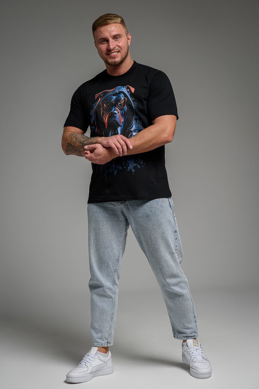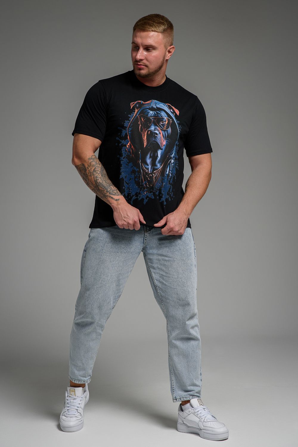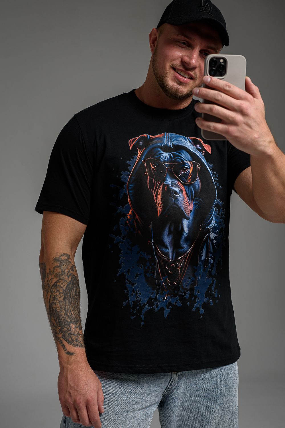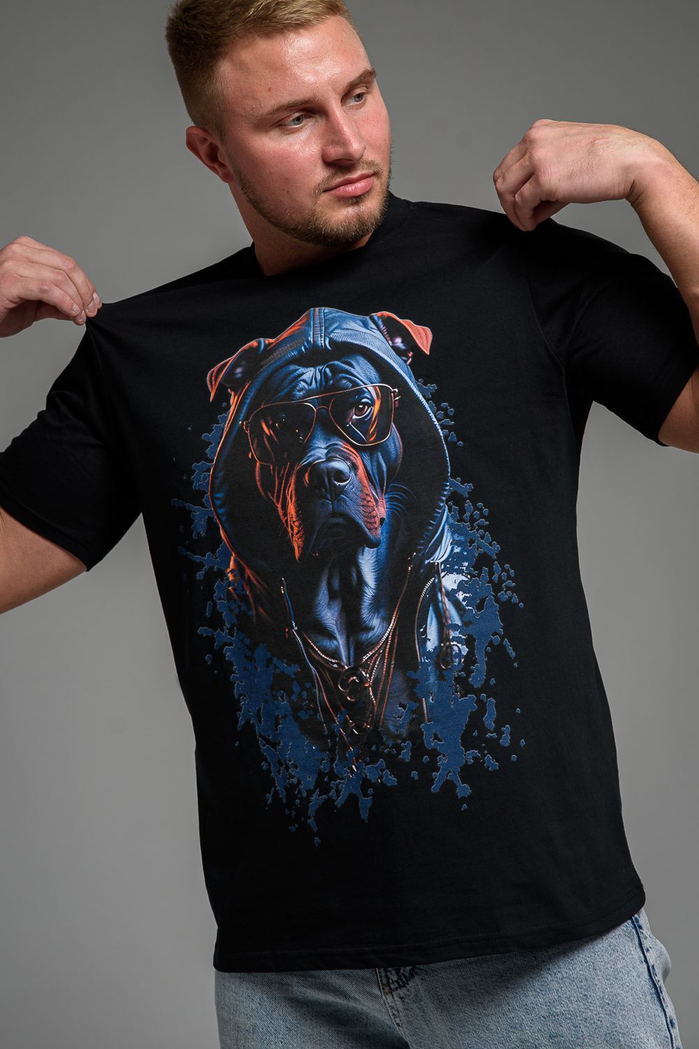 Футболка мужская 8492 - черный+собака в очках