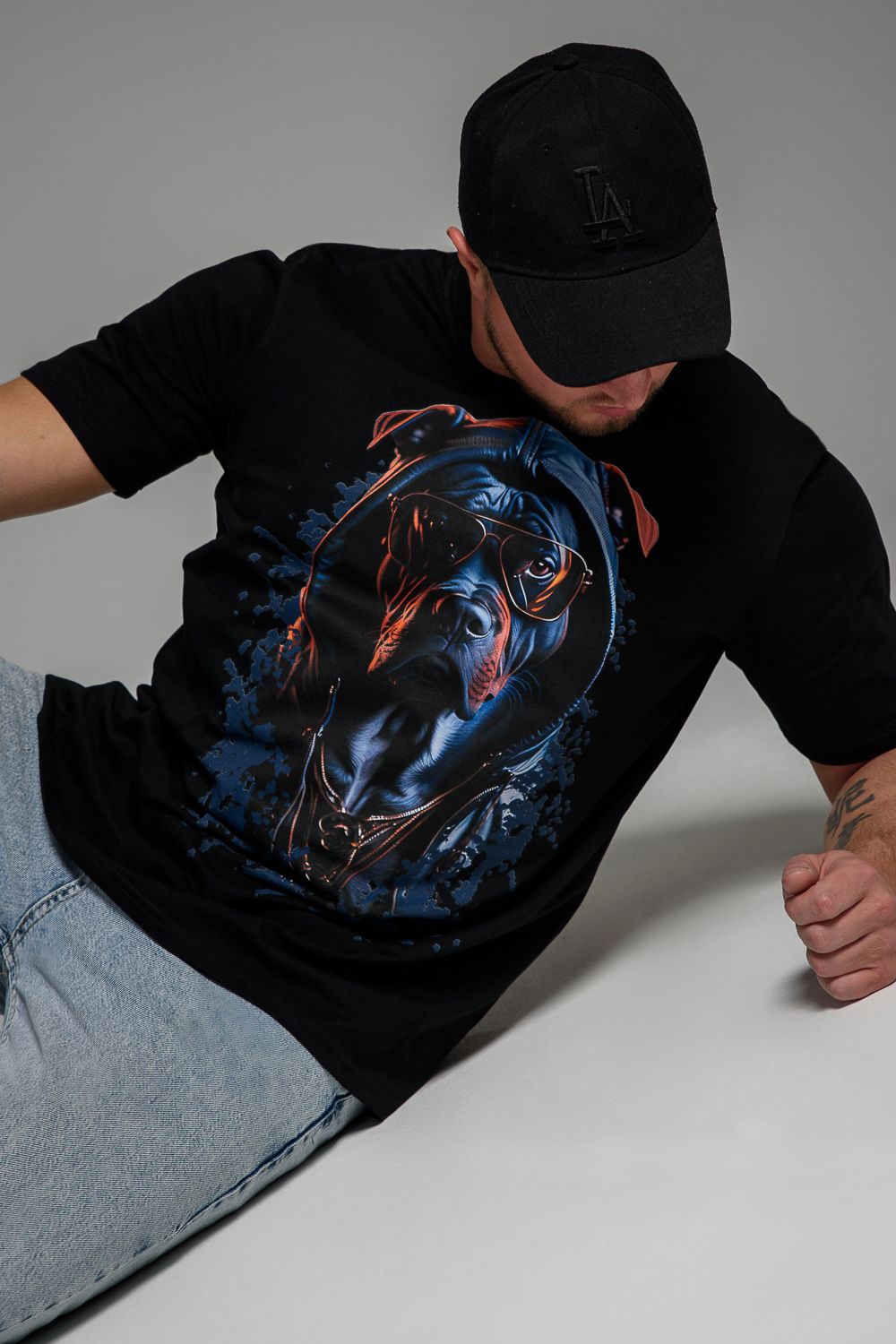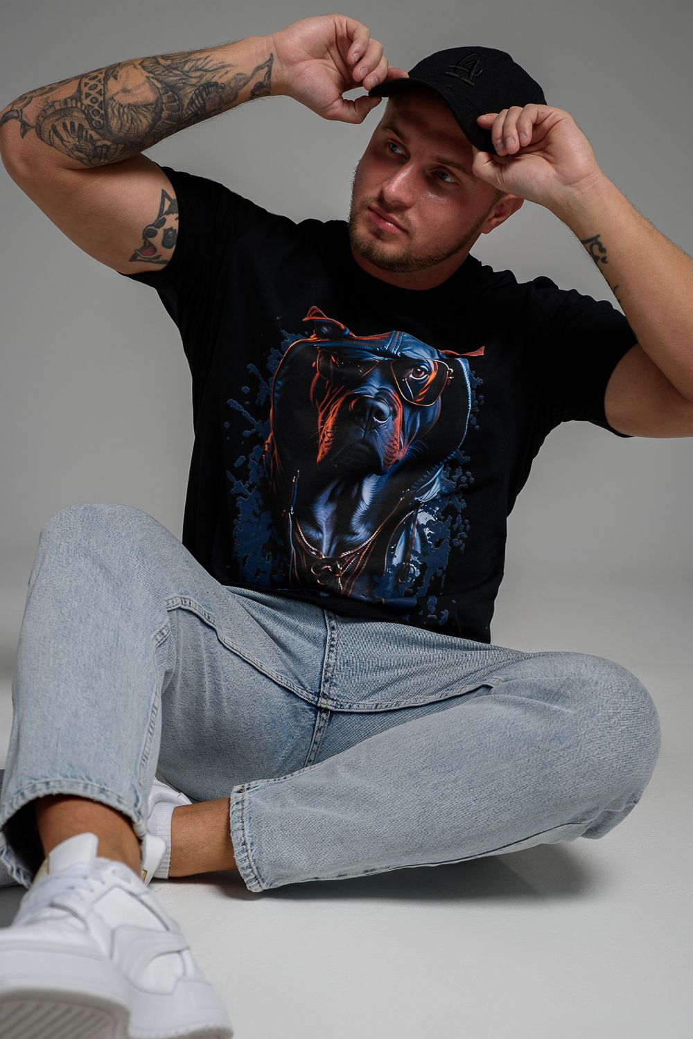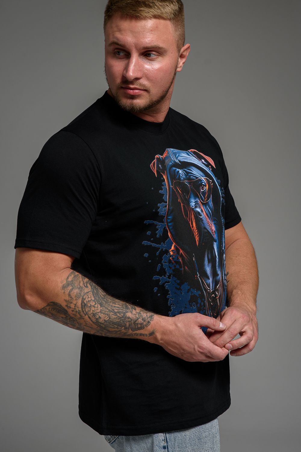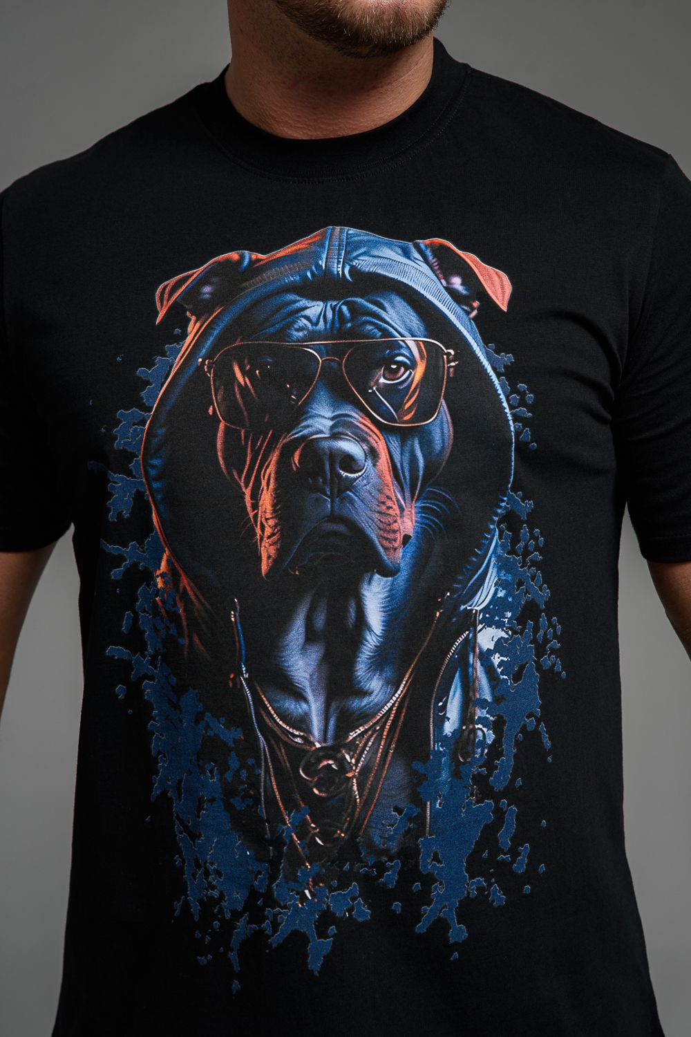 Футболка мужская 8492 - черный+собака в очках