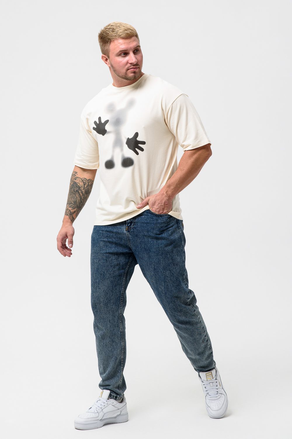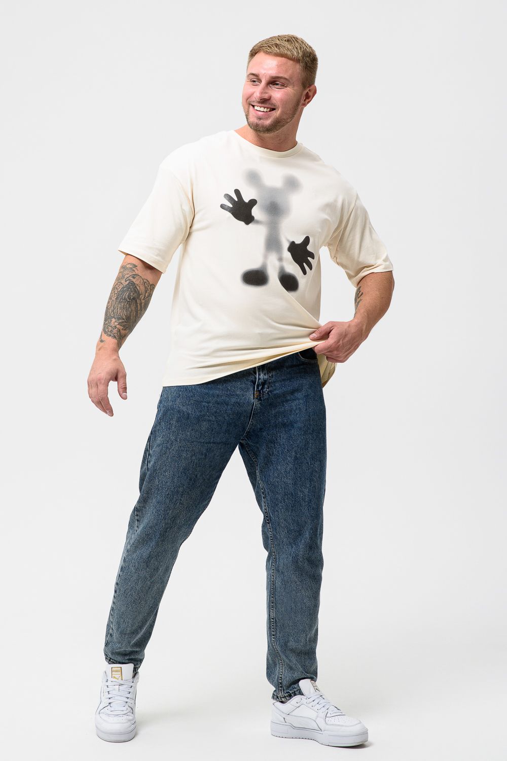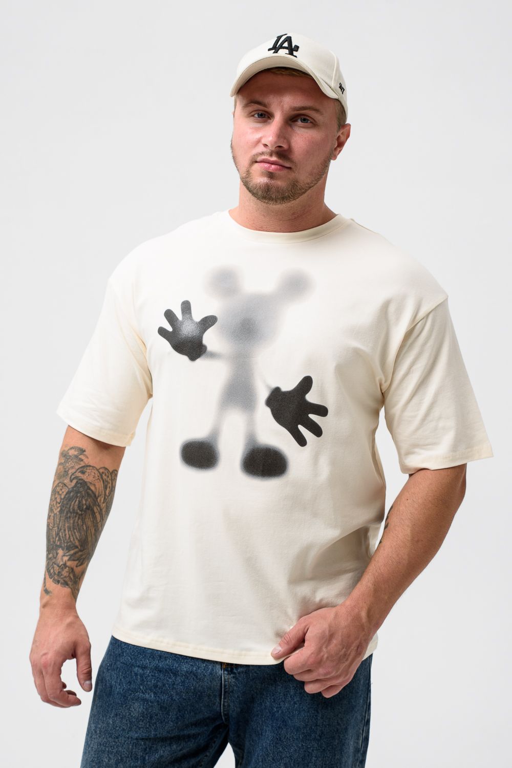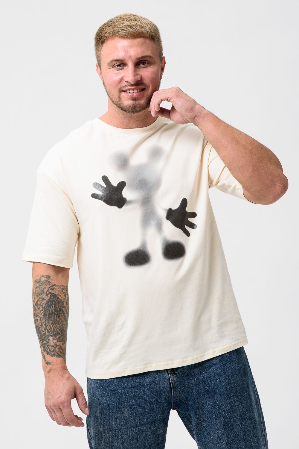 Футболка мужская 8507/1 оверсайз - молочный+Микки Маус