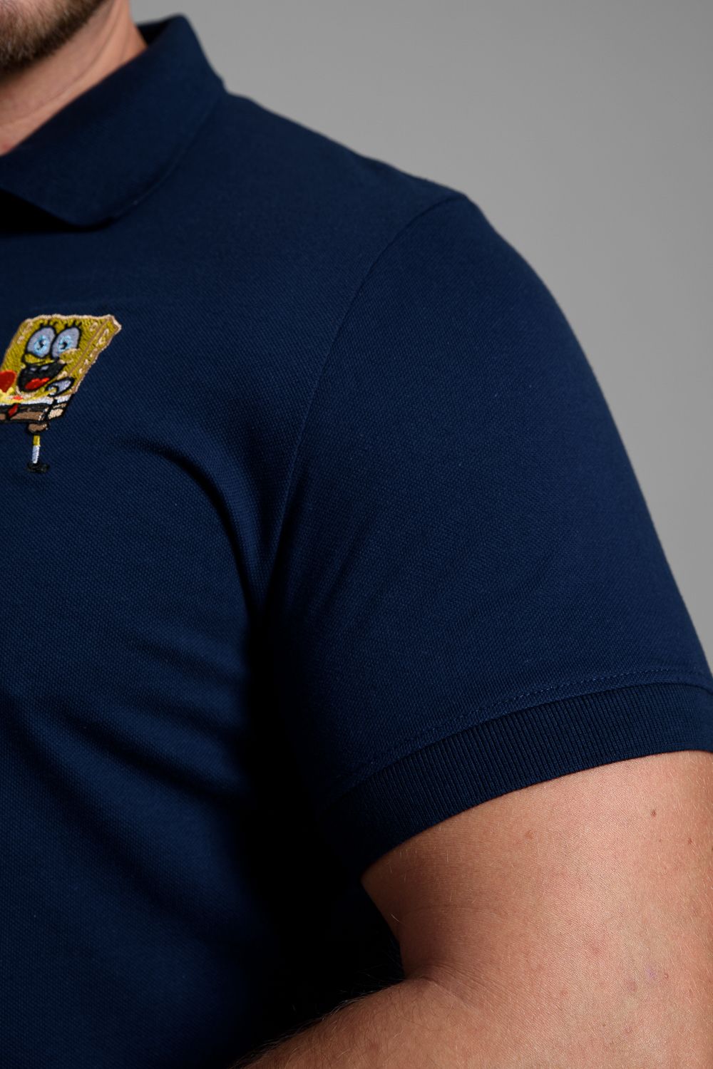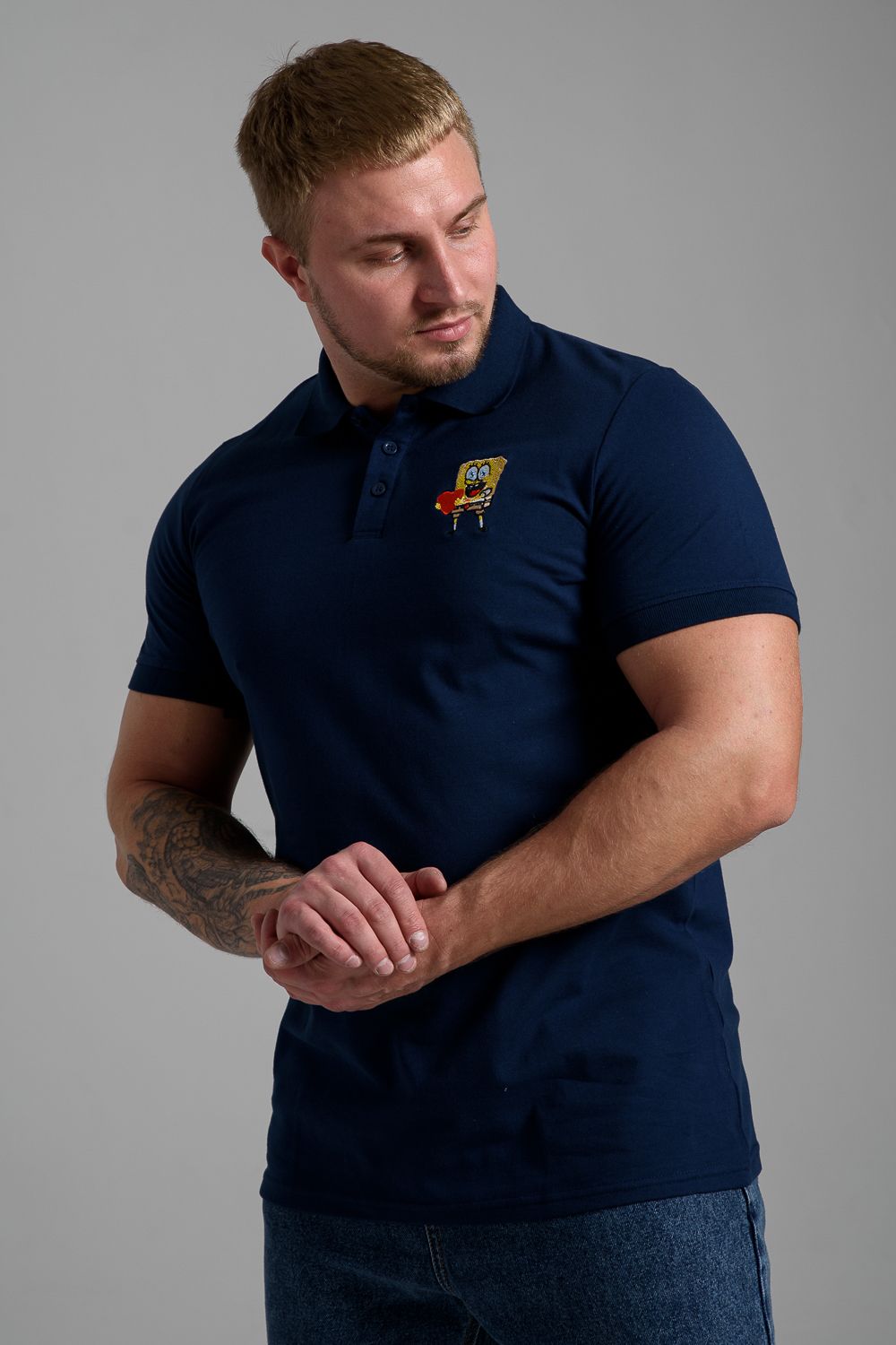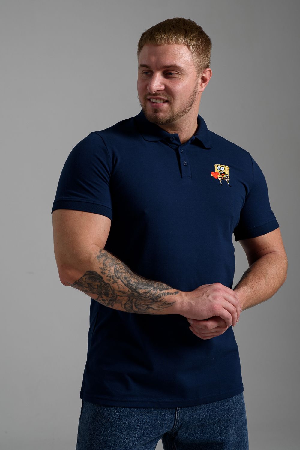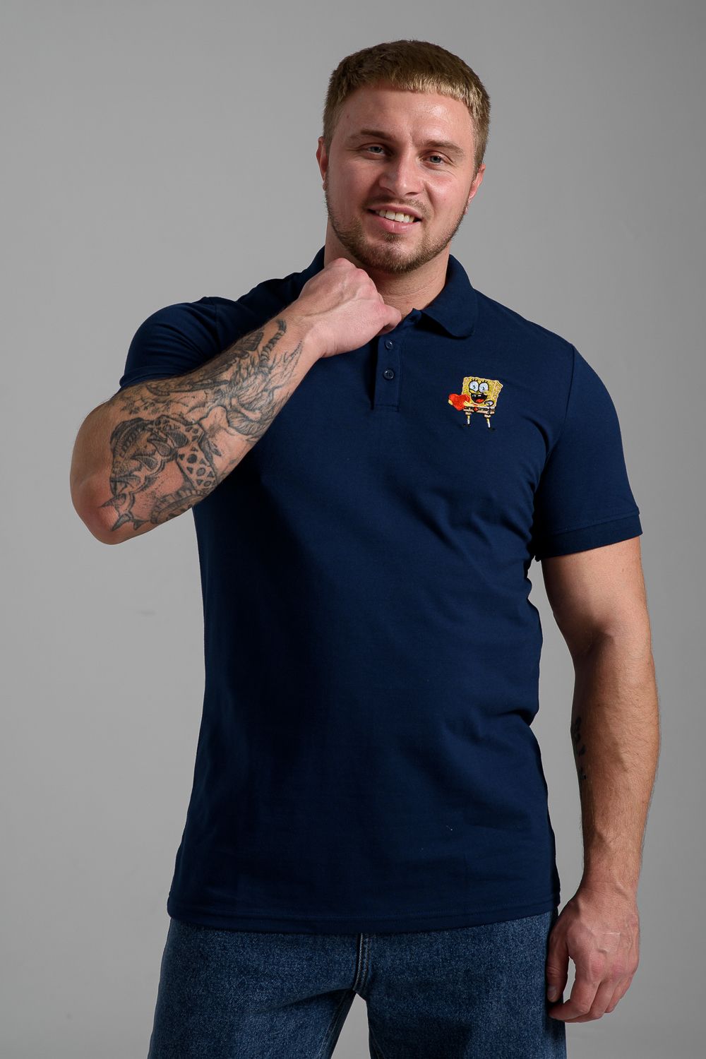 Футболка поло мужская 8501 - темно-синий+губка Боб