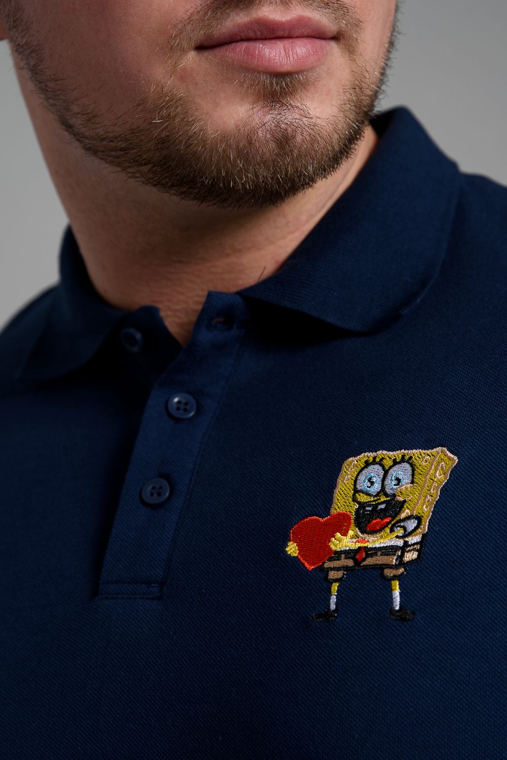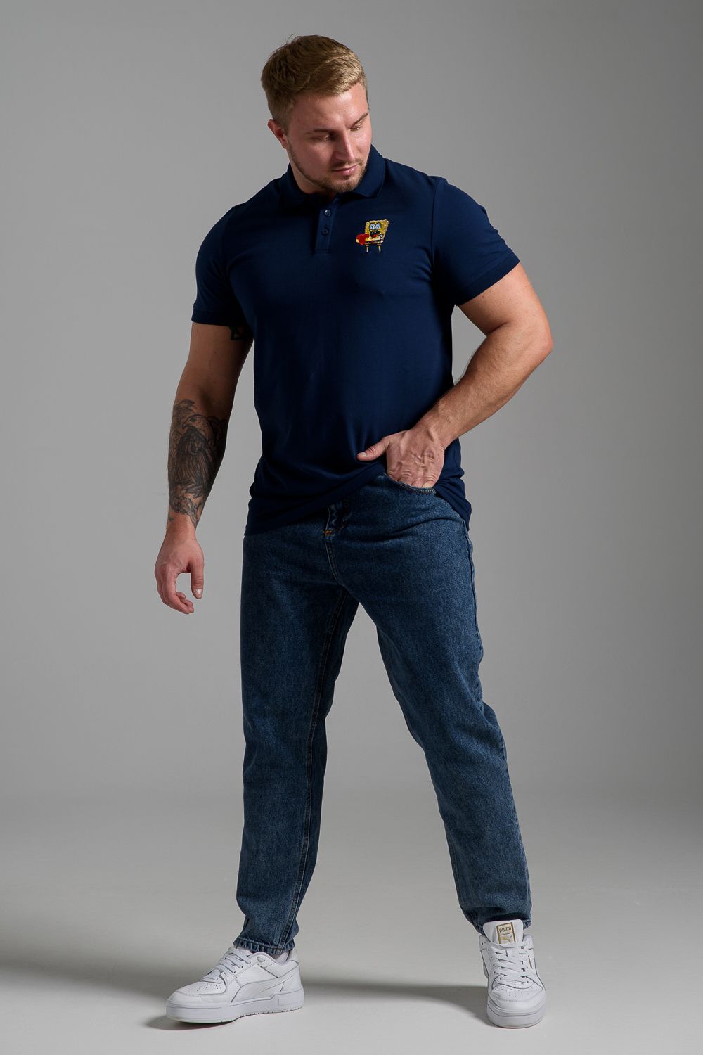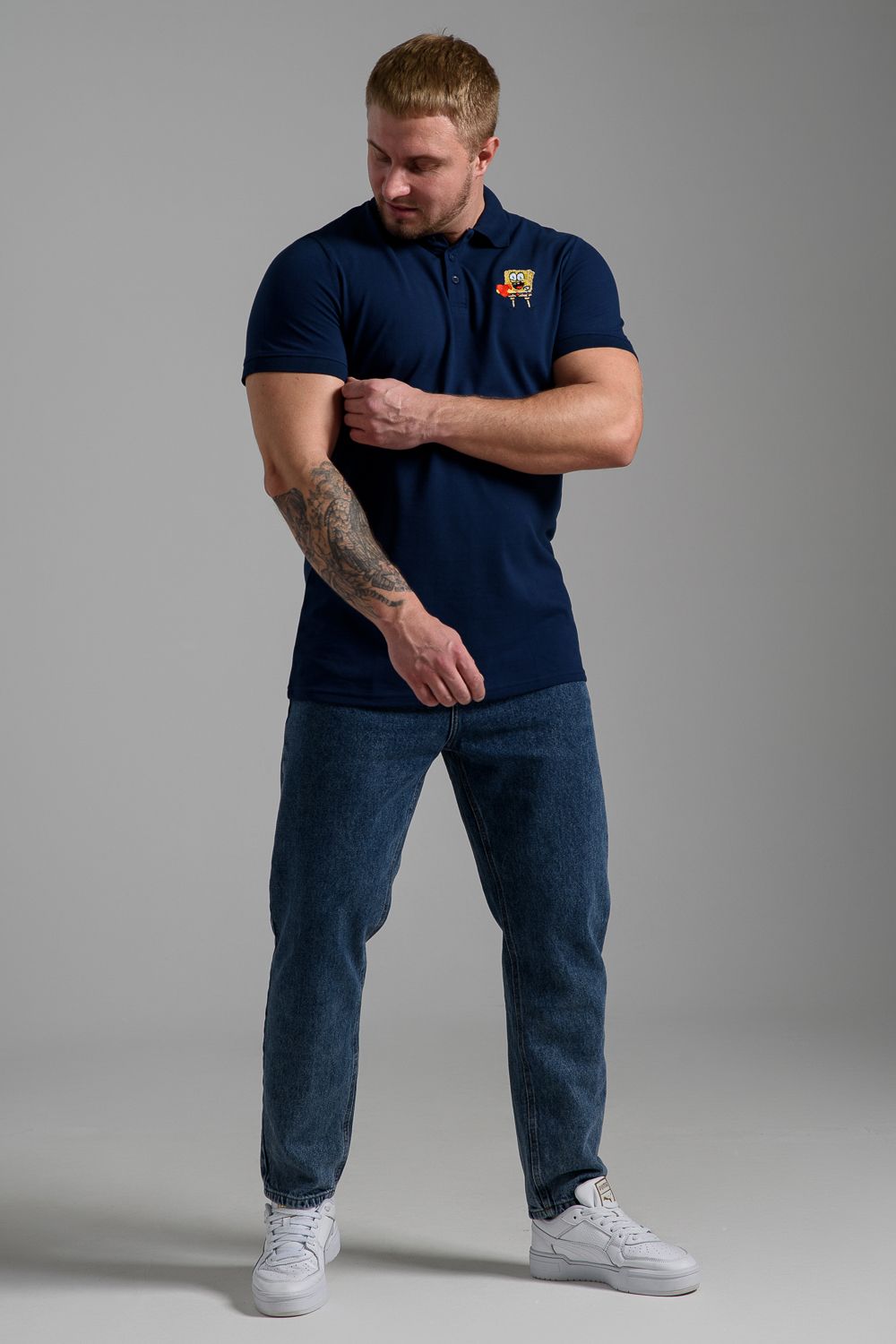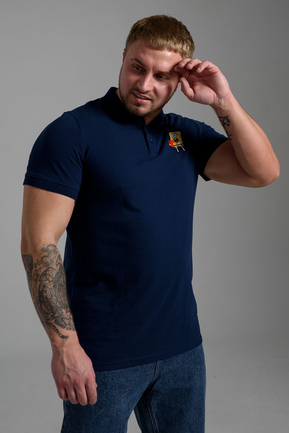 Футболка поло мужская 8501 - темно-синий+губка Боб