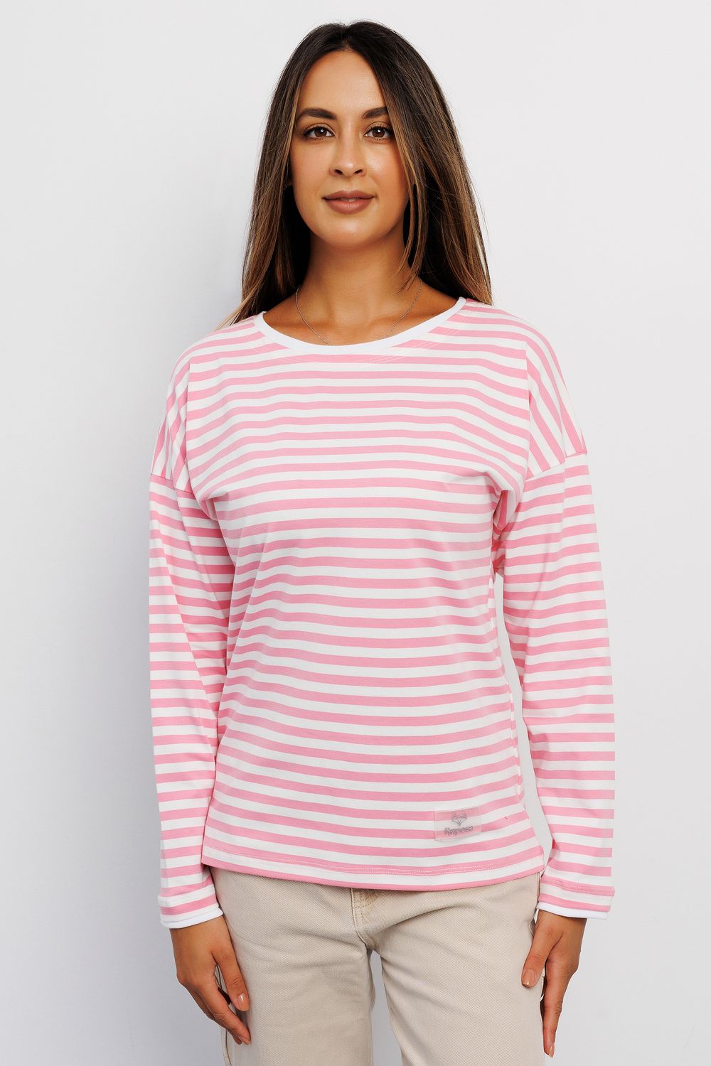 Футболка с длинным рукавом тельняшка 383 - полоса розовая
