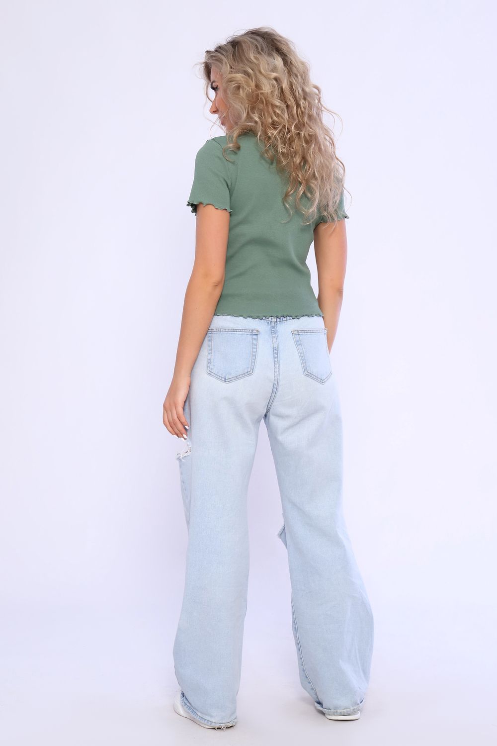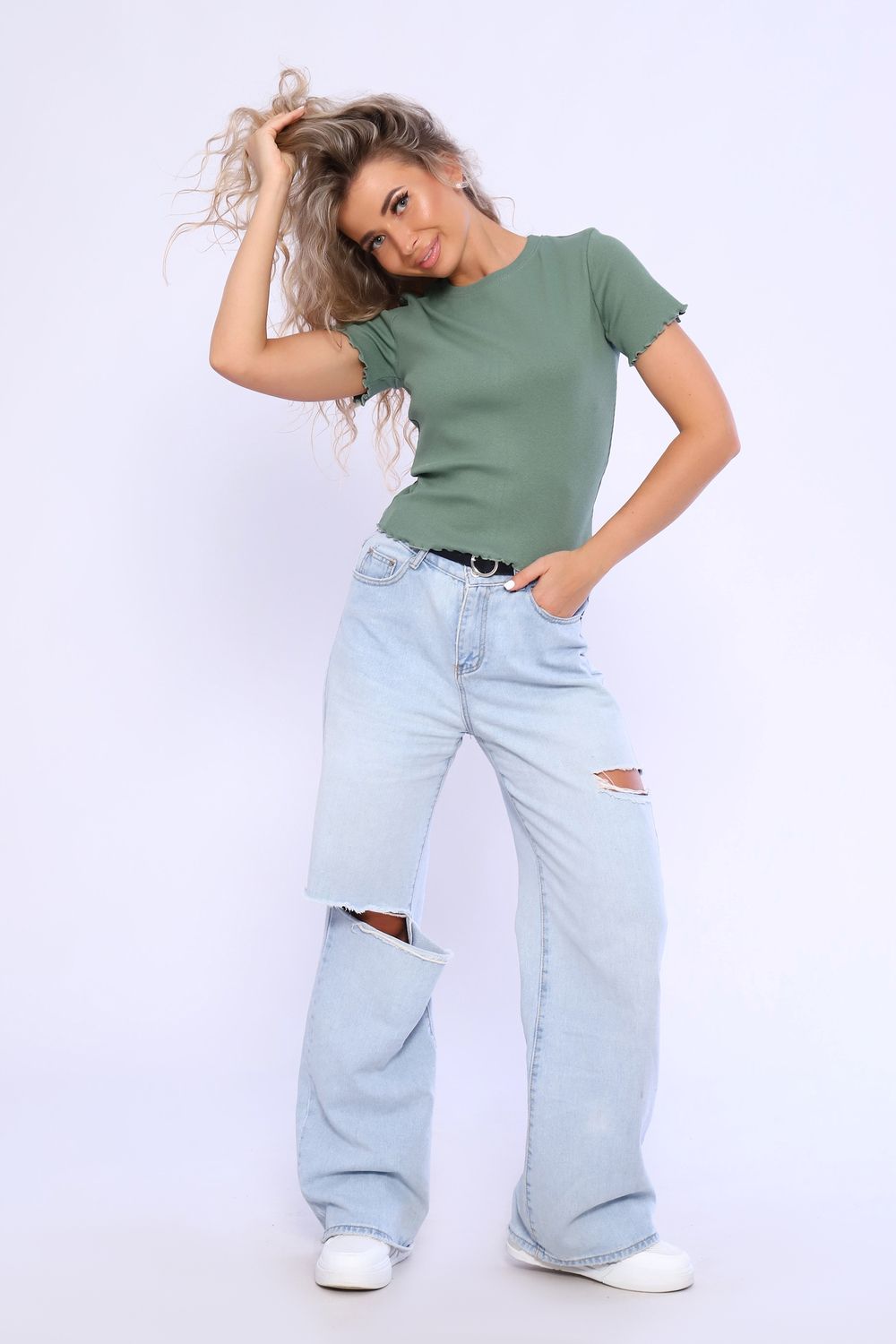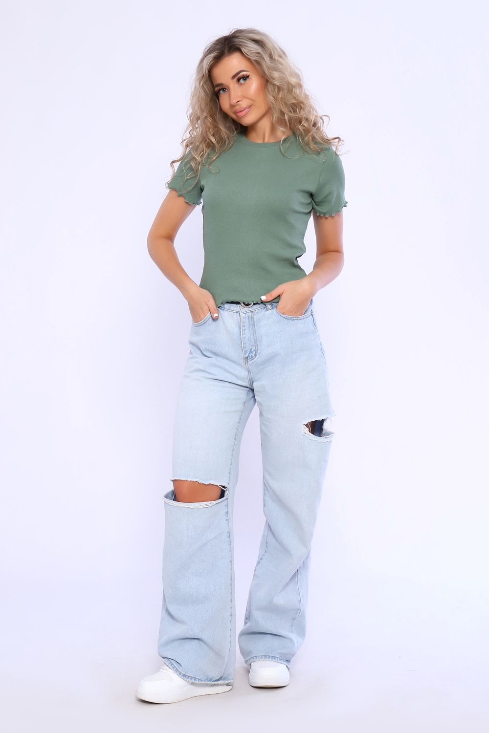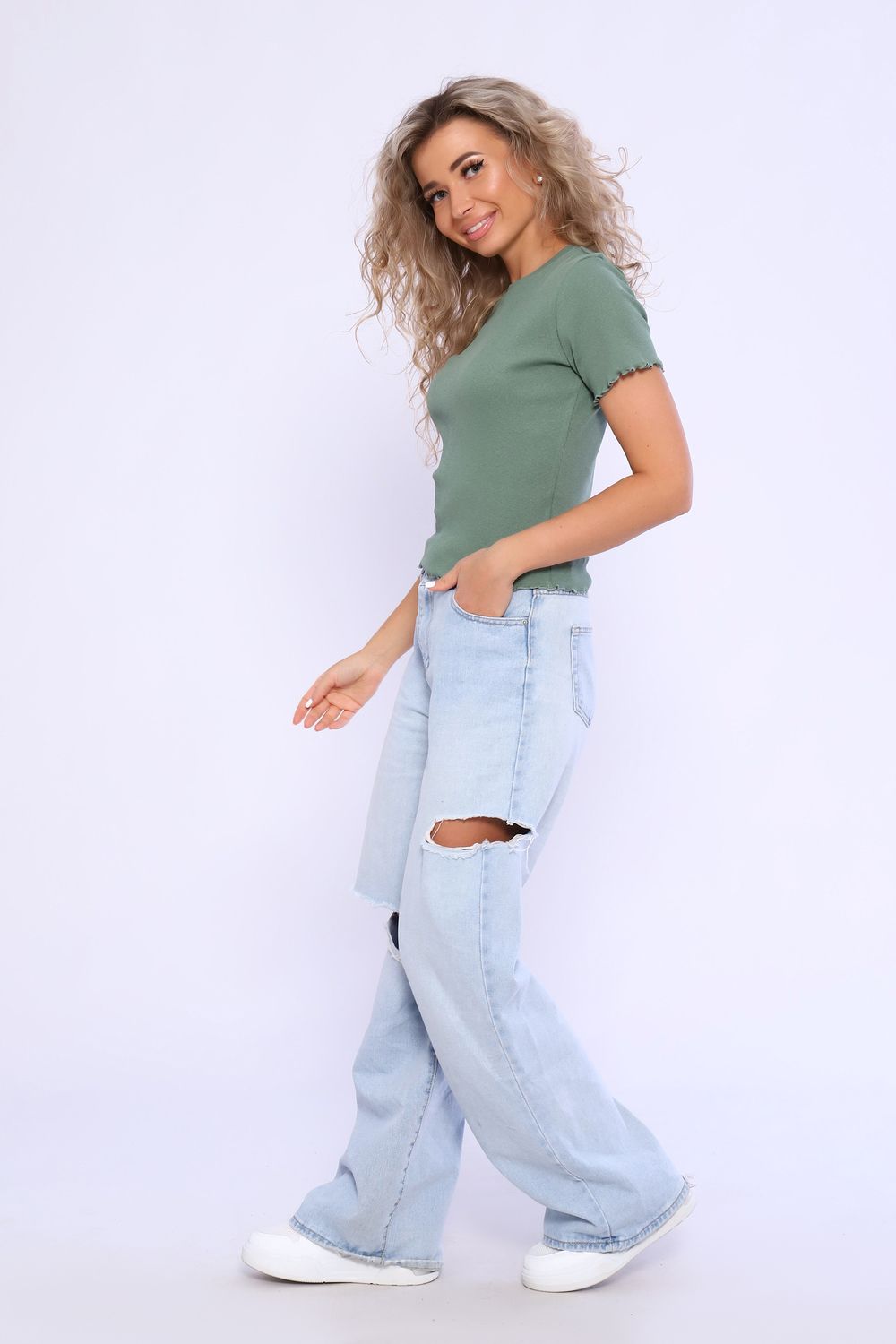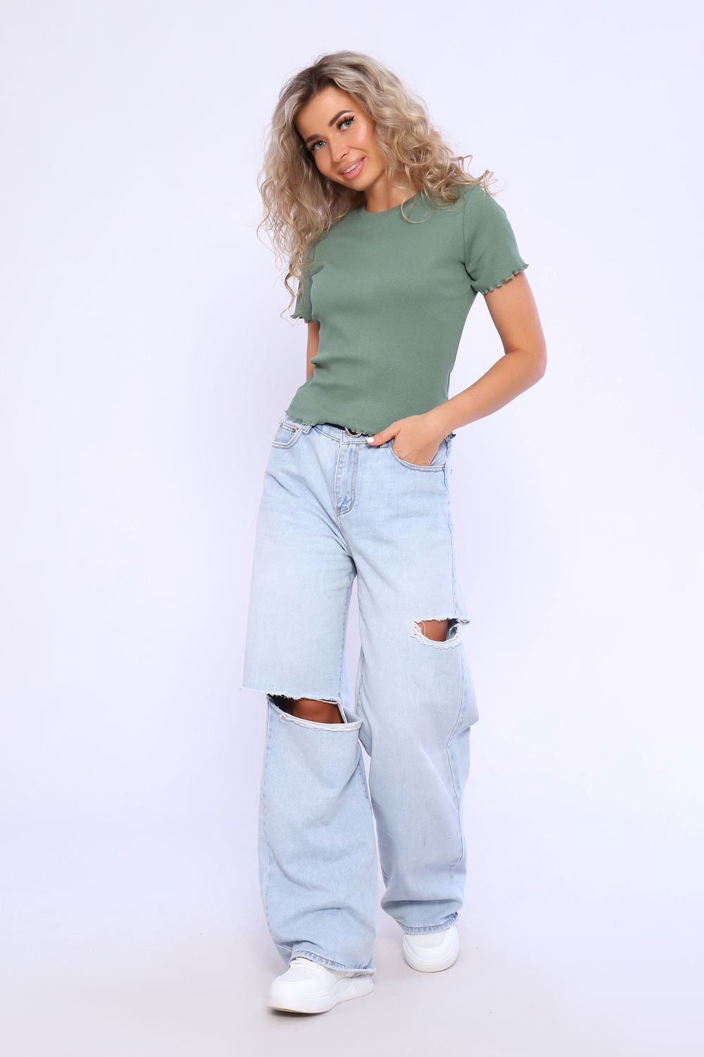 Футболка - топ укороченная молодежная, выполнена из мягкого приятного к телу кашкорсе. Рукав короткий обработан под краевку и так же низ изделия. На модели 46 размер.