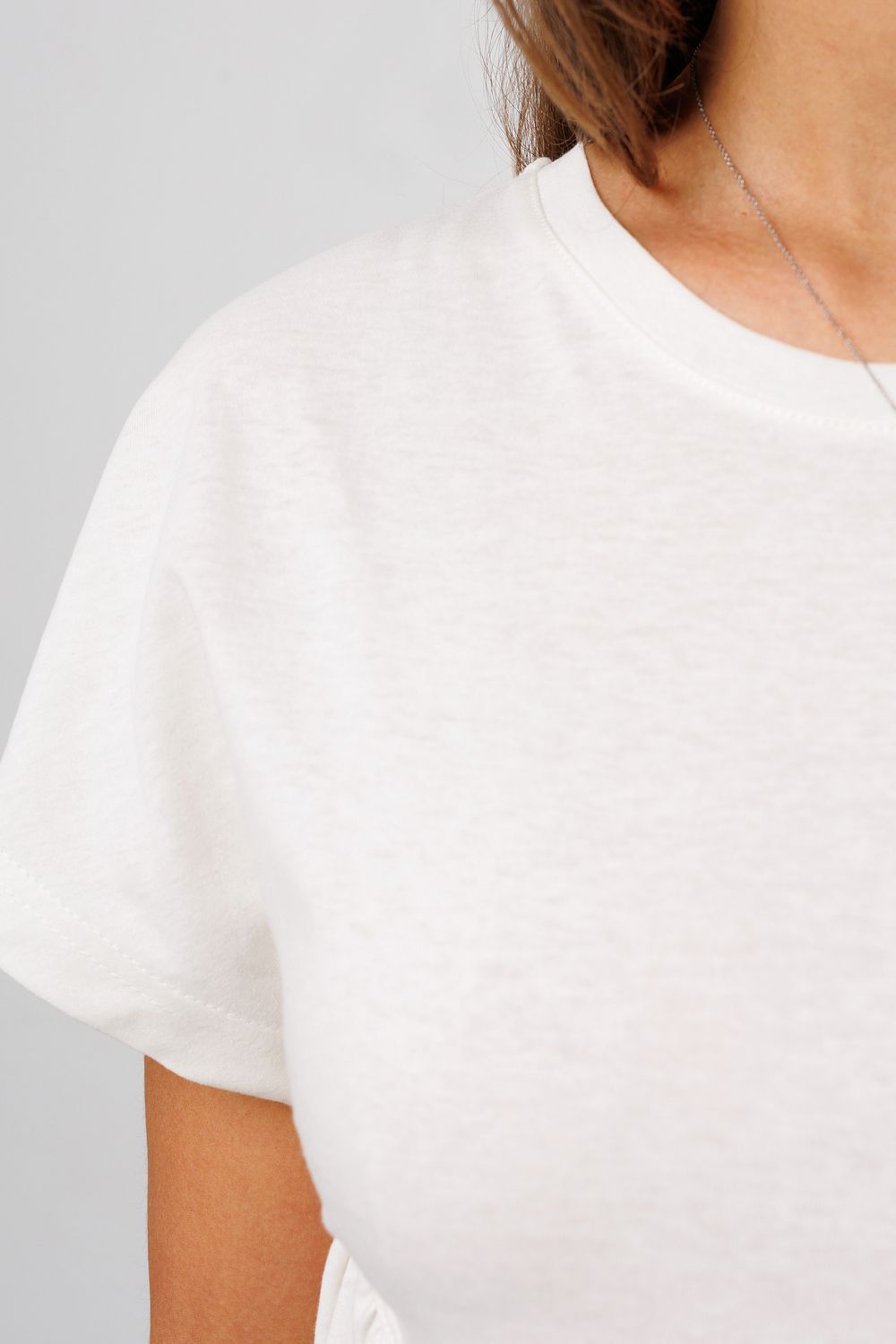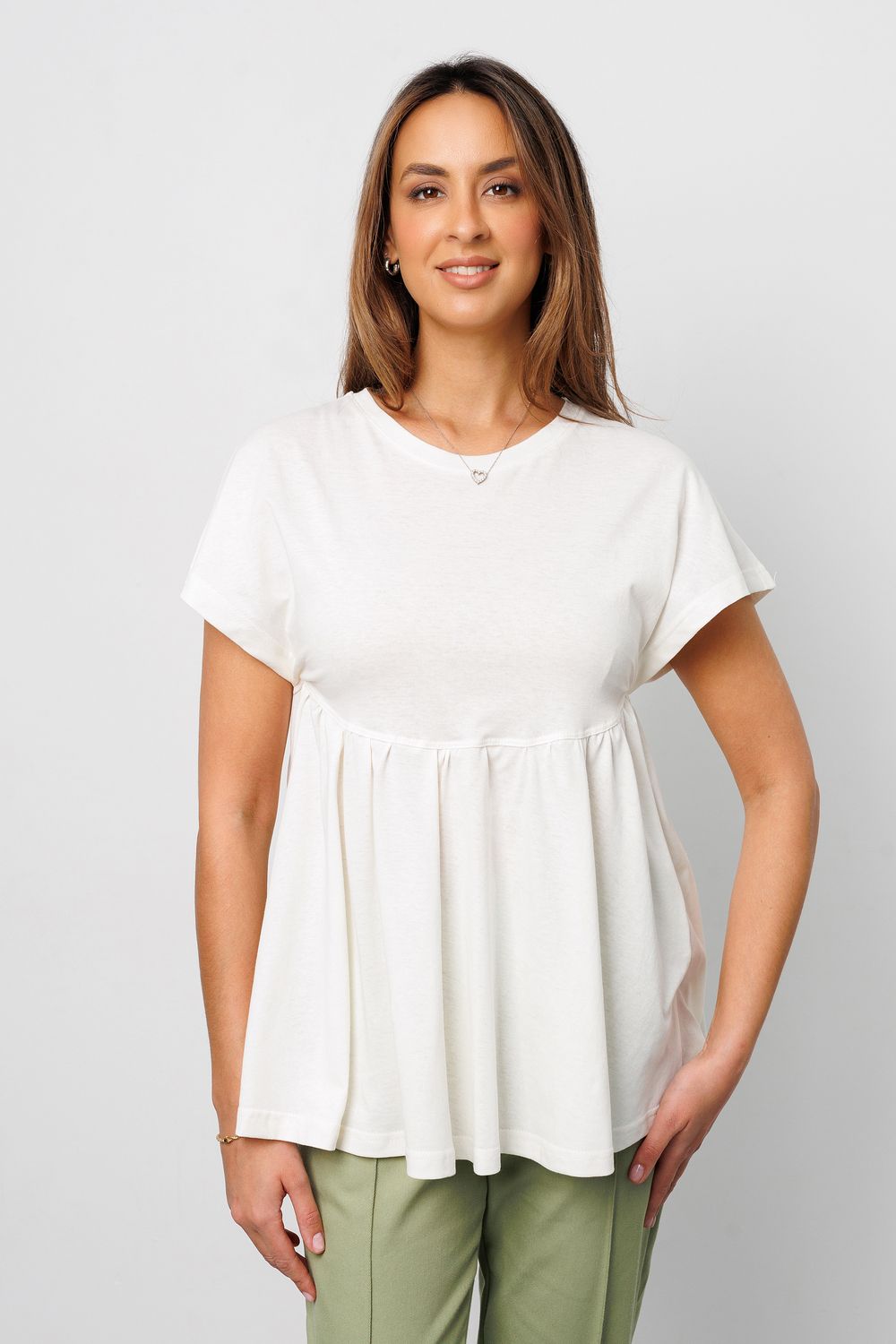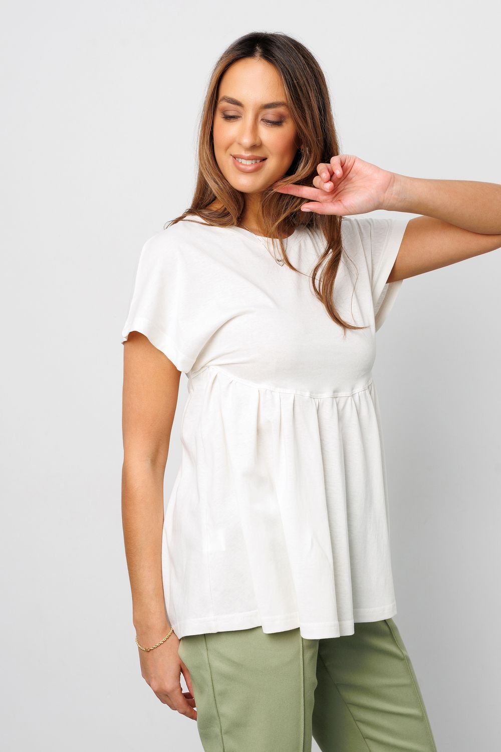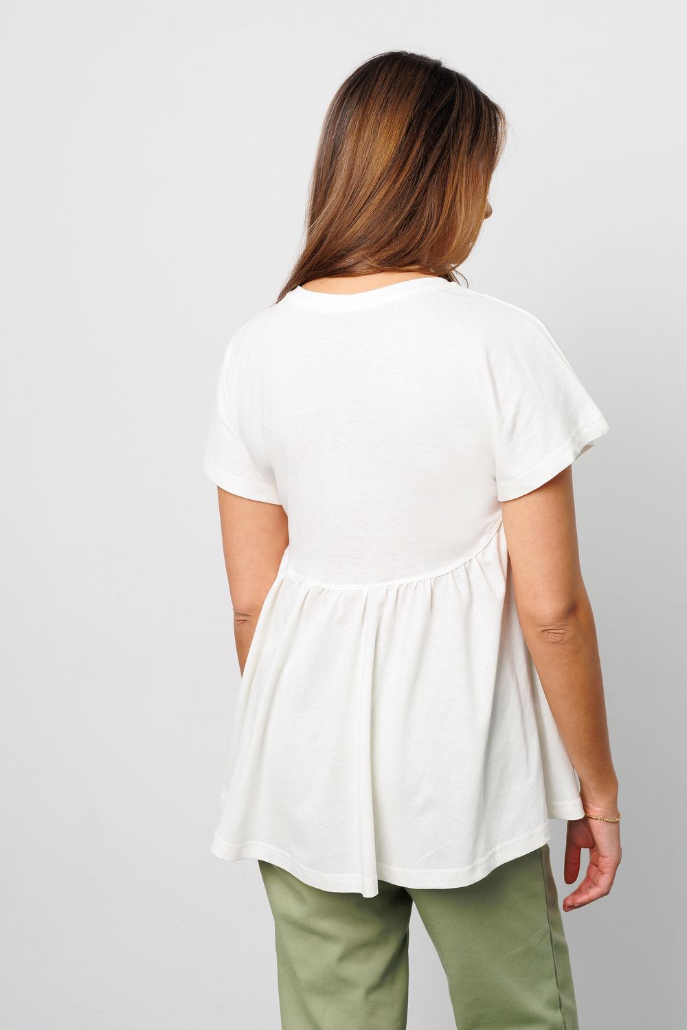 Однако, самой привлекательной особенностью этой хлопковой футболки является ее баска. Она создает завышенную талию, что делает фигуру еще более изящной и женственной, а свободный силуэт футболки позволяет скрыть некоторые недостатки. Баска подчеркивает талию и акцентирует внимание на вашей женственности, создавая притягательный силуэт.