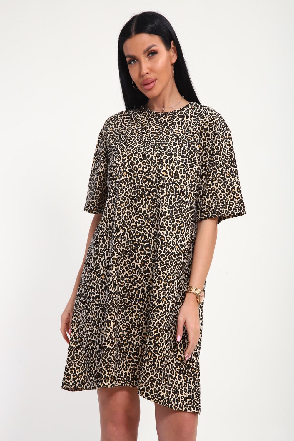 Футболка-туника леопардовая Арт. 001 - леопард коричневый