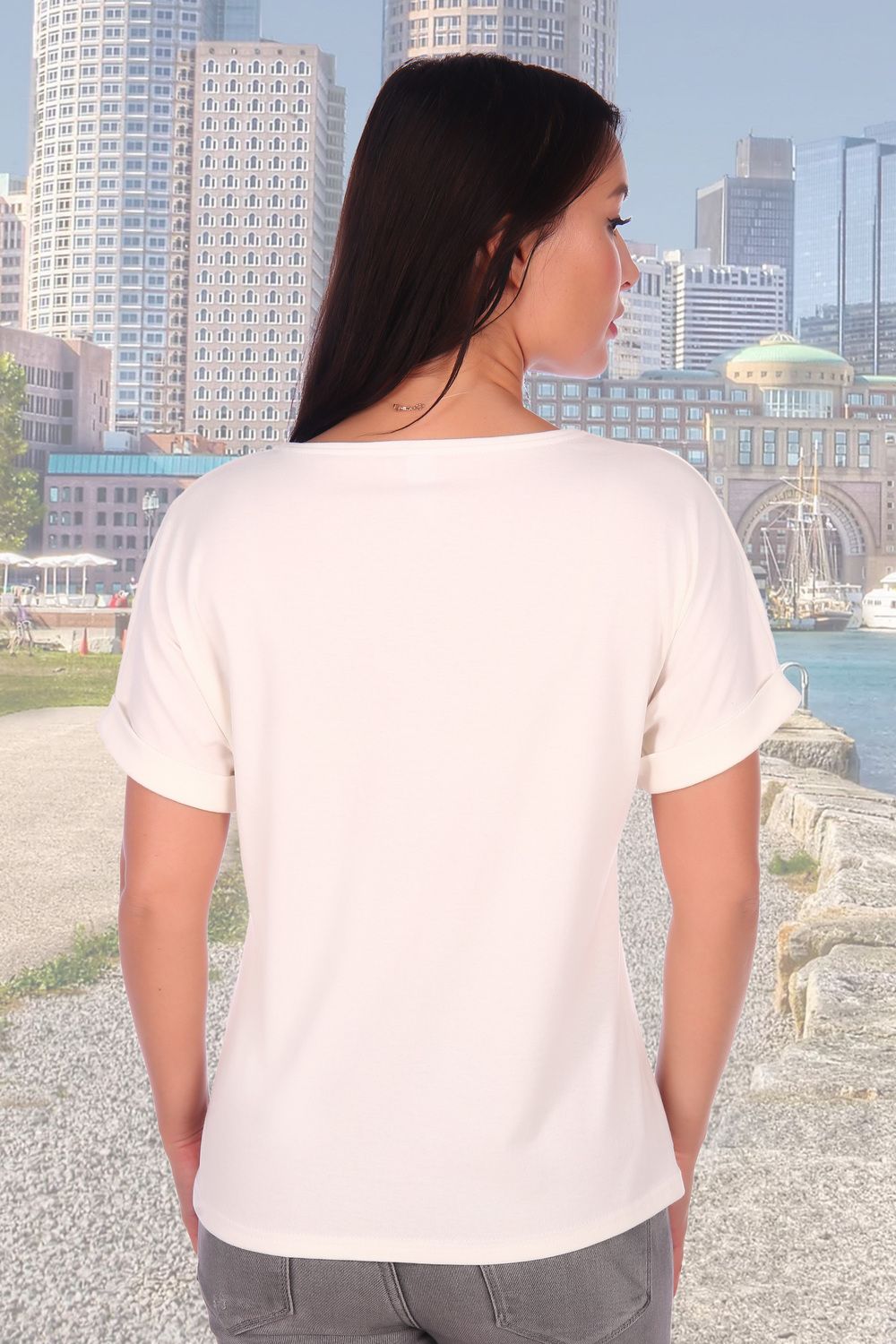 Нежная, воздушная розочка с лепестками подобно вуали придает этой футболке оригинальность и красоту. Цельнокроенный рукав с подворотом, горловина обработана двойным кантом, низ подгибка.