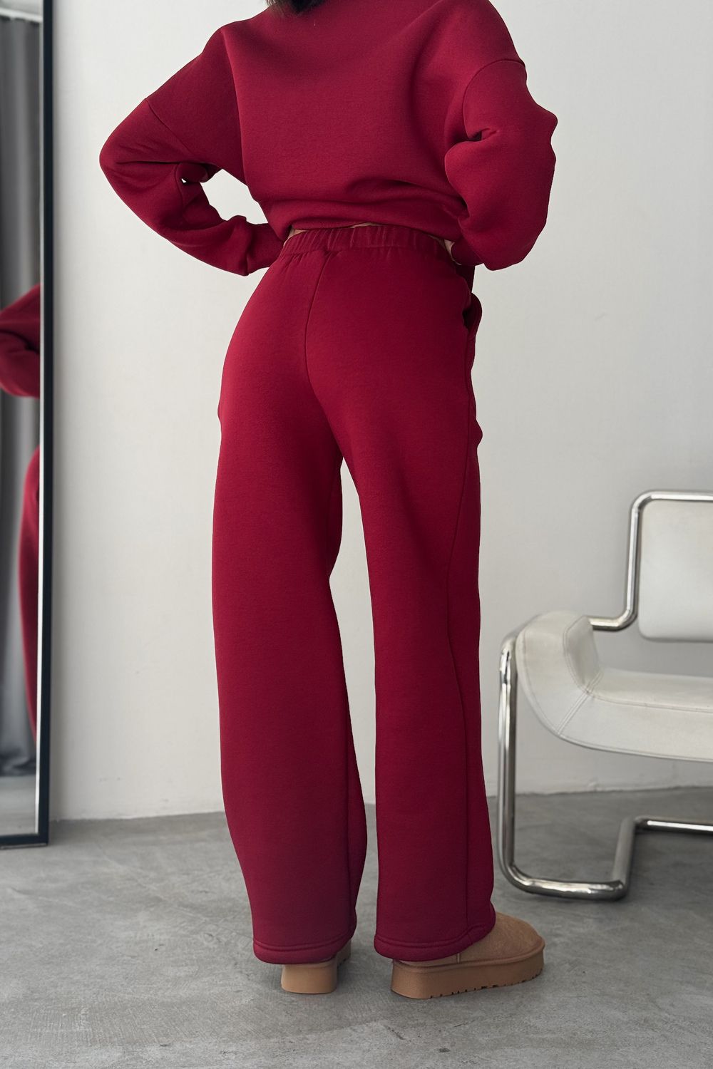 Теплый женский спортивный костюм — отличный выбор в качестве базовой одежды для зимы и холодного демисезонного периода! Комплект - двойка из коллекции включает свитшот с длинными рукавами и брюки с высокой посадкой. Модели сшиты из мягкого и приятного к телу футера. Это плотный материал, который приятно согревает и отлично дышит. В составе ткани хлопок и полиэстер. Вещи имеют прямой крой и свободно сидят по фигуре.