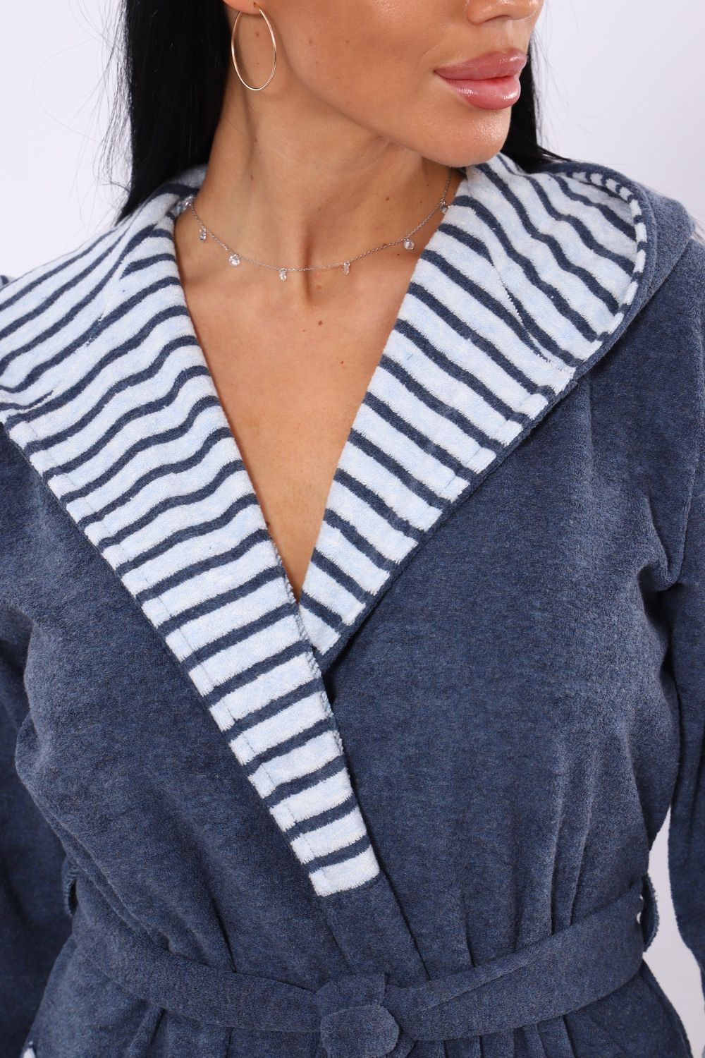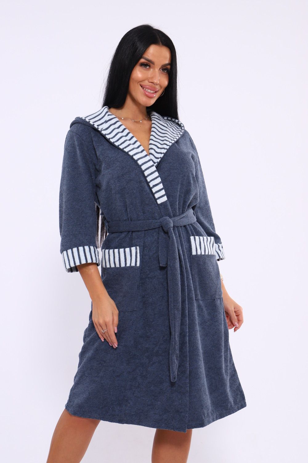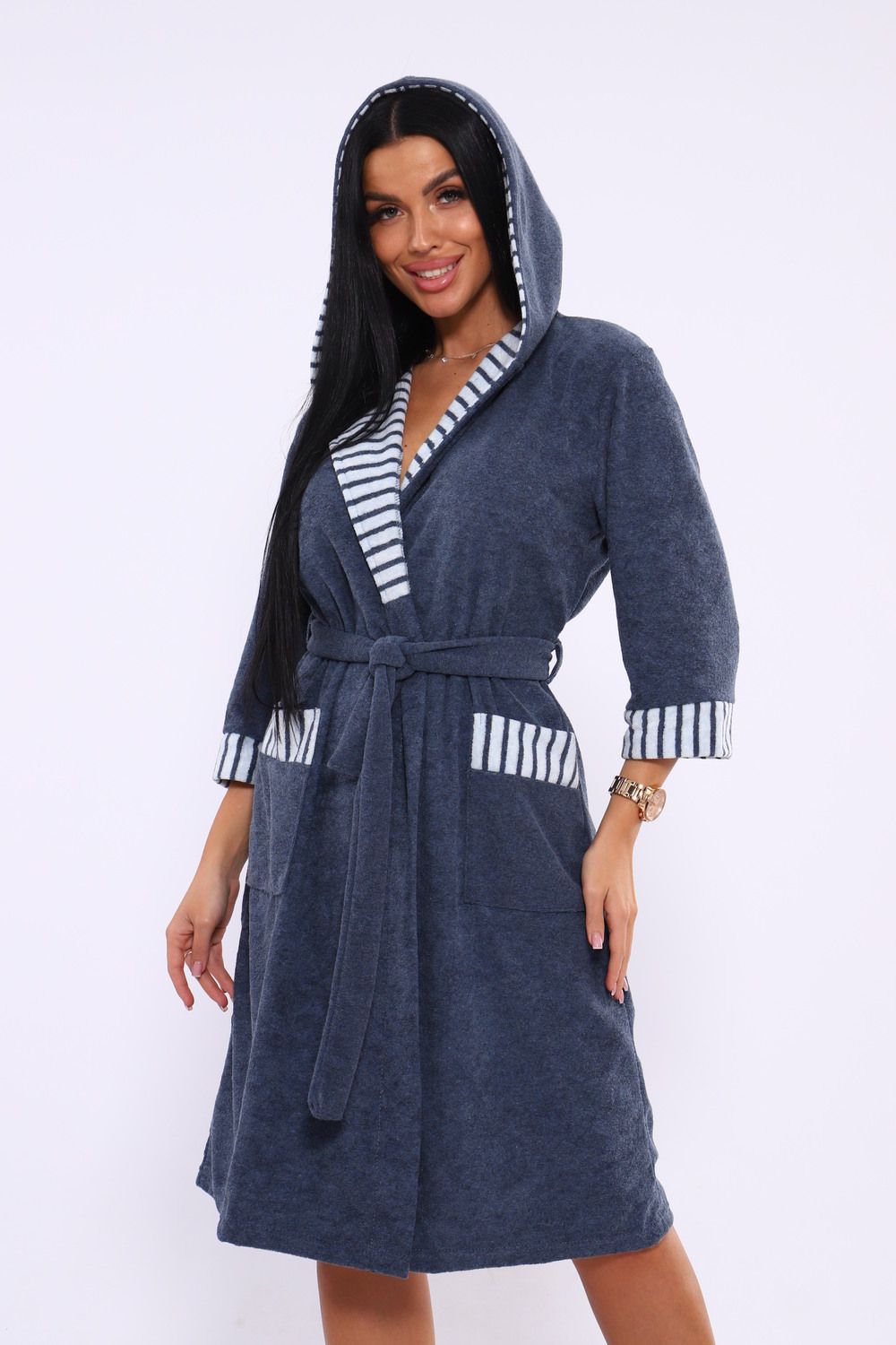 Халат женский махровый на запах с капюшоном. Карманы настрочные по бокам.
