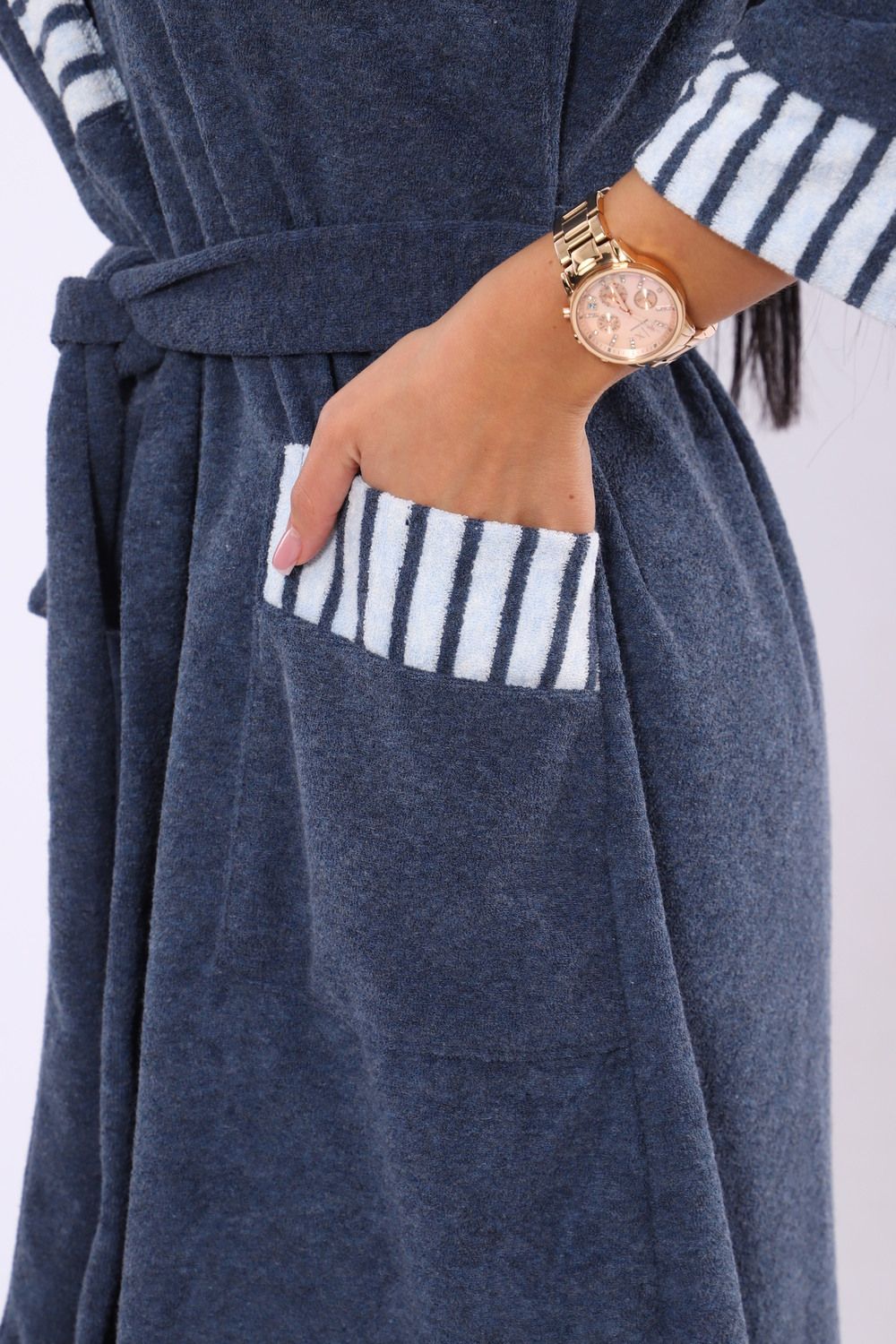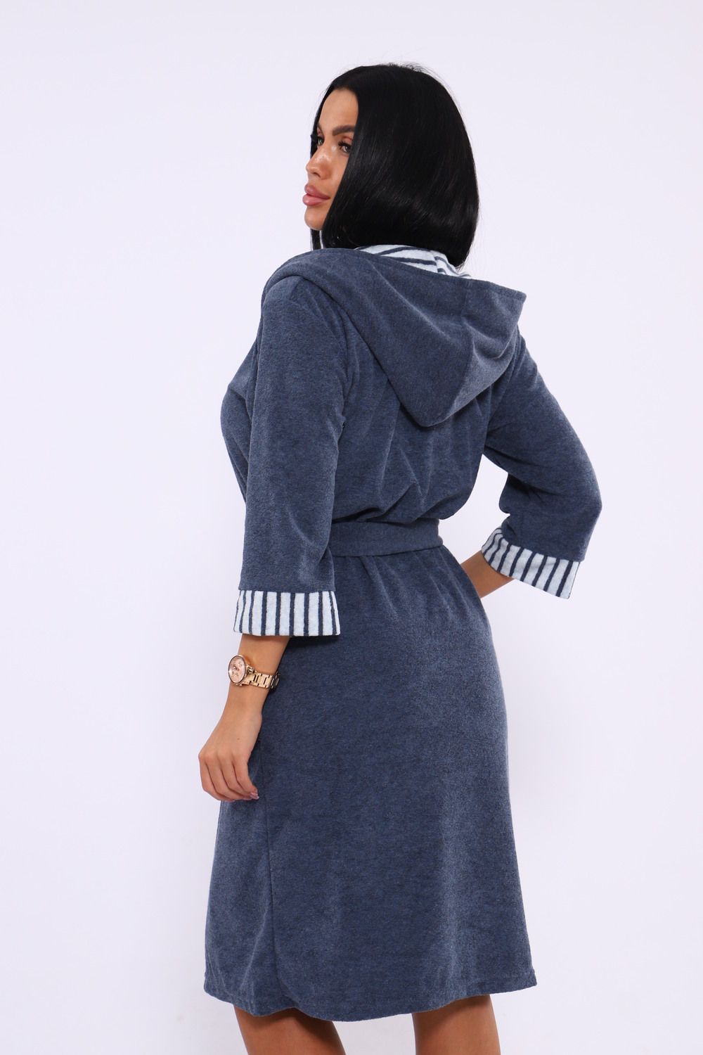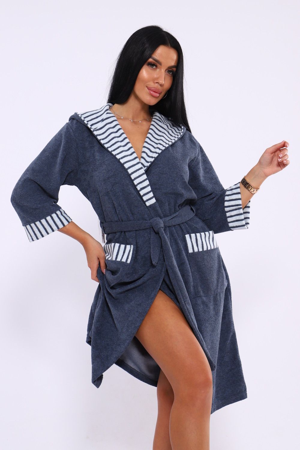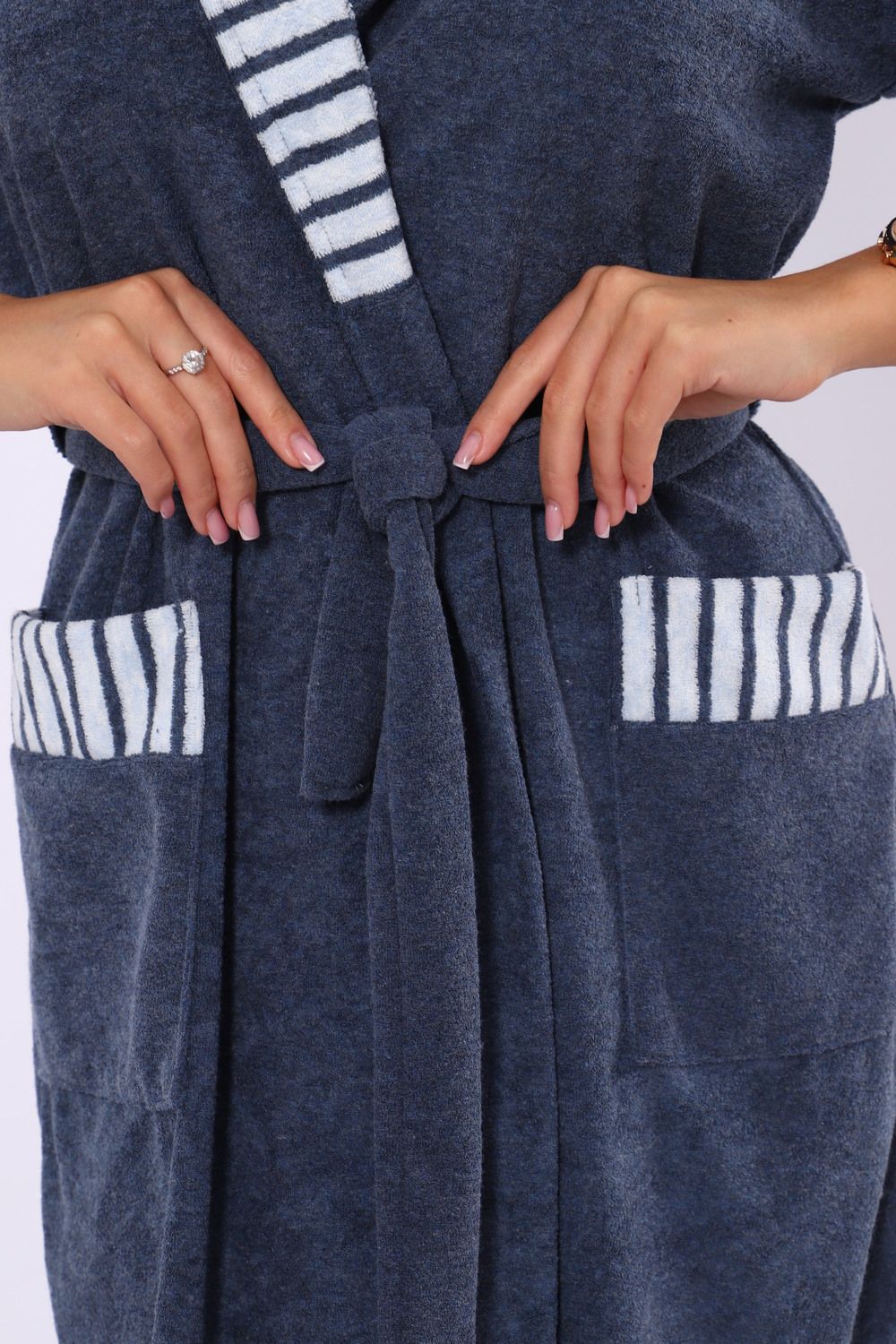 Халат женский махровый на запах с капюшоном. Карманы настрочные по бокам.