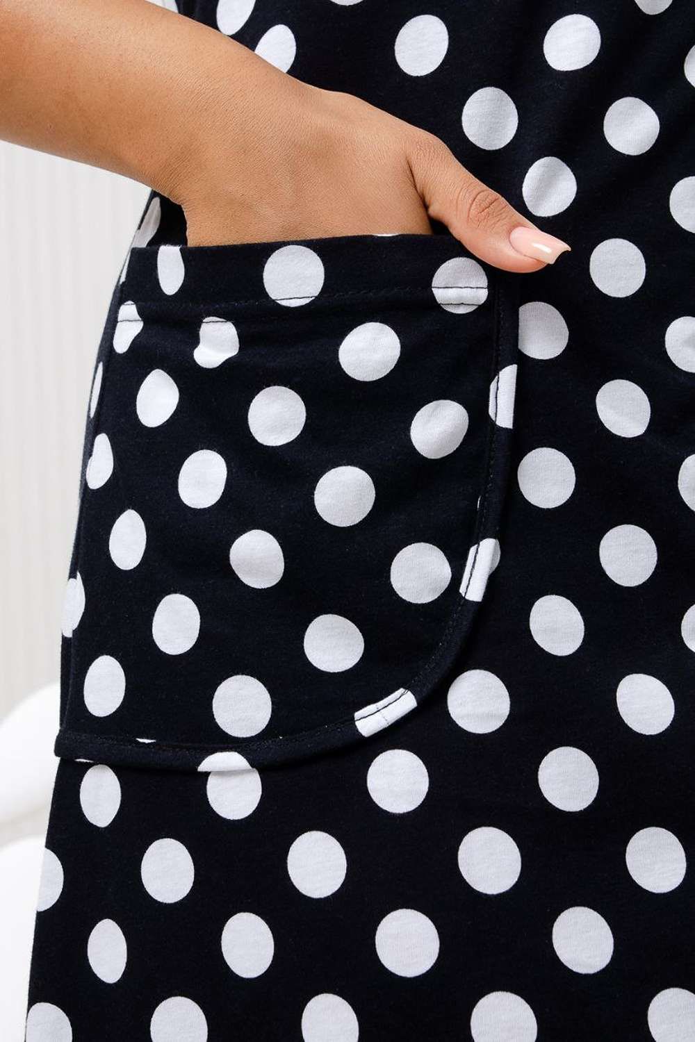 Халат женский на молнии оригинальной яркой расцветки Горох выполнен из кулирки 100% хлопок. Халат со спущенным рукавом, карман закругленной формы. Рукав подшит, горловина и карман окантованы узким кантом из основной ткани. Халат идеально подойдет для повседневной носки и отдыха.