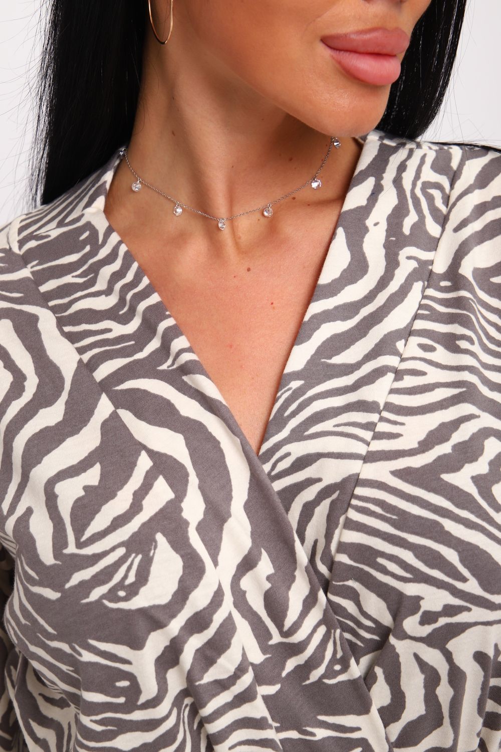 Халат женский запашной свободного кроя, с карманами и поясом. Длинный рукав на спущенном плече.