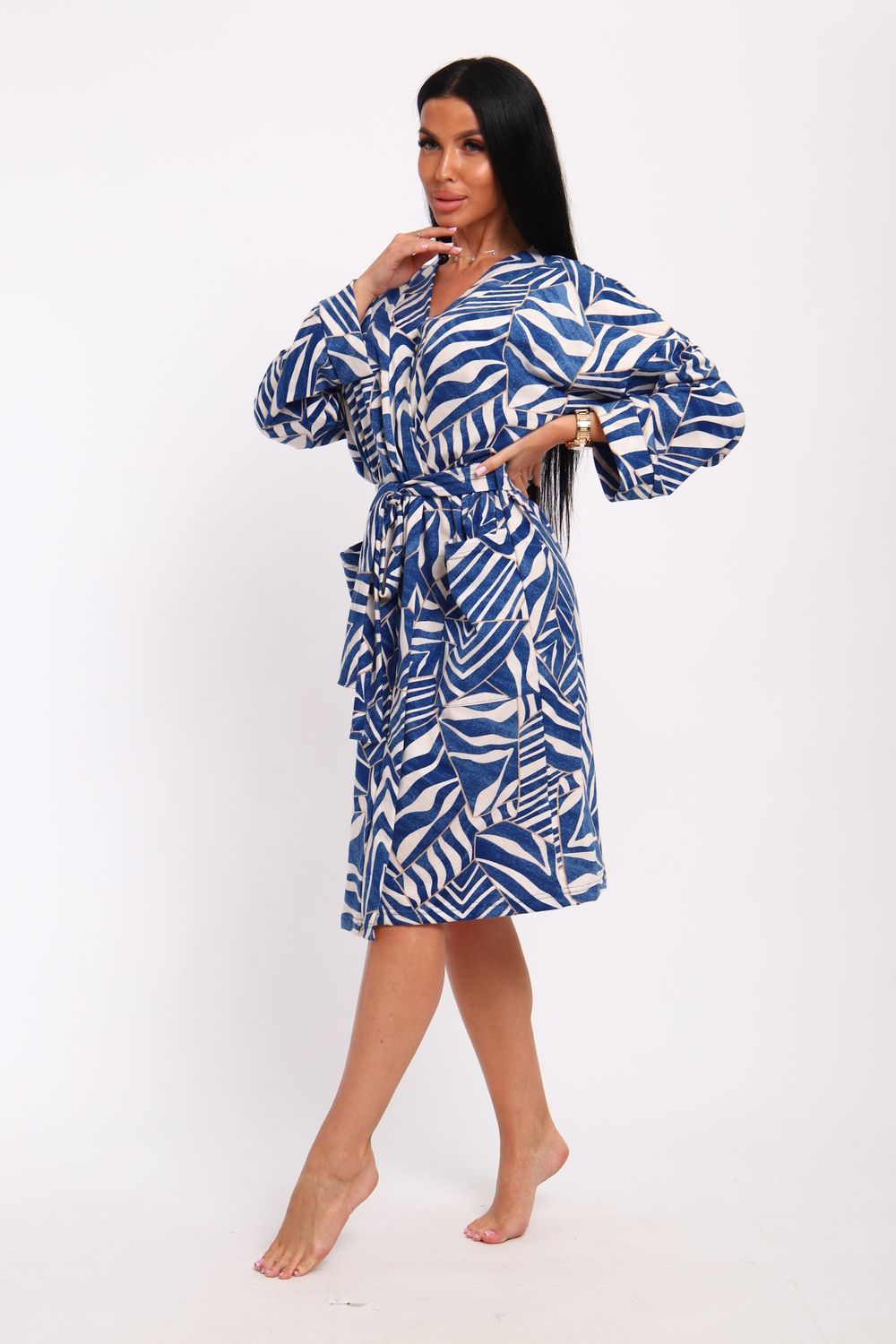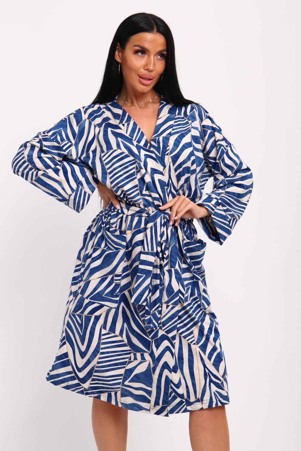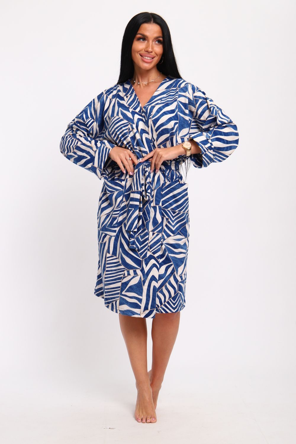 Халат женский запашной с карманами и поясом. Длинный рукав на спущенном плече.