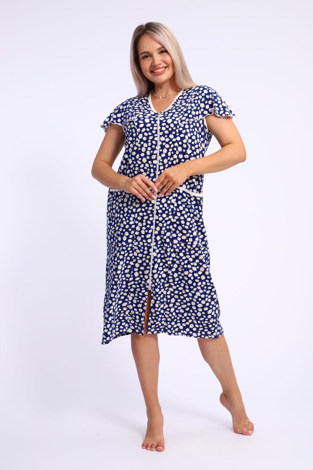 Халат женский полуприлегающего силуэта на молнии, с карманами Рукав крылышко.