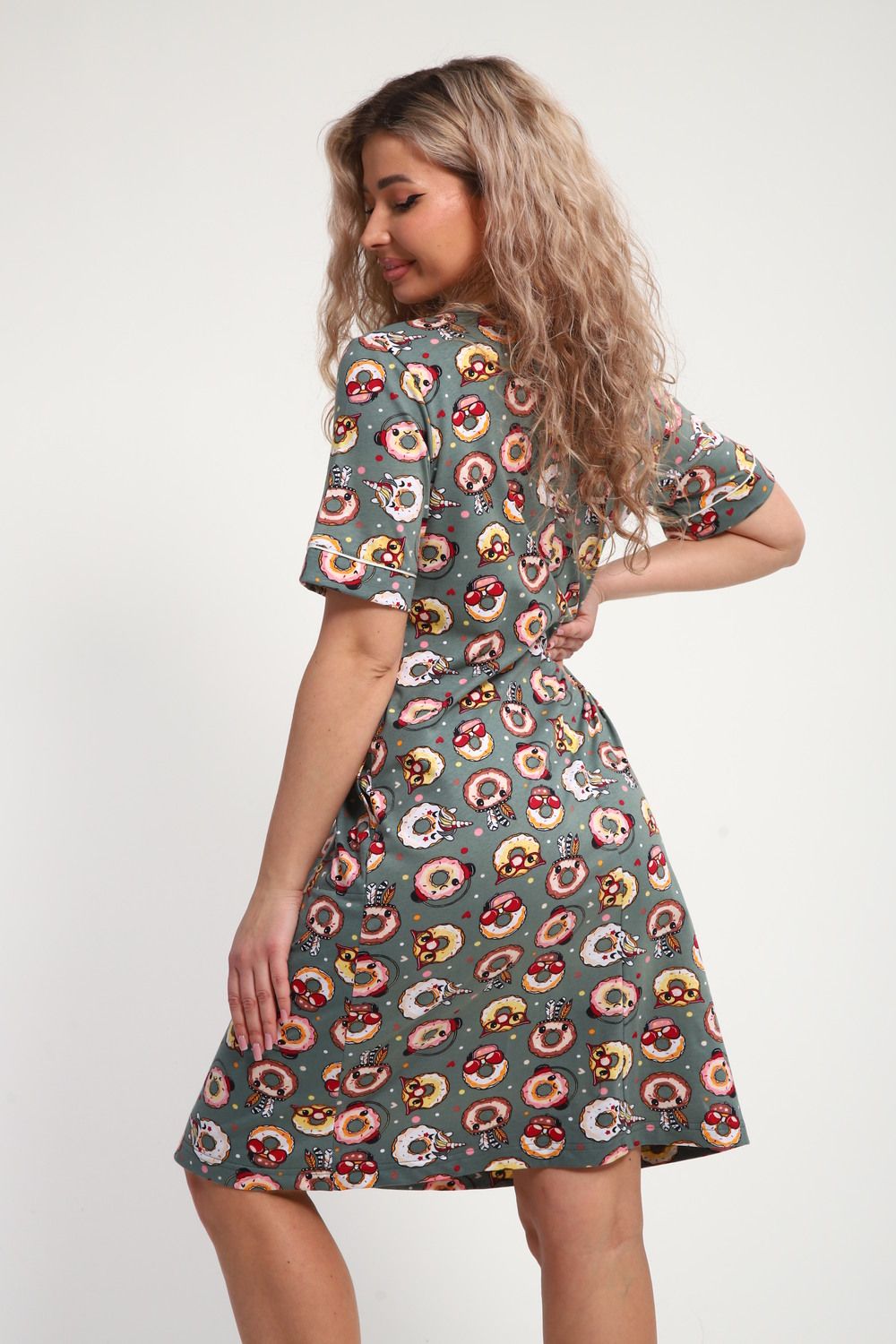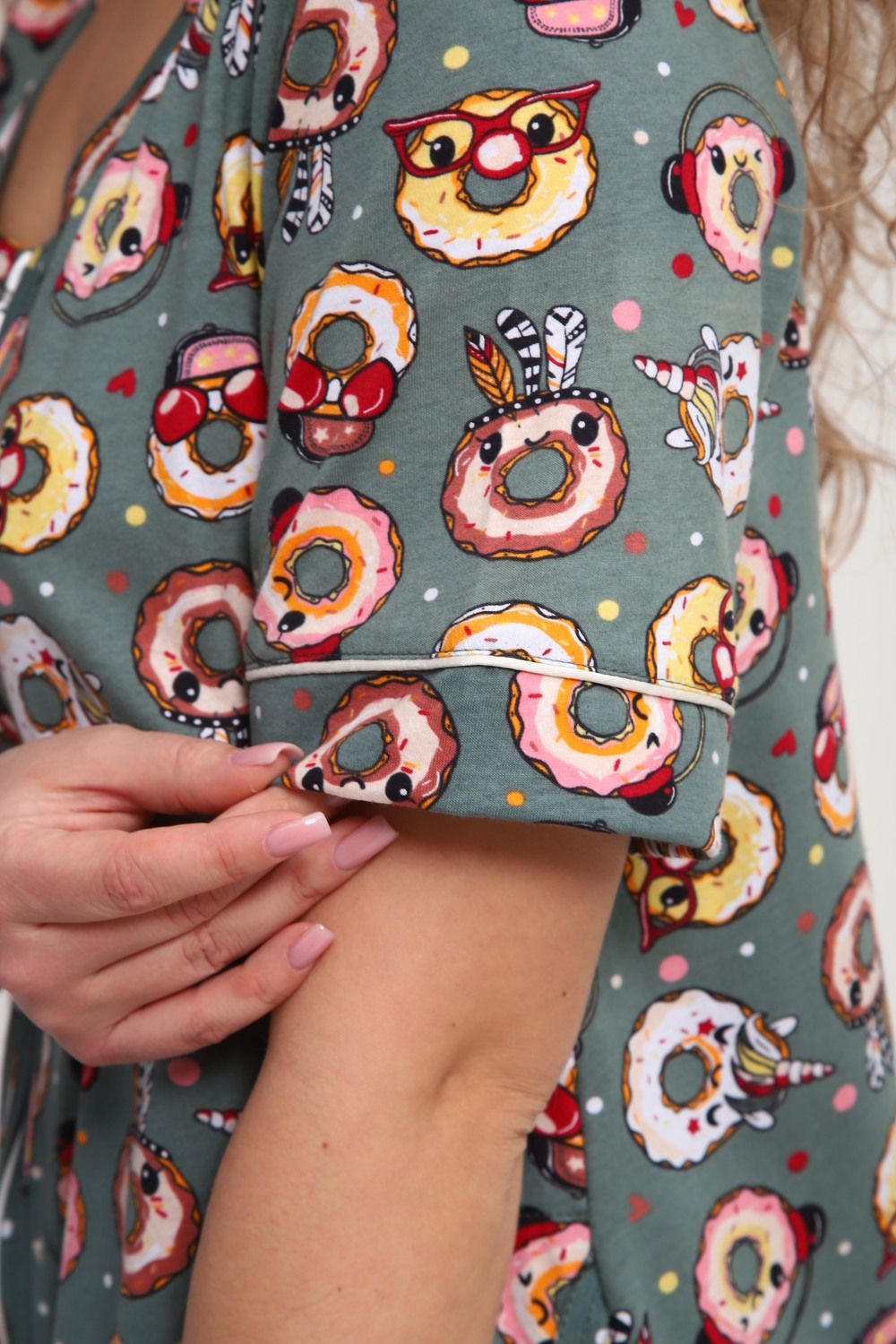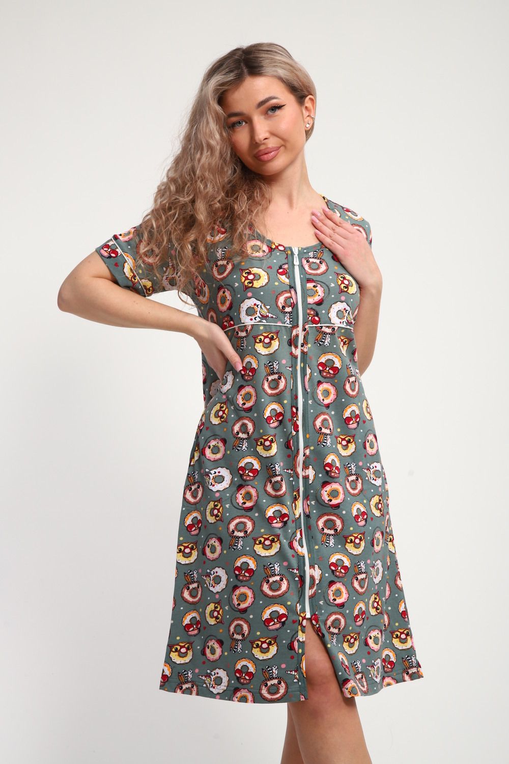 Халат женский ХЖ-01 - Пончики зеленый