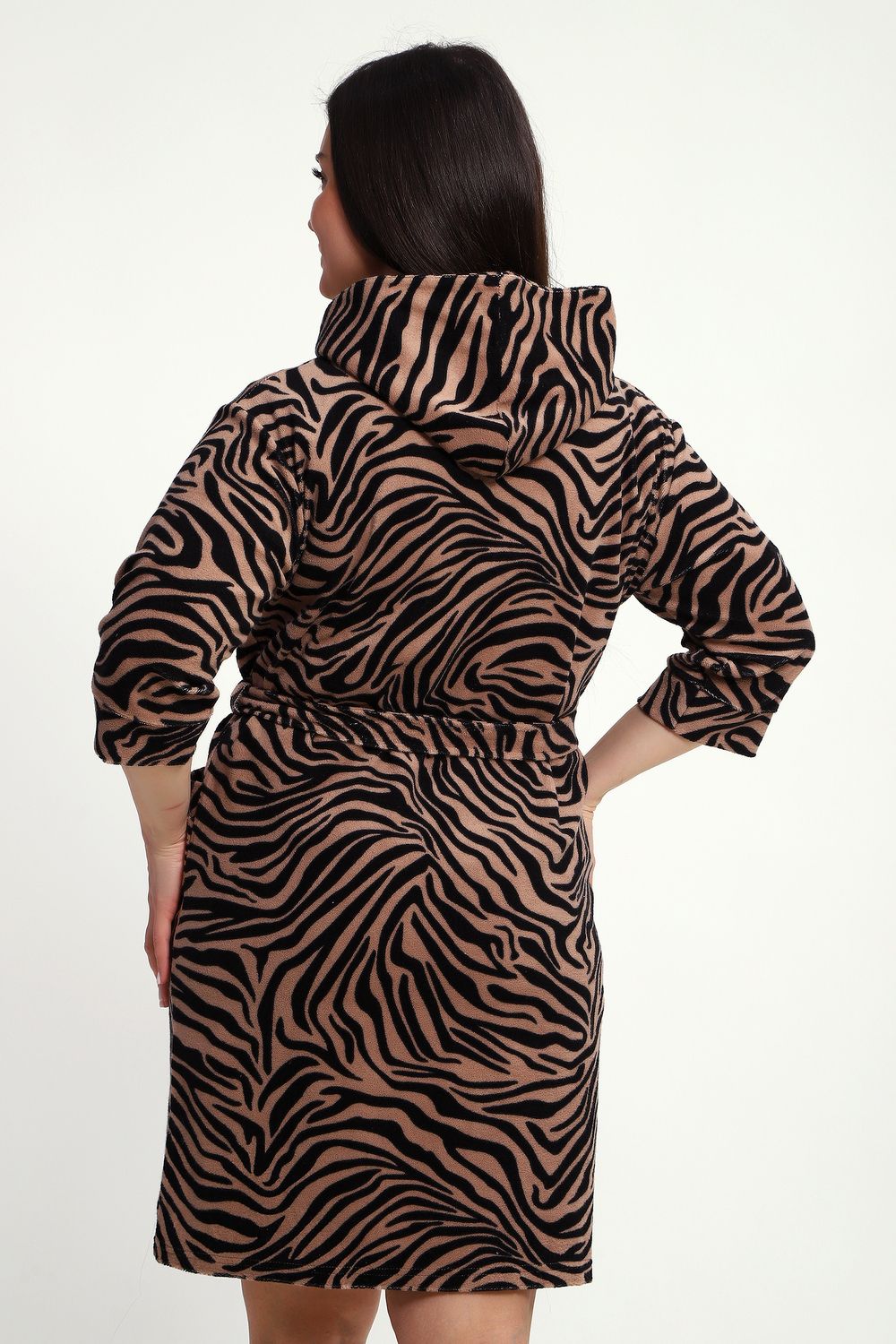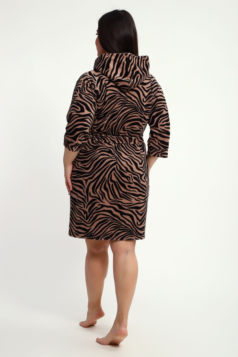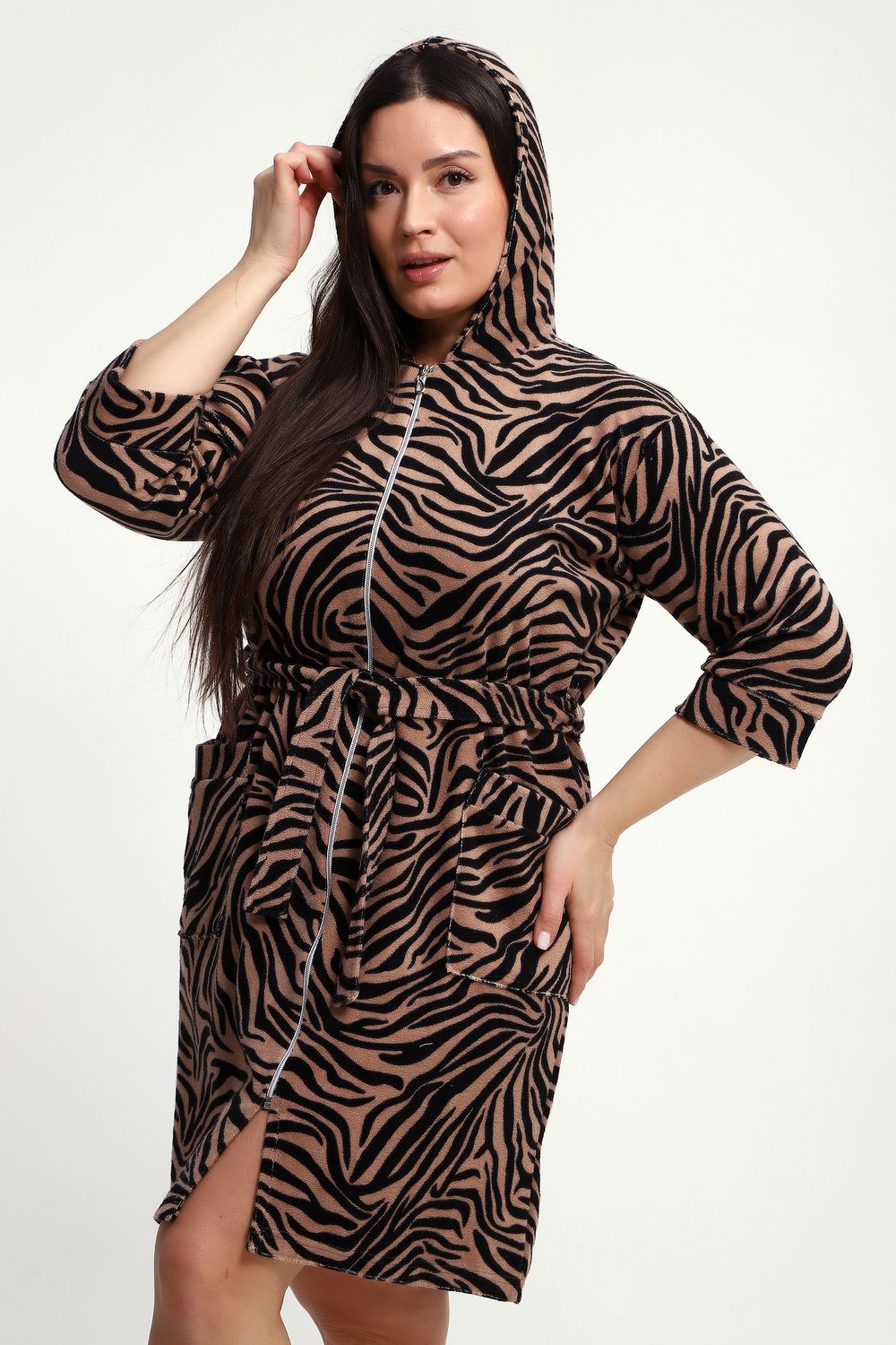 Халат женский махровый на молнии с капюшоном - Тигровая