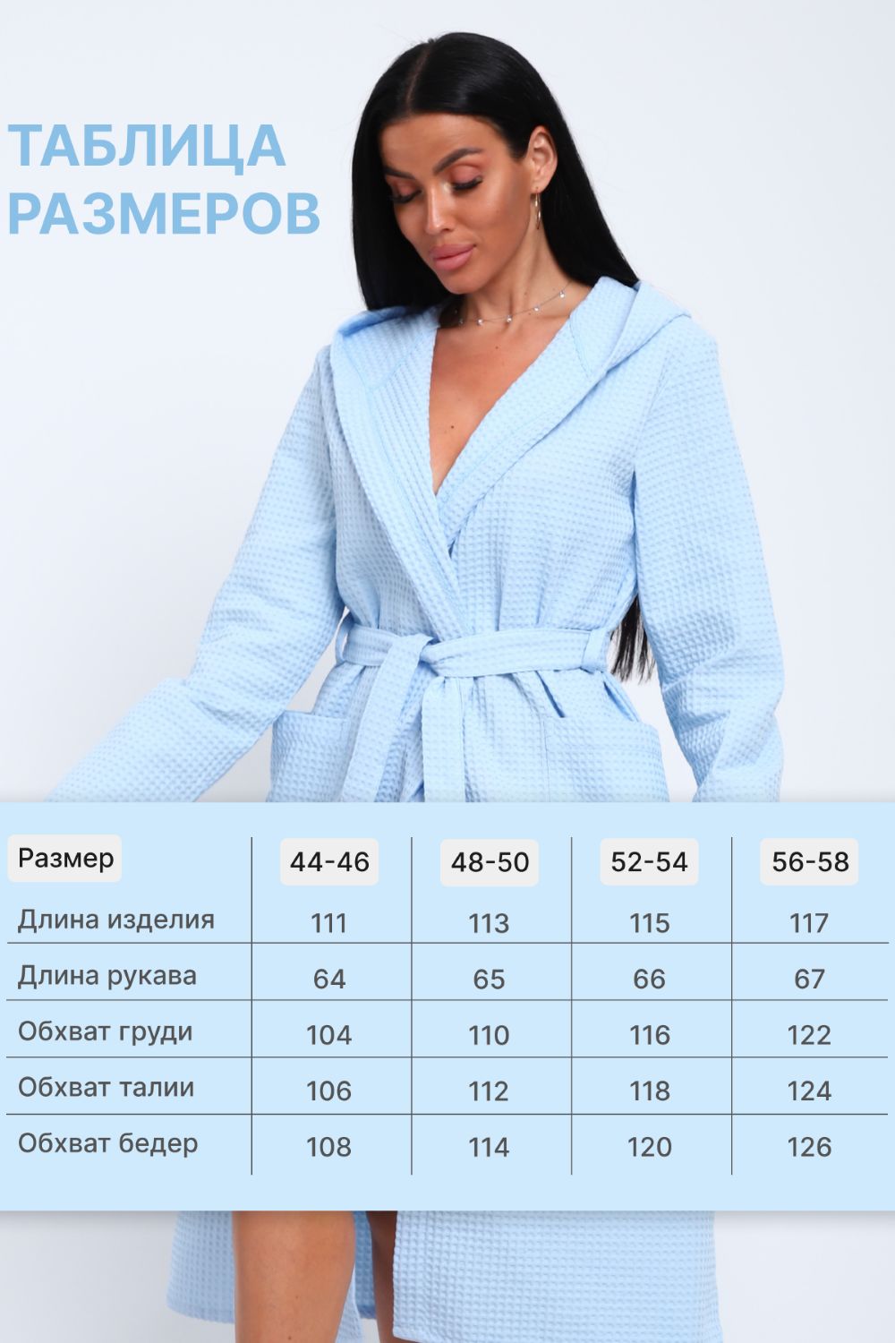 Вафельный халат с капюшоном. Рукав длинный. Карманы накладные. Размерный ряд от 44/46 до 56/58. Плотность вафельного полотна 242 гр/м. Состав - 100% хлопок. При первой стирке изделие дает усадку, это нужно учесть при выборе размера! Рекомендация по уходу и эксплуатации за изделием - бережная ручная стирка при температуре не более 30 С, без отжима. Для безупречного разглаживания складок и заломов изделие должно быть влажным.