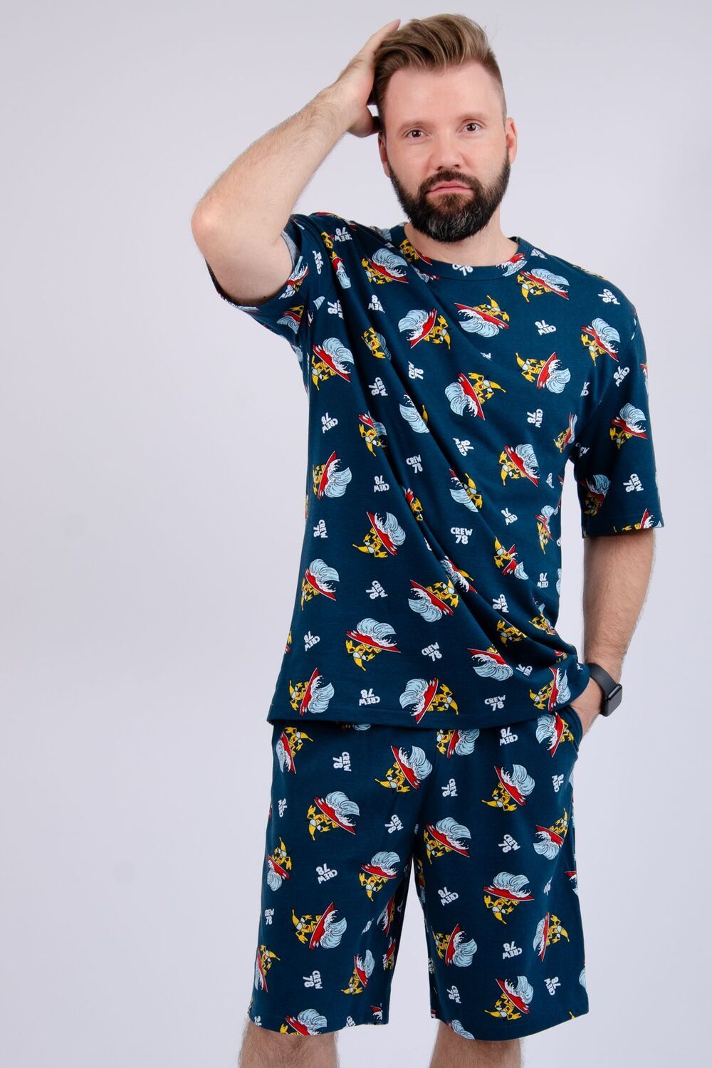 Данная модель представляет собой стильный и современный дизайн, который подчеркивает ваш индивидуальный характер. Костюм подходит как для утренних посиделок с чашечкой кофе, так и для сна и для прогулок. Возможно сочетание с другими комплектами, что позволяет создать парные варианты для вас и вашей второй половинки.