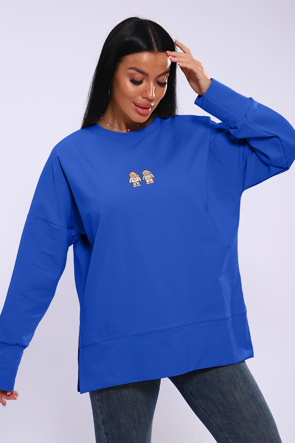 Худи женское с разрезами по бокам 003 - голубой