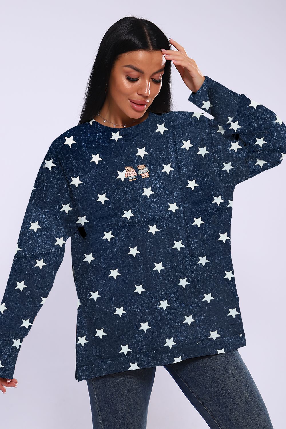 Худи женское с разрезами по бокам 003 - темно-синий+белый