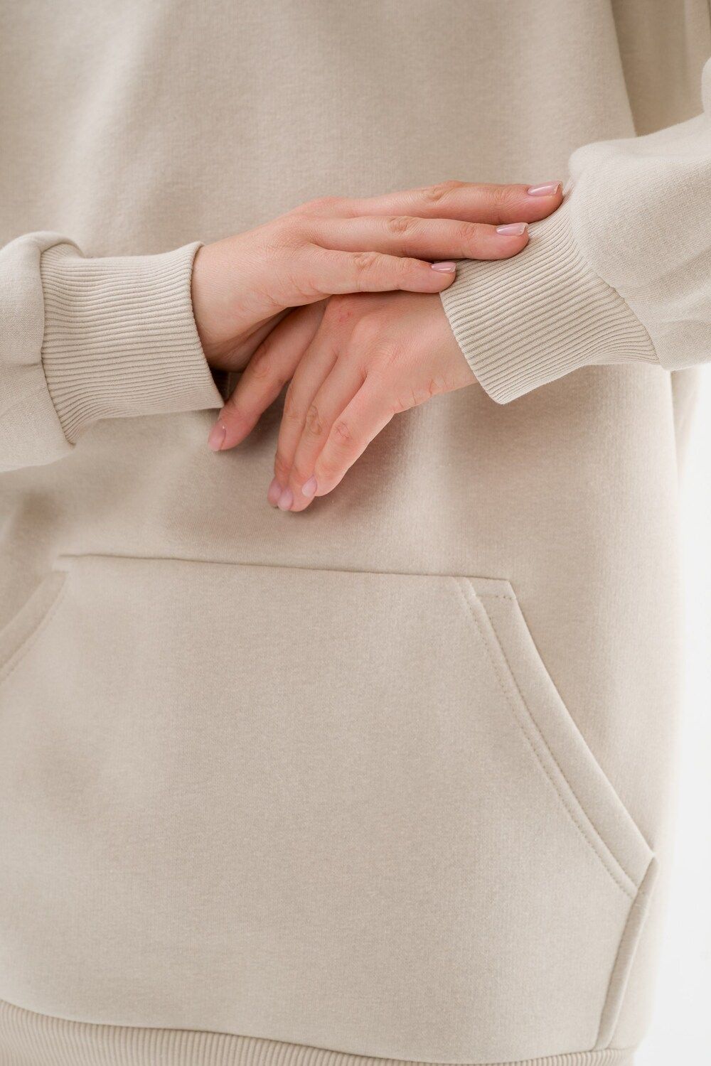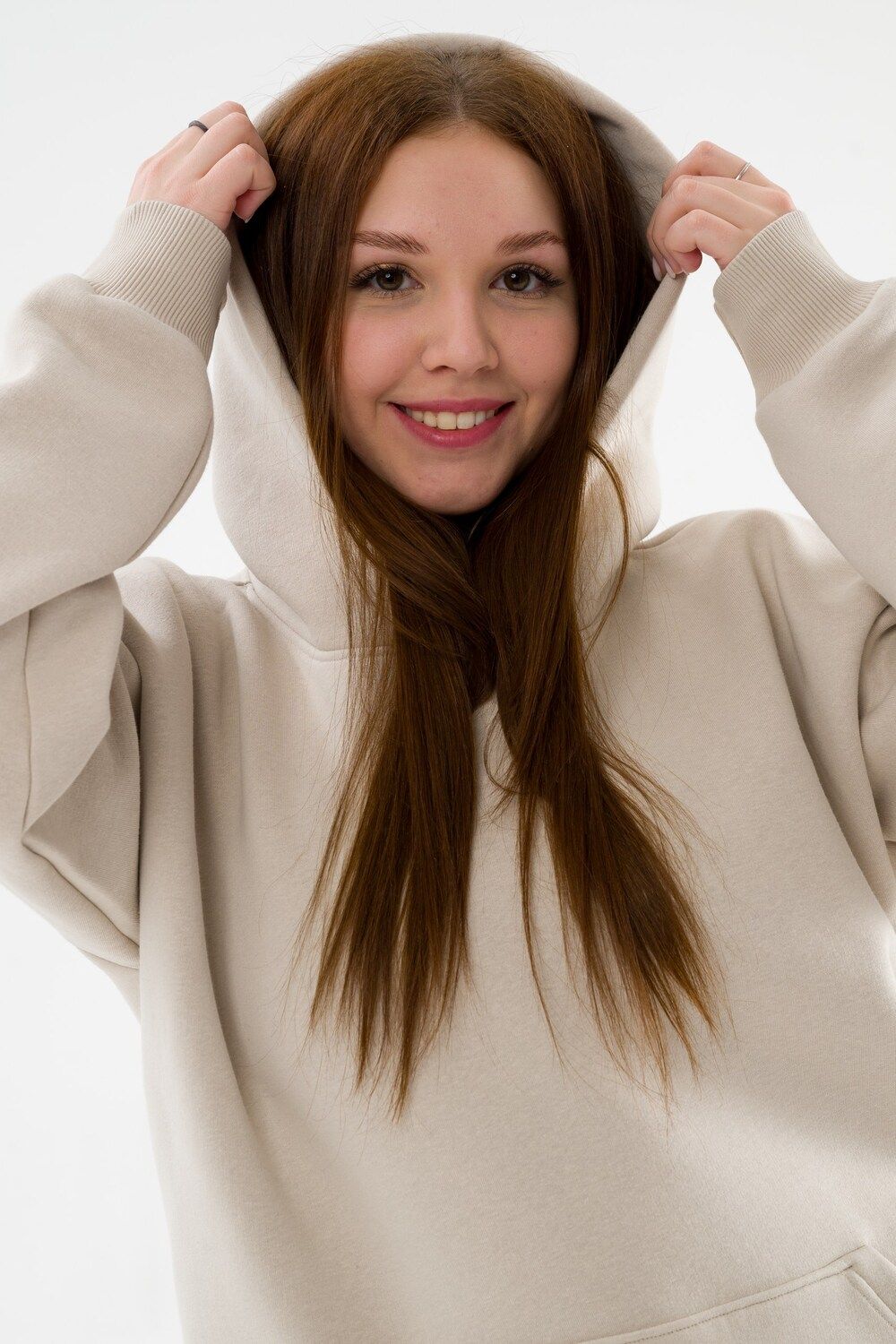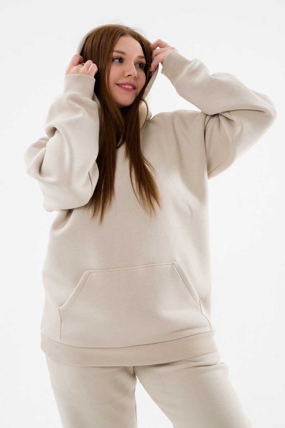 Худи оверсайз 89602 с начесом теплое костюмное - бежевый