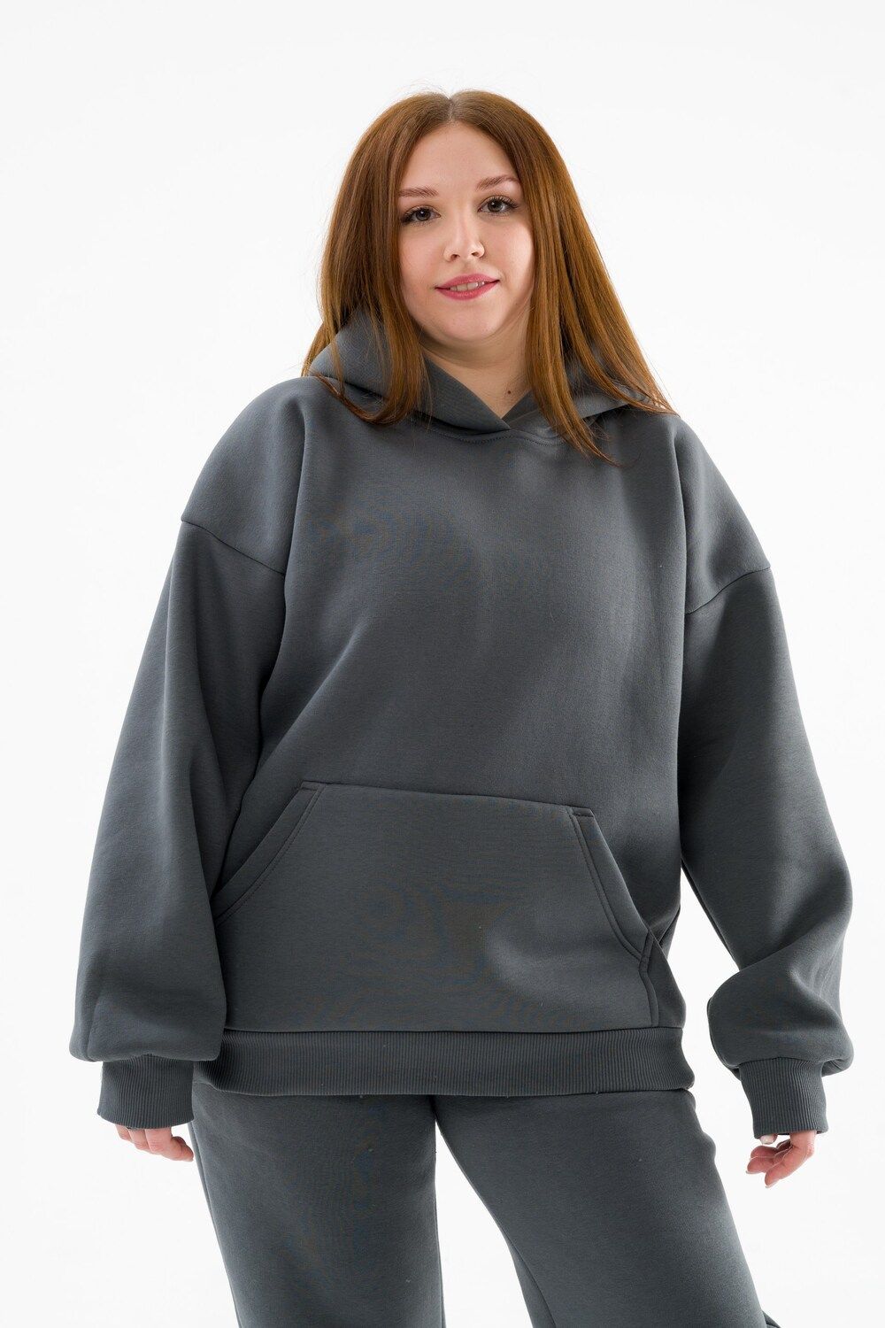 Худи оверсайз 89602 с начесом теплое костюмное - графитовый