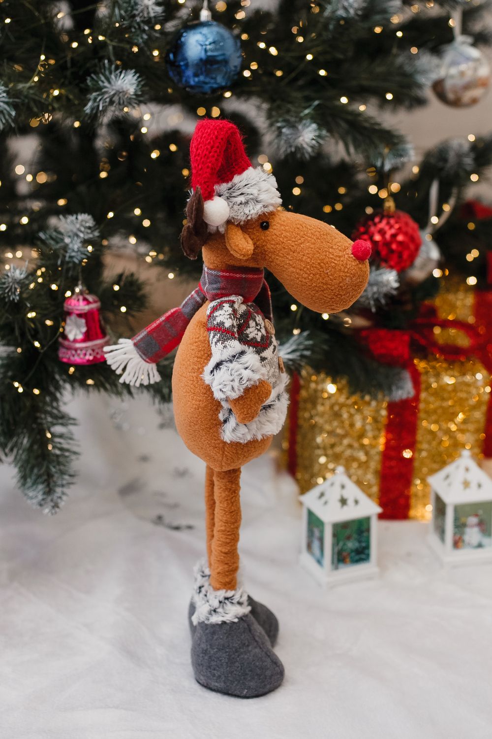 Новогодняя мягкая игрушка под елку с выдвижными ножками — эффектная и практичная праздничная игрушка, которая в сложенном виде занимает мало места, а при раздвинутых ножках превращается в высокий декоративный элемент. Выполнен из мягкого текстиля с аккуратной отделкой и плотным наполнителем, он легко держит форму, при этом остаётся лёгким и удобным для транспортировки и размещения под ёлкой или в праздничной фотозоне. Выдвижные ножки дают два варианта использования — компактное хранение вне сезона и выразительная высота для декора, что делает игрушку отличным подарком, который приятно будет дарить и получать. Универсальный дизайн впишется в классические и современные новогодние интерьеры, игрушка подойдёт для украшения гостиной, детской комнаты, прихожей или коммерческих витрин. Уход простой — достаточно протирать мягкой сухой или слегка влажной тканью и хранить в сухом прохладном месте вдали от прямых источников тепла. При размещении рядом с детьми рекомендуем следить за мелкими декоративными деталями и устанавливать снеговика на устойчивой поверхности. Идеальная идея для тех, кто ищет красивый, компактный в хранении и в то же время эффектный подарок под ёлку, который создаёт праздничное настроение и добавляет уюта в дом.