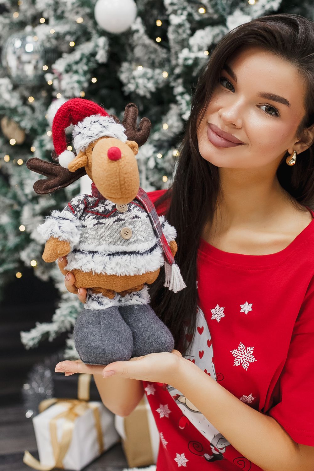 Игрушка новогодняя с выдвижными ногами Олень серые ботики серый - серый