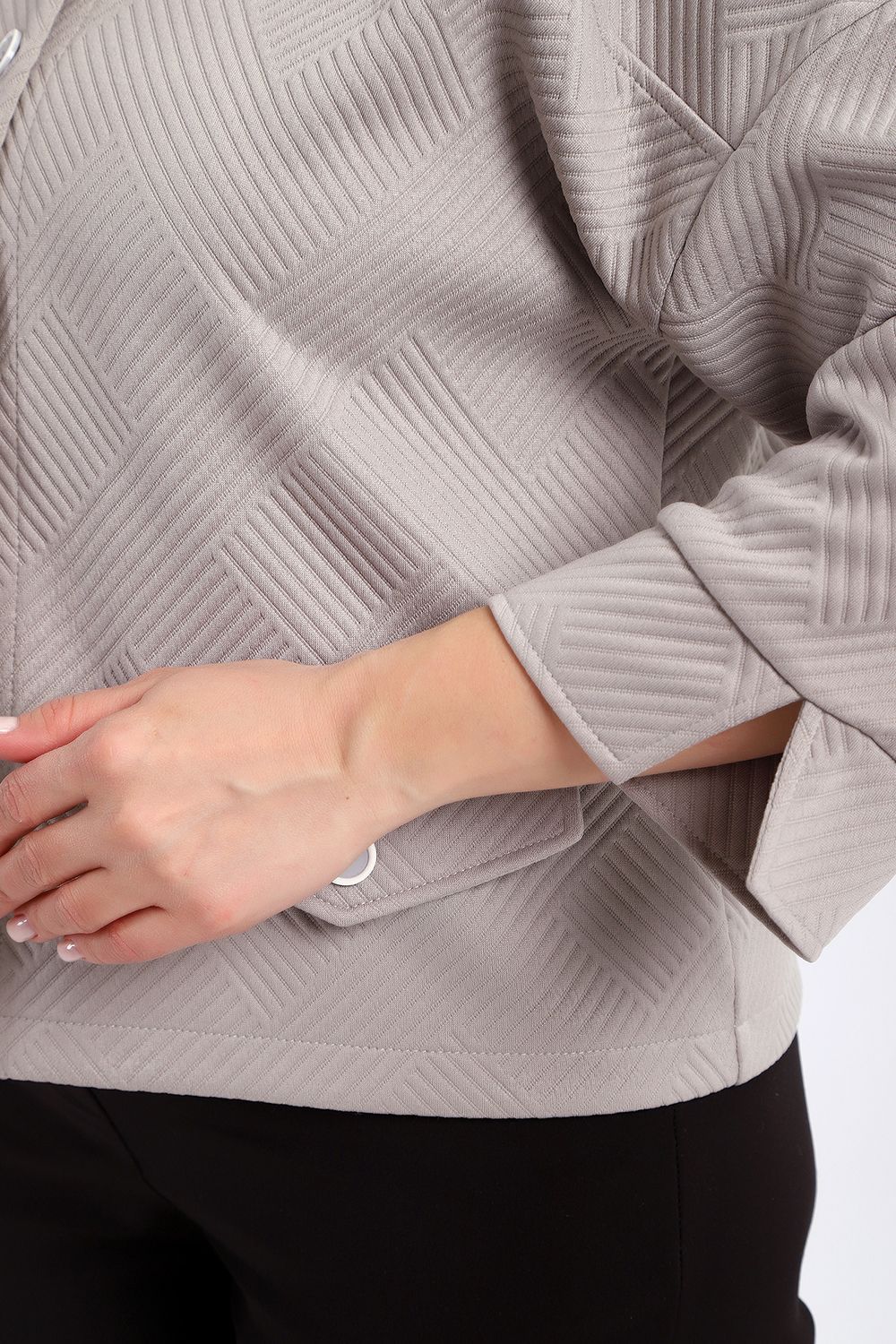 Трикотажный офисный жакет- это идеальный выбор для женщин, ищущих комфорт и элегантность в одном изделии. Укороченный жакет на пуговицах подойдет для создания различных образов, будет актуален в любое время года. Выполнен из прочного трикотажного полотна с рельефной геометрической фактурой, выглядит современно и стильно.
