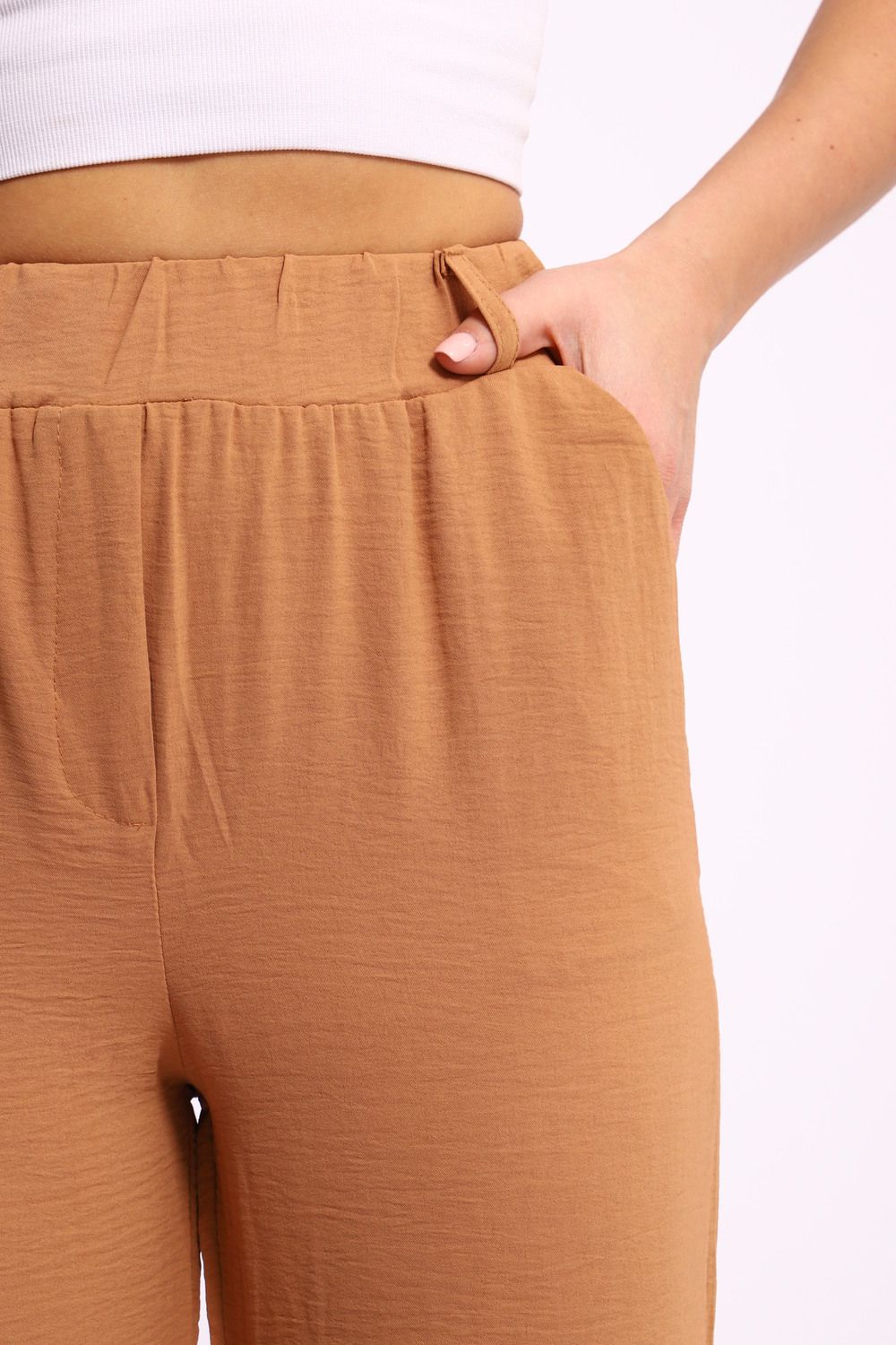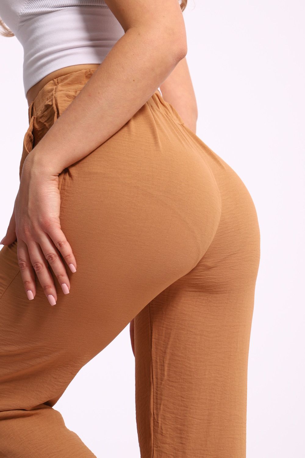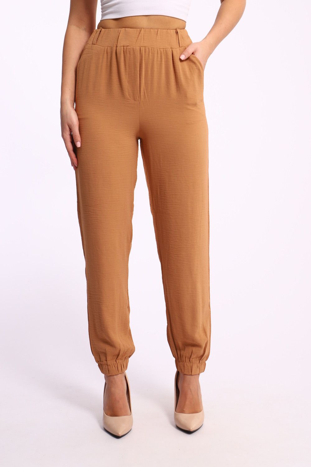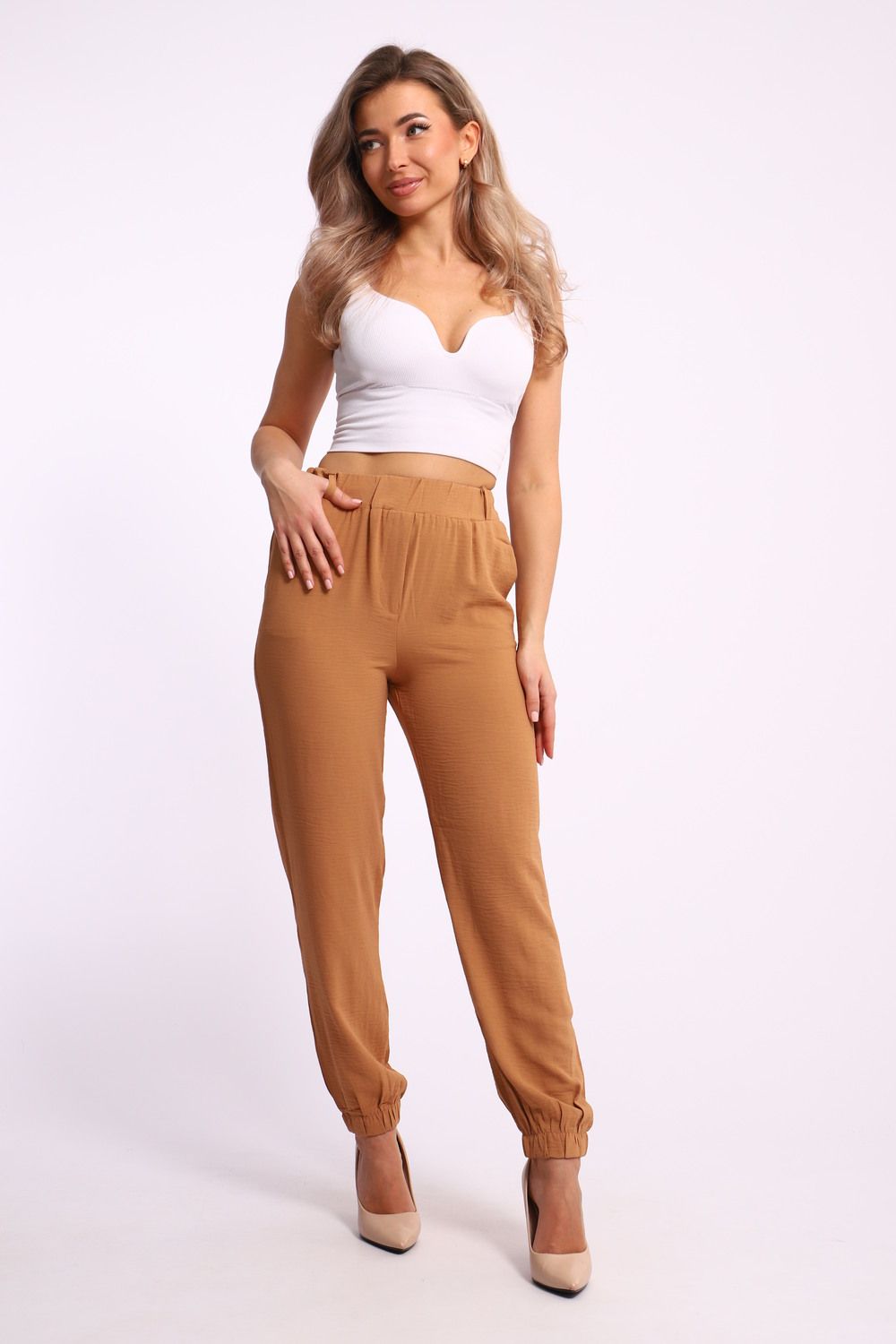 Пояс на резинке: Эластичный пояс добавляет комфорта и делает посадку брюк еще более удобной. Он обеспечивает идеальную фиксацию на талии и позволяет вам свободно двигаться в течение дня.