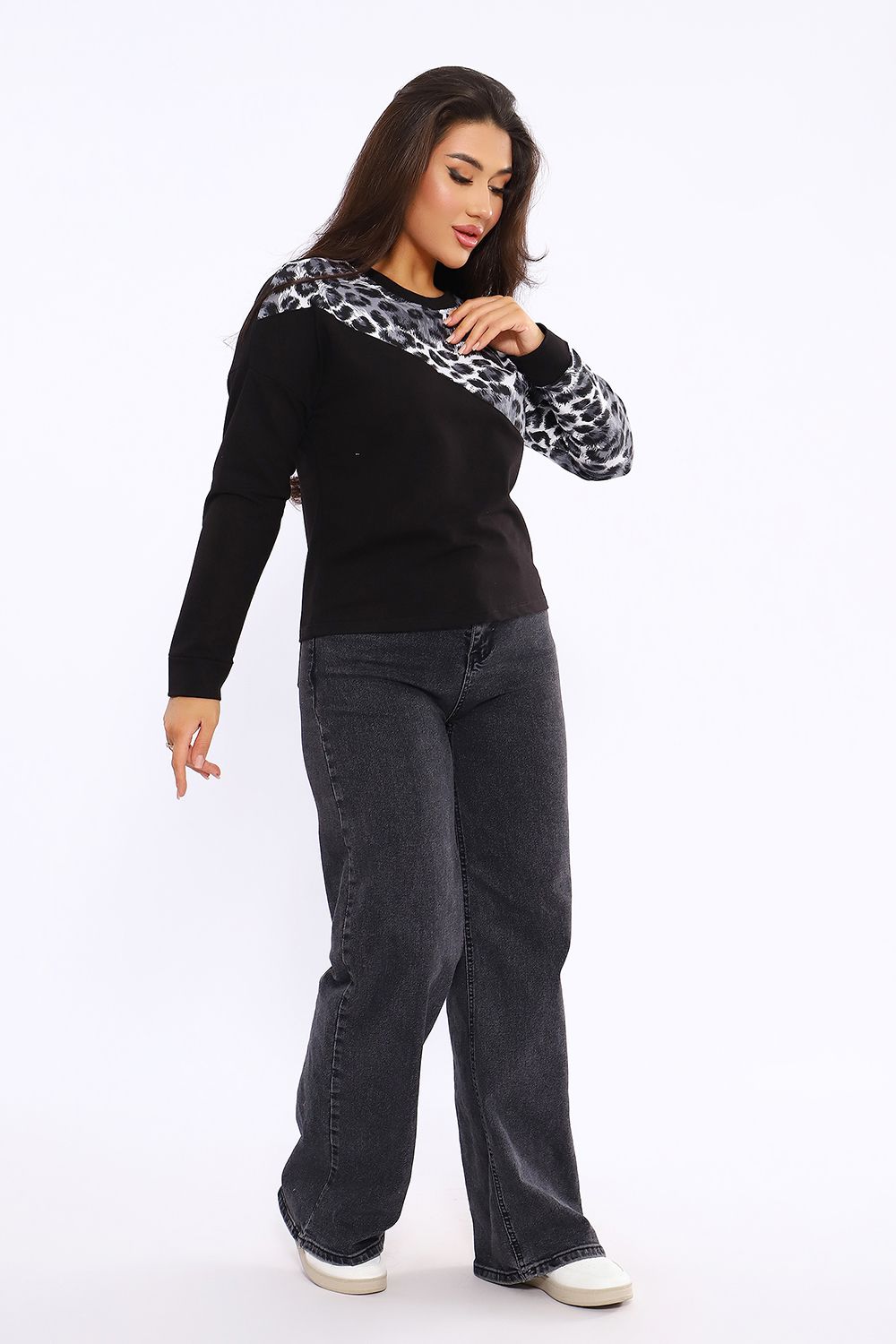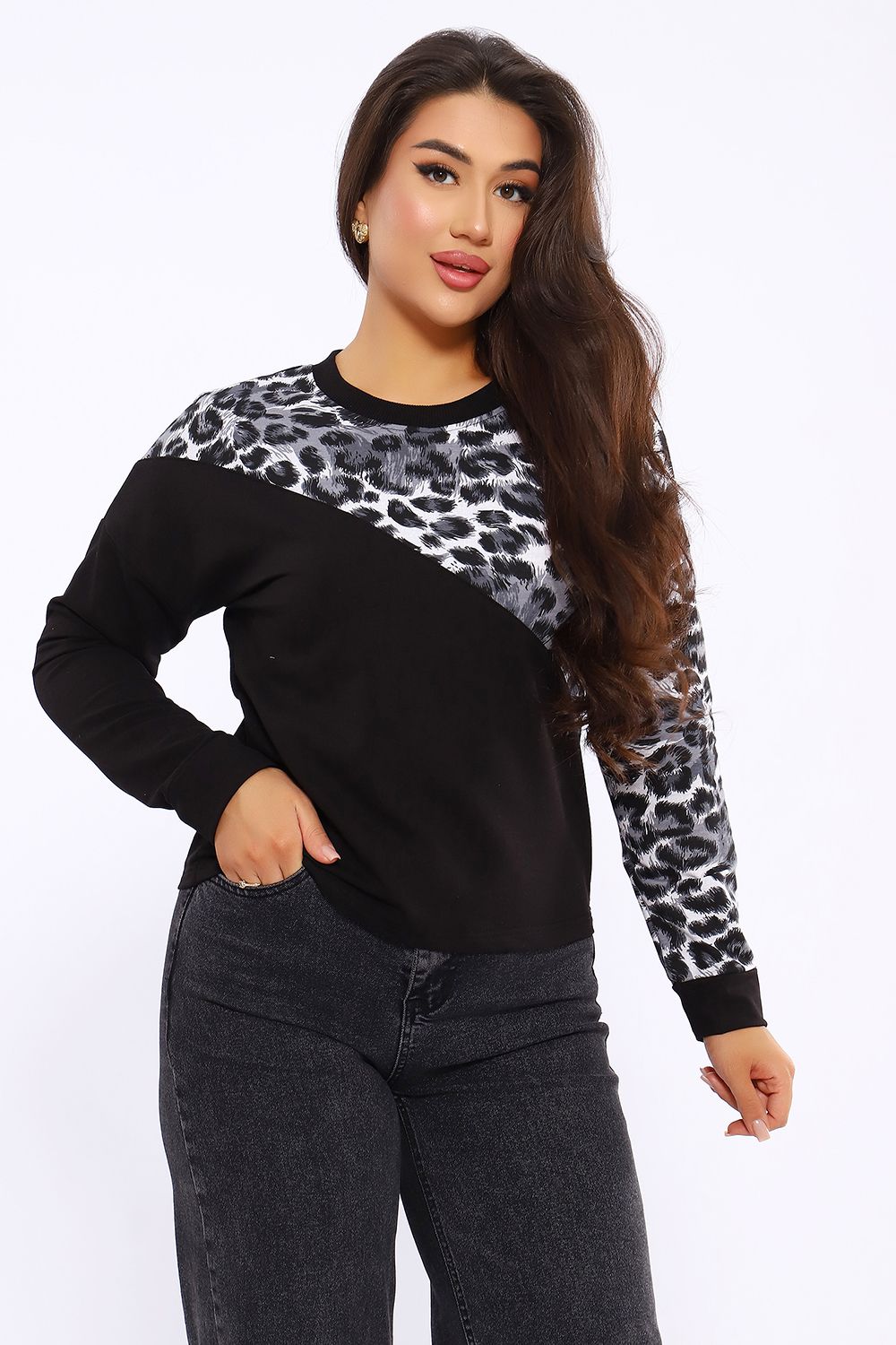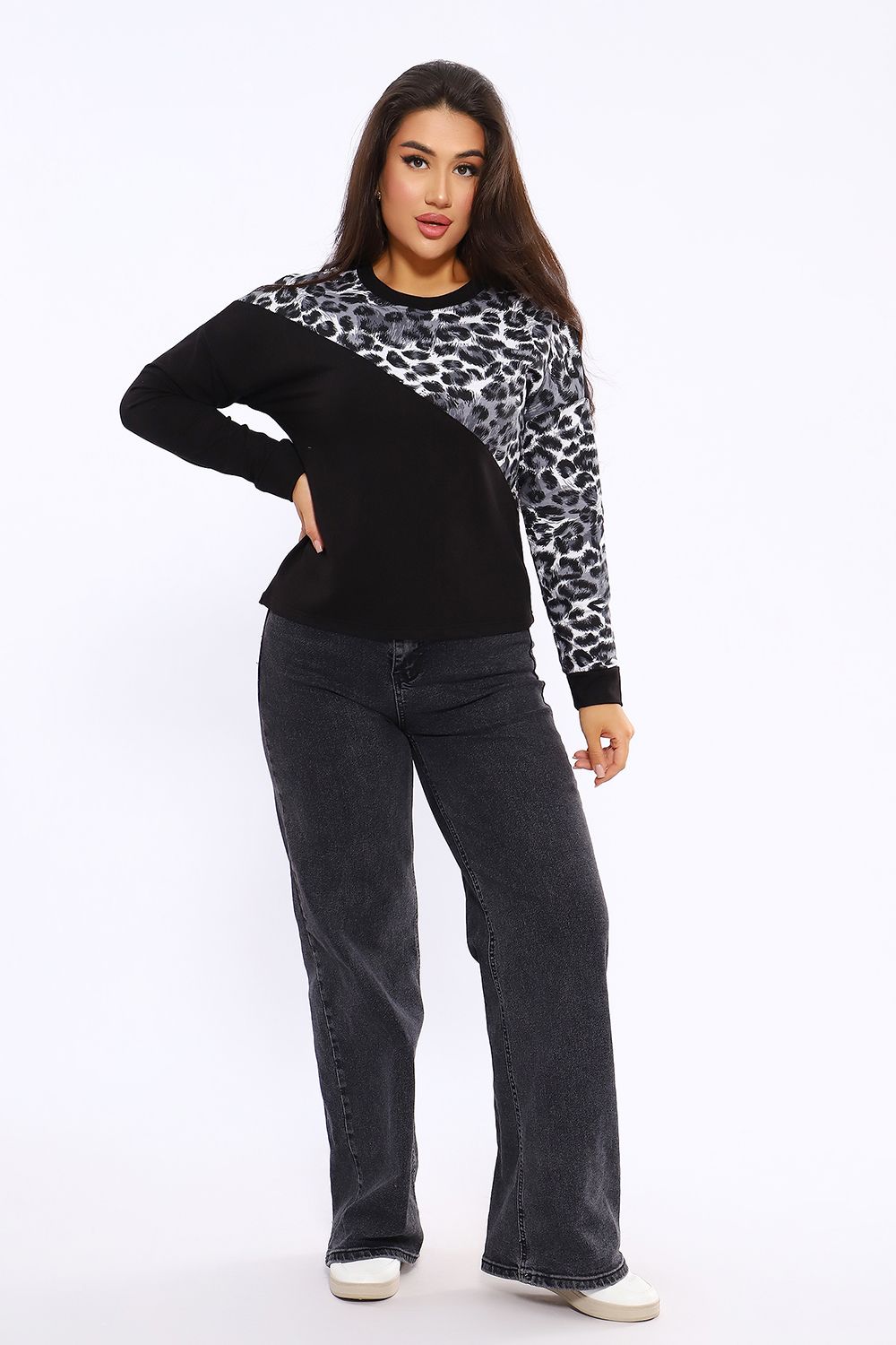 Женский свитшот леопард через плечо 2025-1 - леопард+черный
