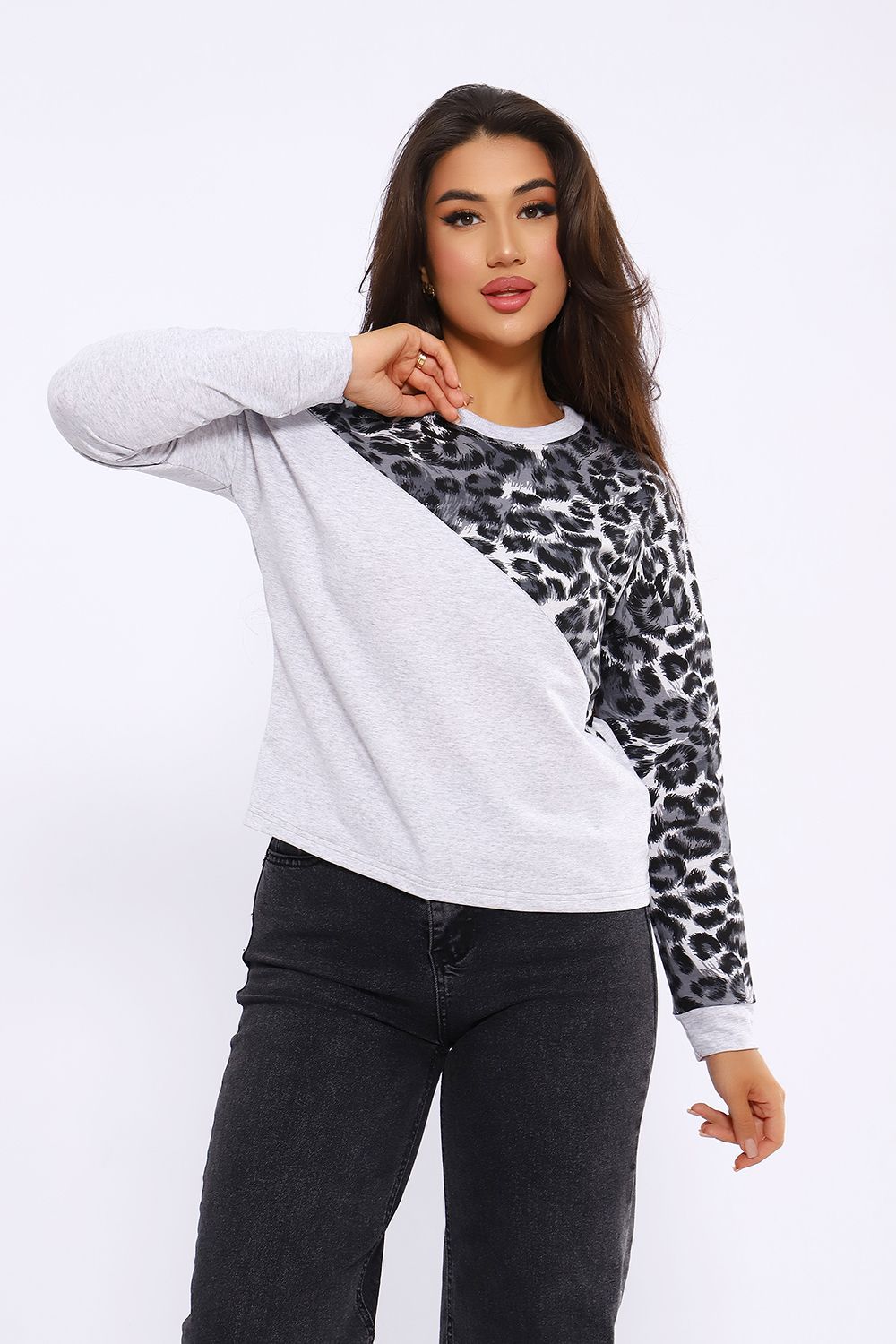 Женский свитшот леопард через плечо 2025-1 - серый леопард