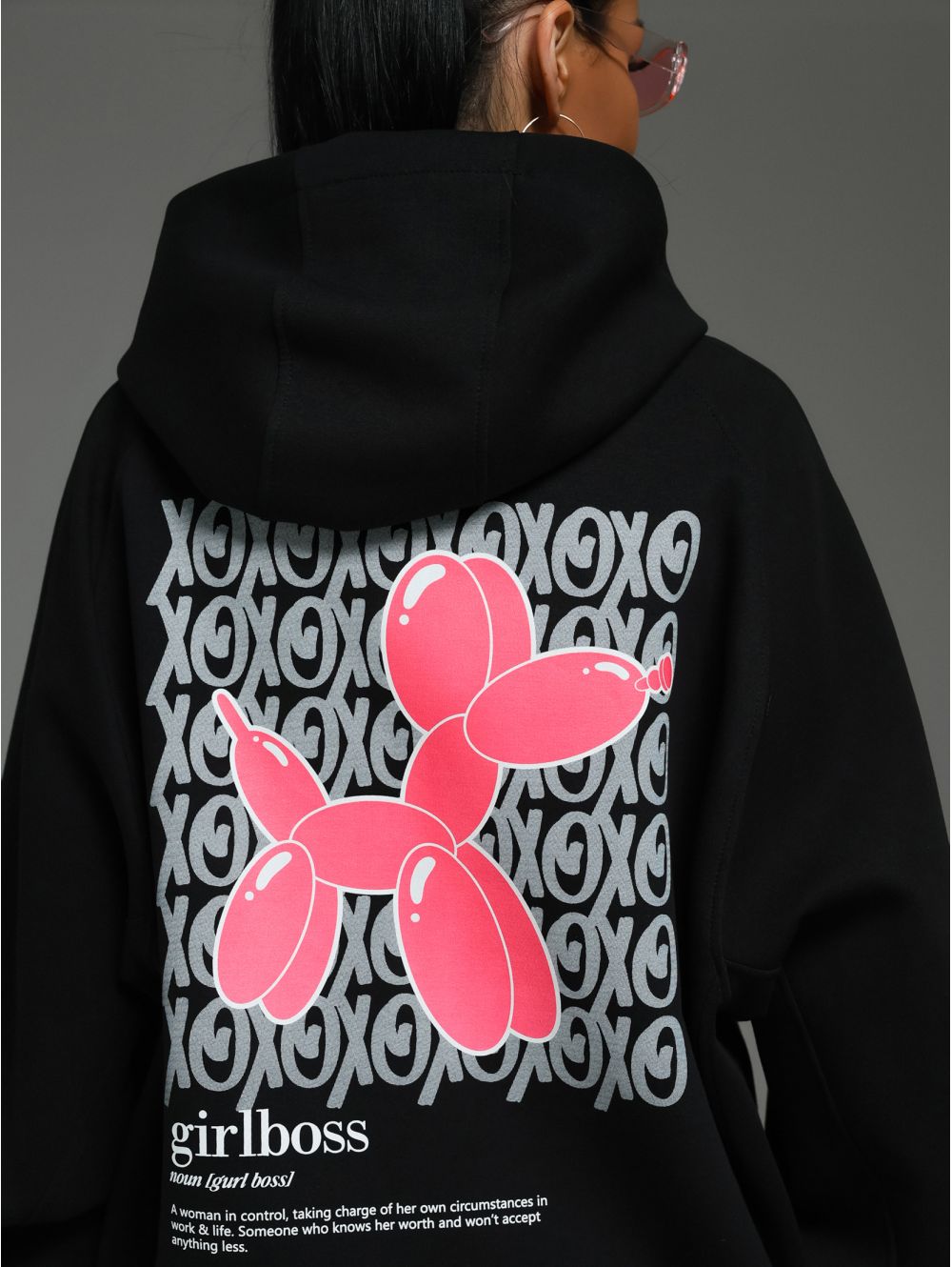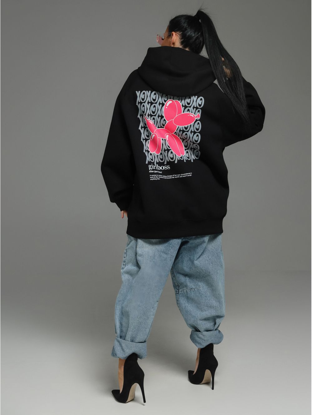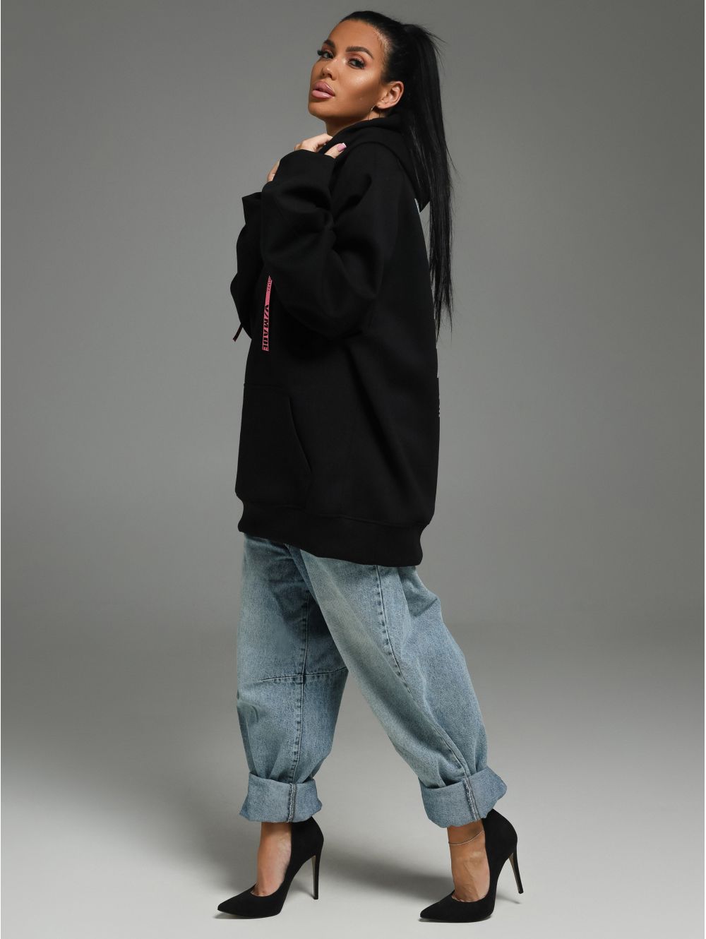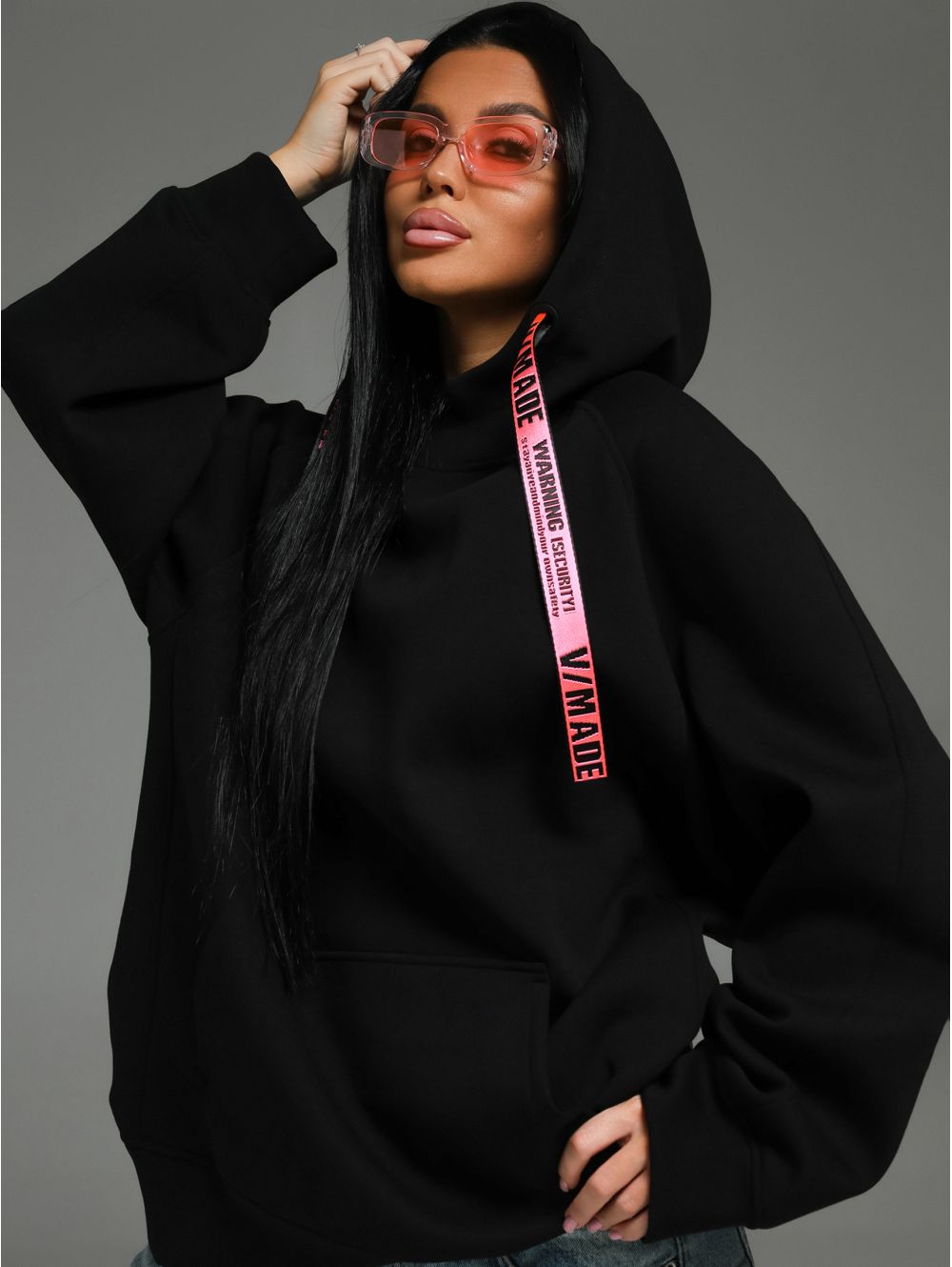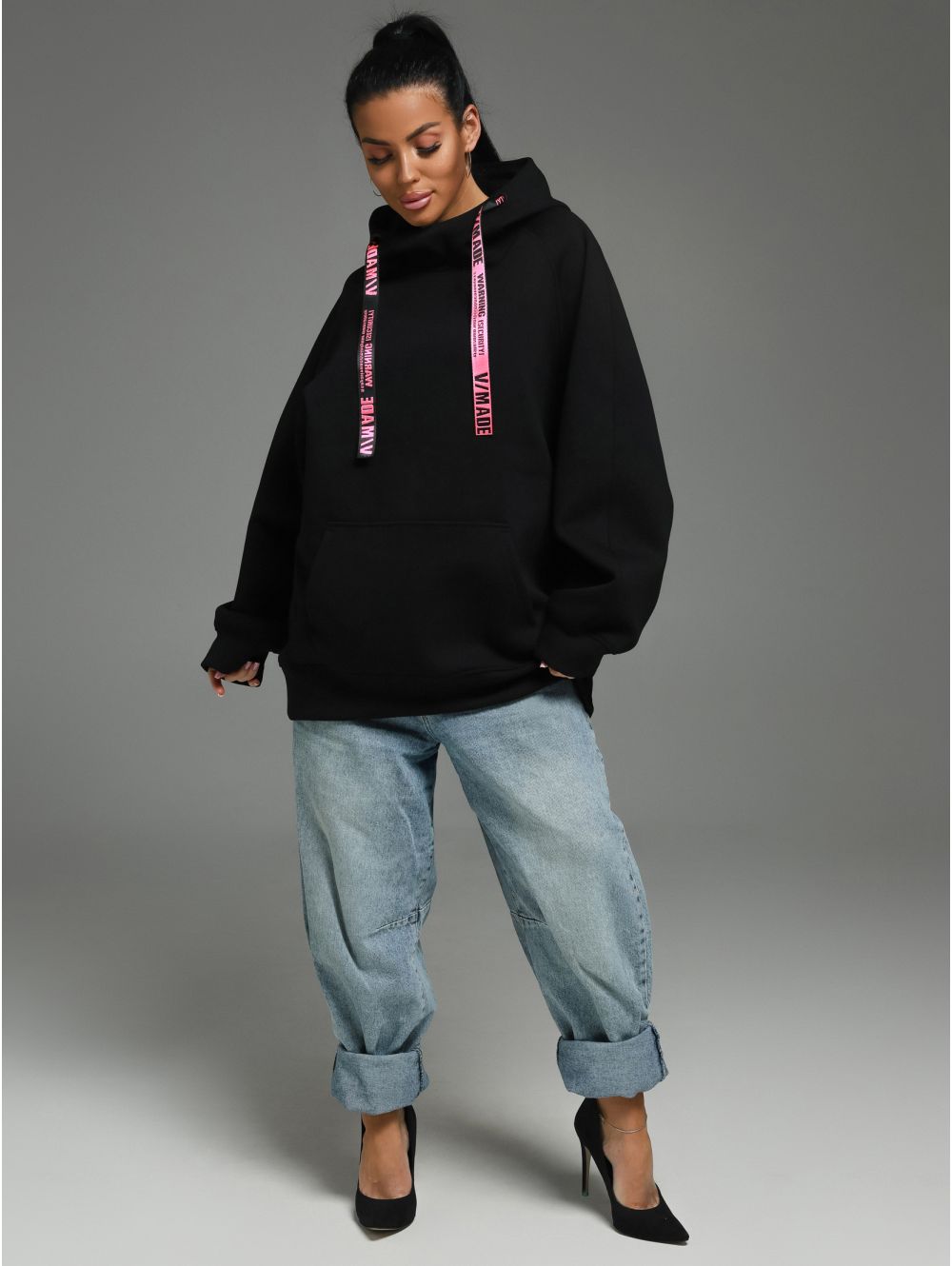 Худи – oversize кроя с капюшоном, с притачным поясом по низу, с длинным рукавом реглан на манжете.