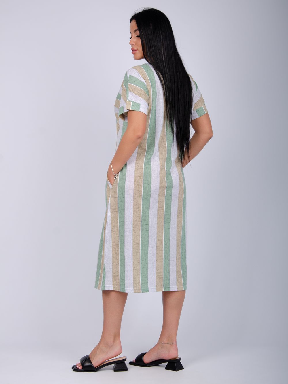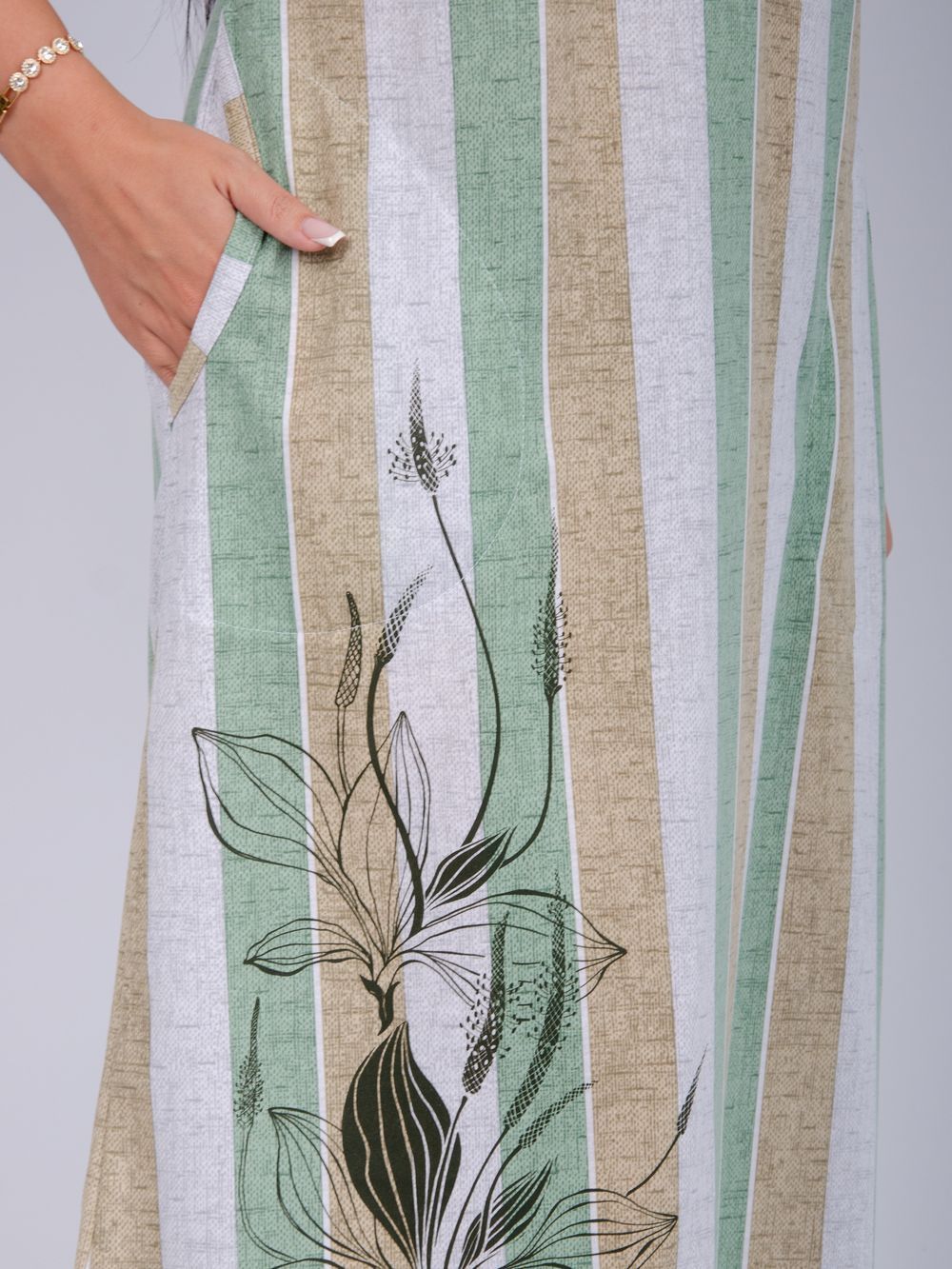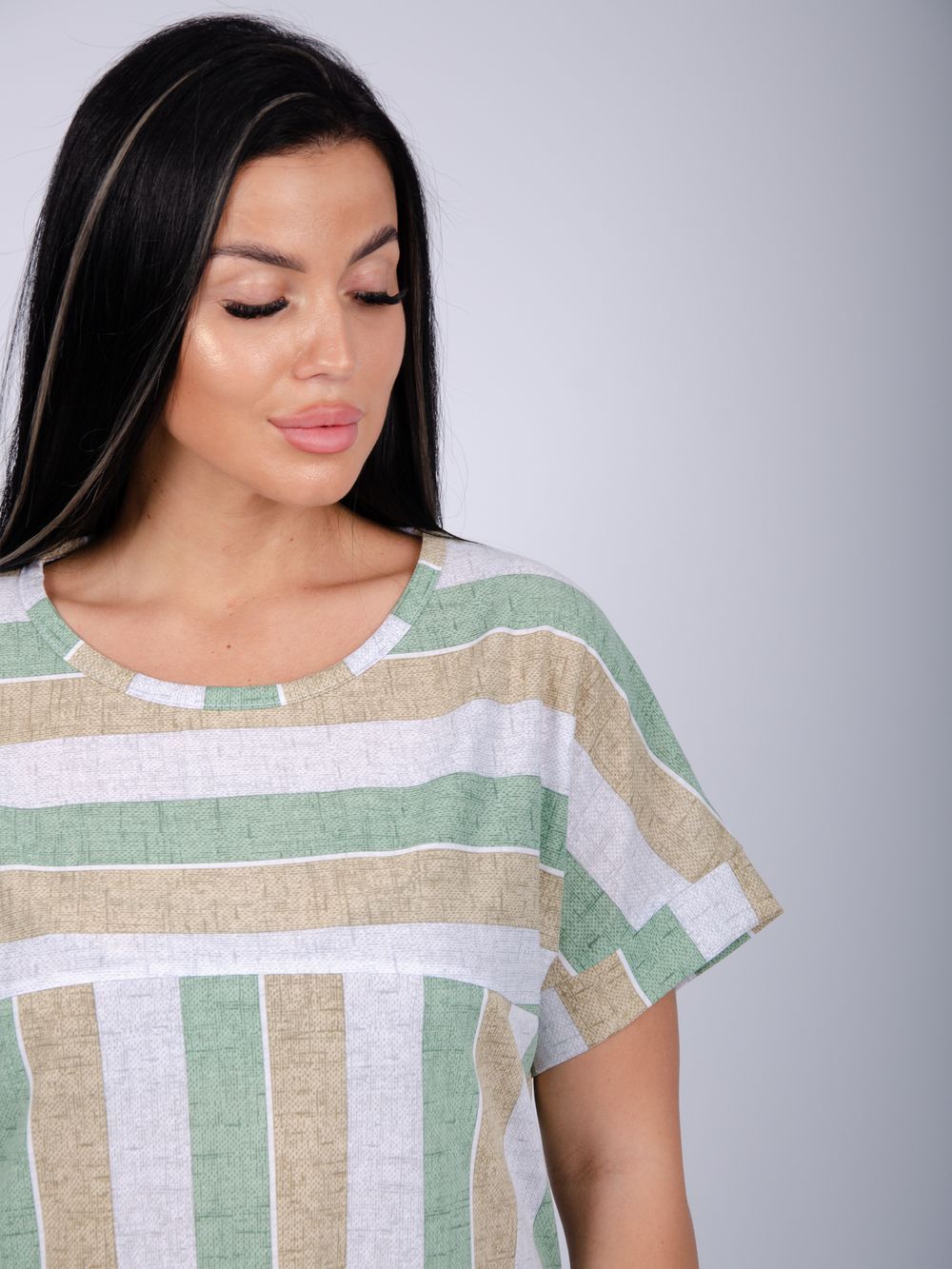 Платье Камилла зготовлено из мягкого хлопкового полотна кулирка, обеспечивает комфорт даже в жаркие дни. Подходит для ежедневного ношения благодаря повседневному стилю и удобству конструкции без застежки. Рукава средней длины на базе спущенного плеча, не стесняют движений.