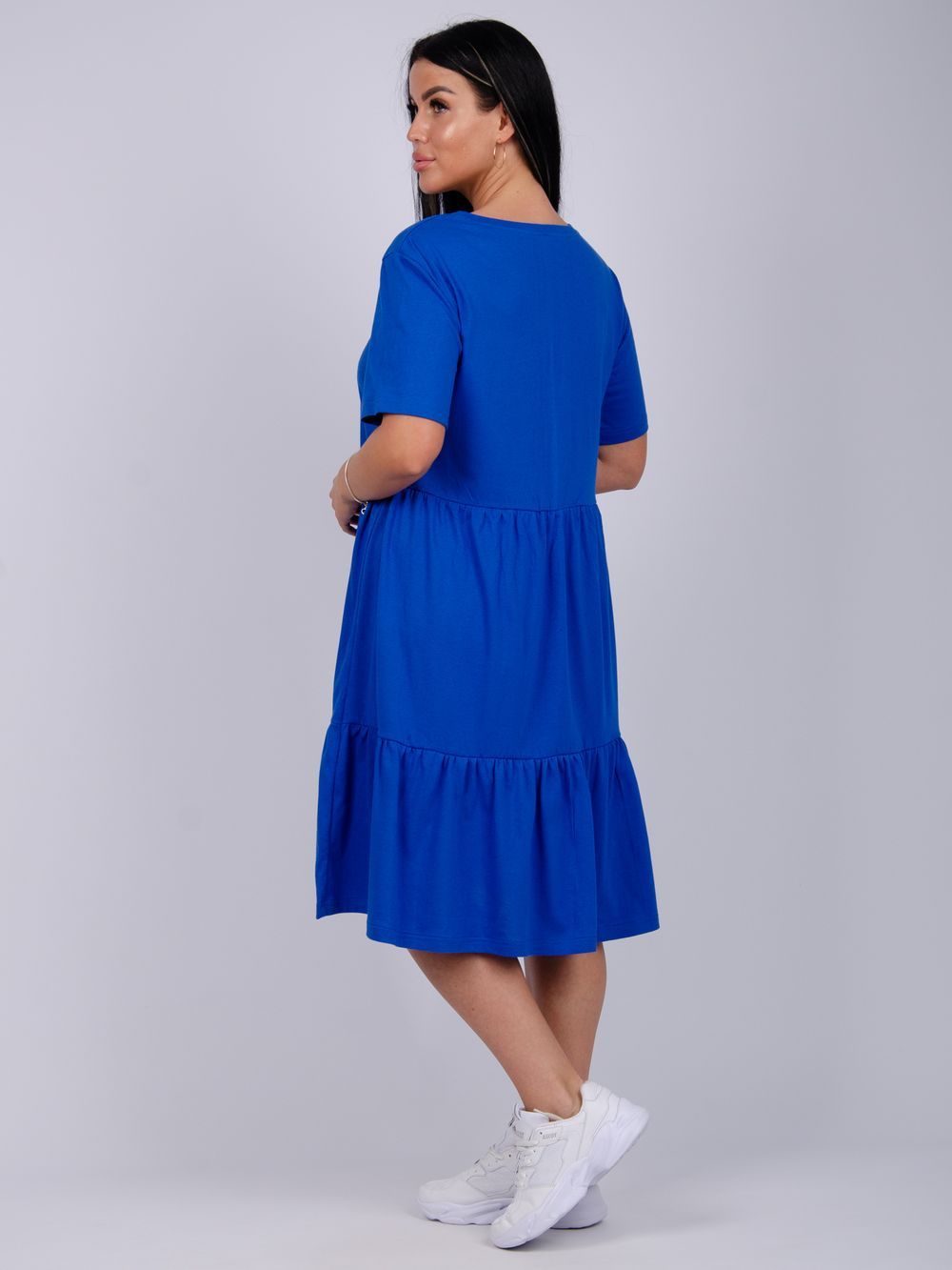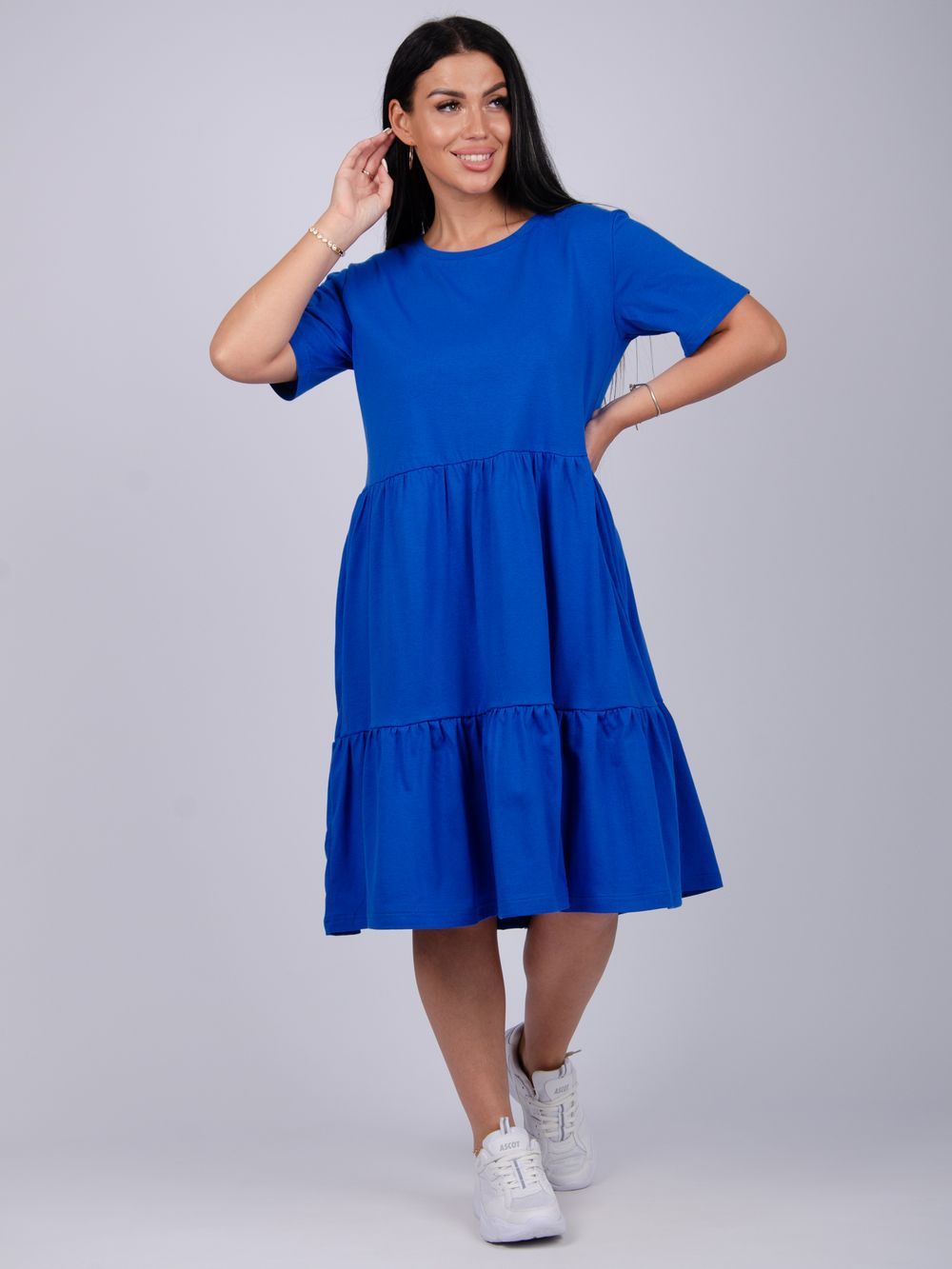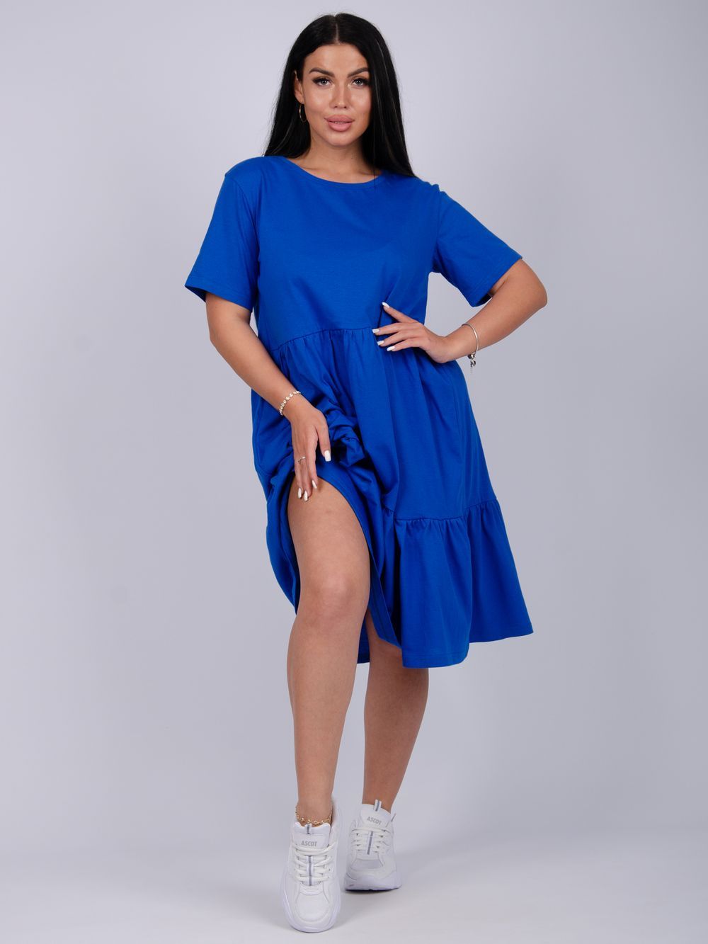 Женское летнее платье из 100 % хлопка . Трикотажное легкое платье - трапеция с ярусами подойдет на любую фигуру для полных для дам больших размеров сайз плюс ( size plus ) . В этом платье c воланами и коротким рукавом вы будете выглядеть великолепно во время прогулок , походов на море или пляж или домашнего времяпрепровождения . Трикотажная хлопковая ткань платья сарафана длины миди, мини позволяет коже дышать и вы будете чувствовать себя в нем удобно и комфортно , даже в самое жаркое лето .