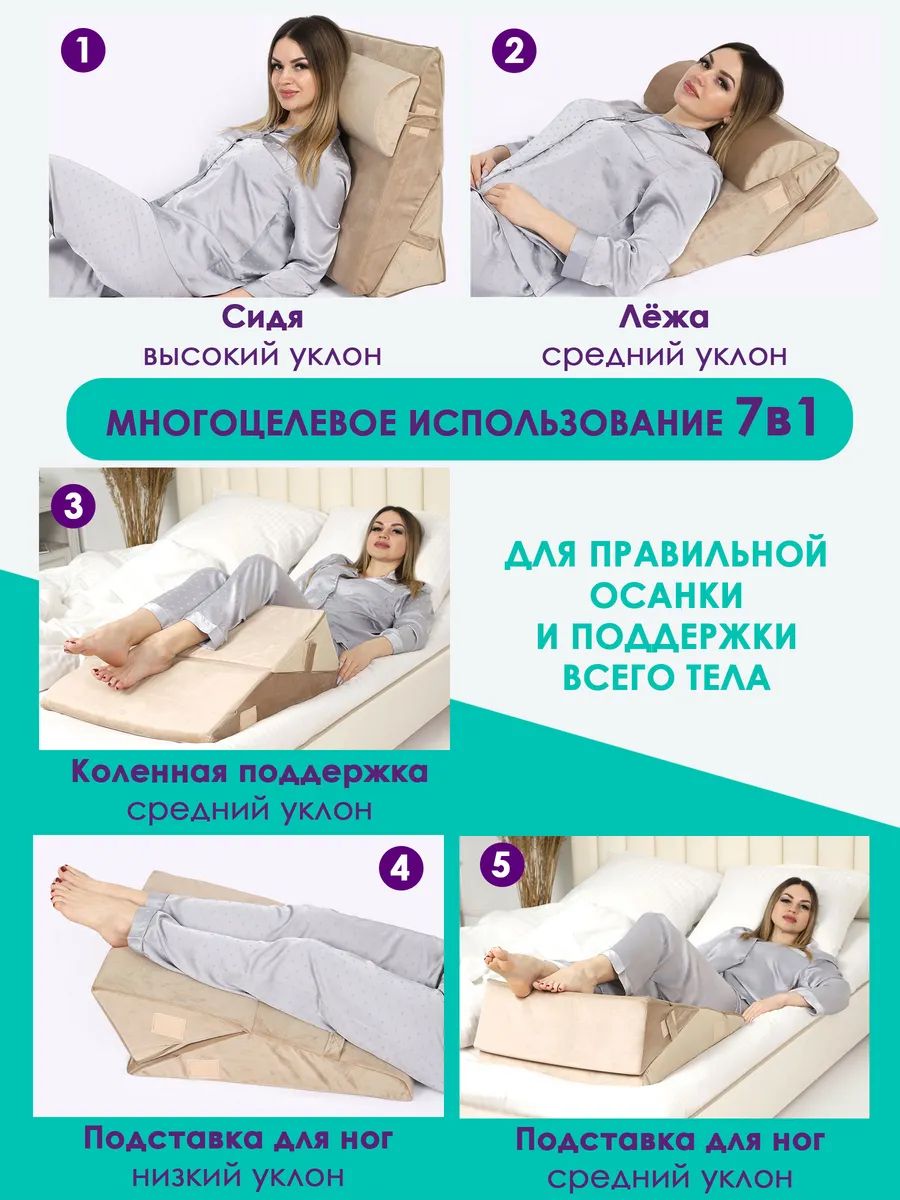 Изделие упругое, держит форму. Клиновидная подушка подходит для снятия напряжения и усталости ваших ног. Поможет вашим ногам принять нужное положение во время дневного сна. Прекрасно подойдет как для кресла, так и для дивана или кровати.