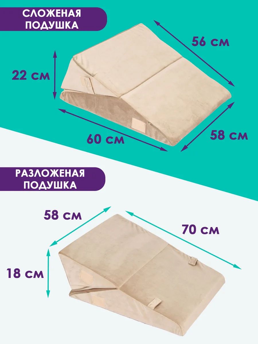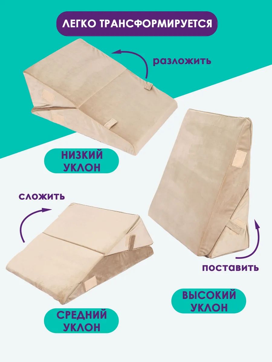 Клиновидная подушка при гэрб для сидения и сна PTK, велюр, поролон, трансформер