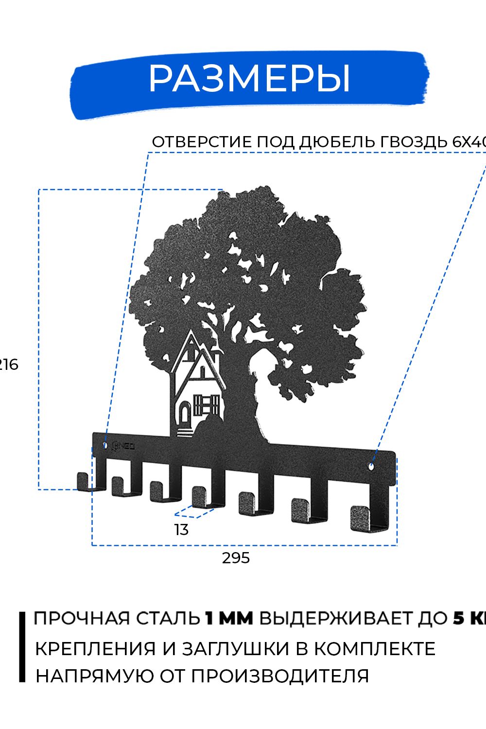 Интересный дизайн, который впишется в любой интерьер. Может использоваться для хранения ключей и как вешалка для одежды, бус, зонтов, сумок. Прочная сталь 1 мм выдерживает до 5 кг. Крепление входит в комплект. Отличный подарок на день рождение, новоселье, новый год.