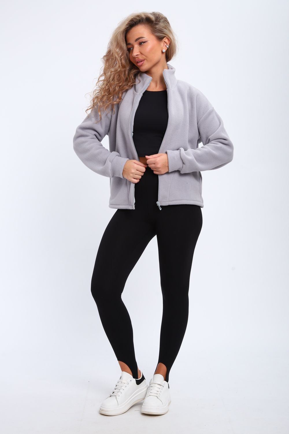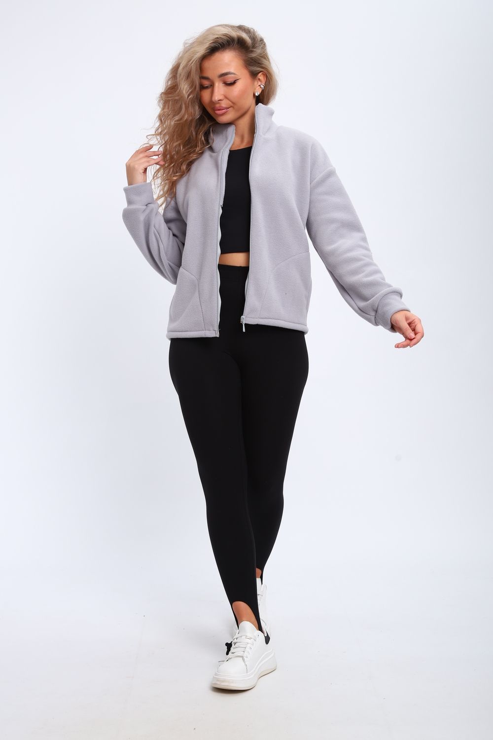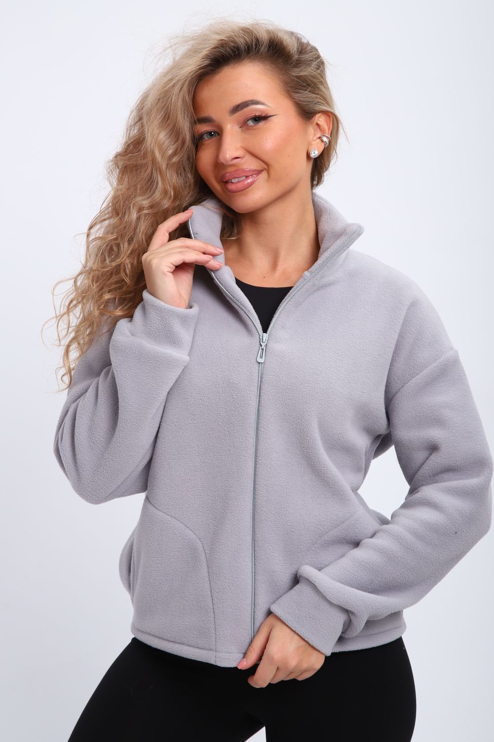 Кофта женская теплая на молнии с карманами. Рукав длинный на манжете, воротник стойка.