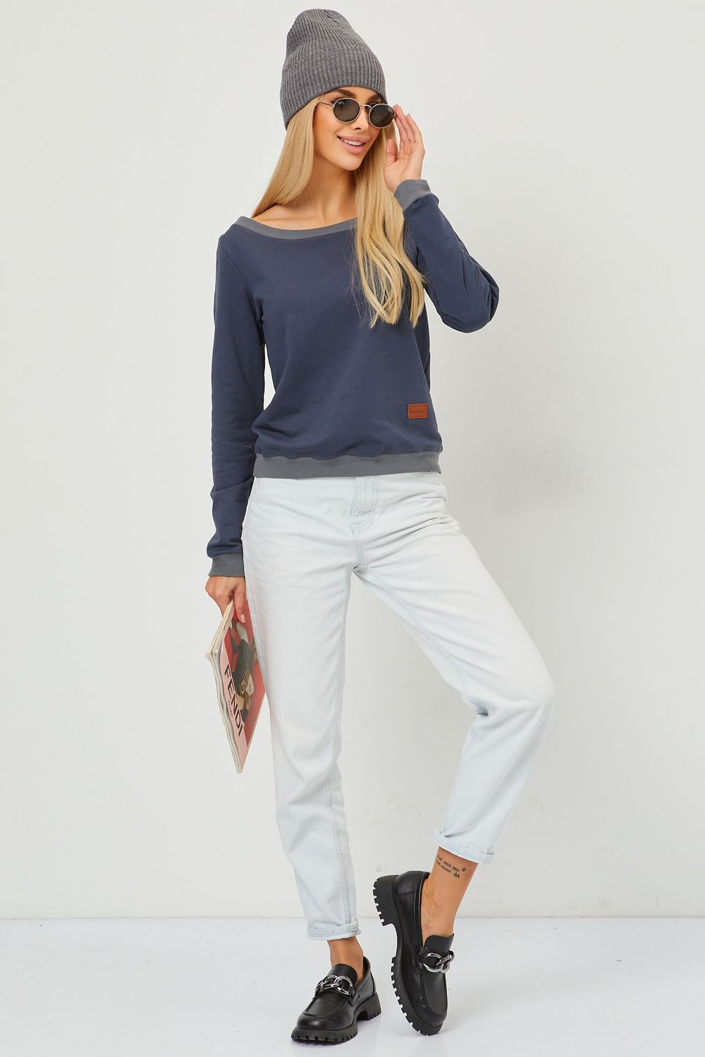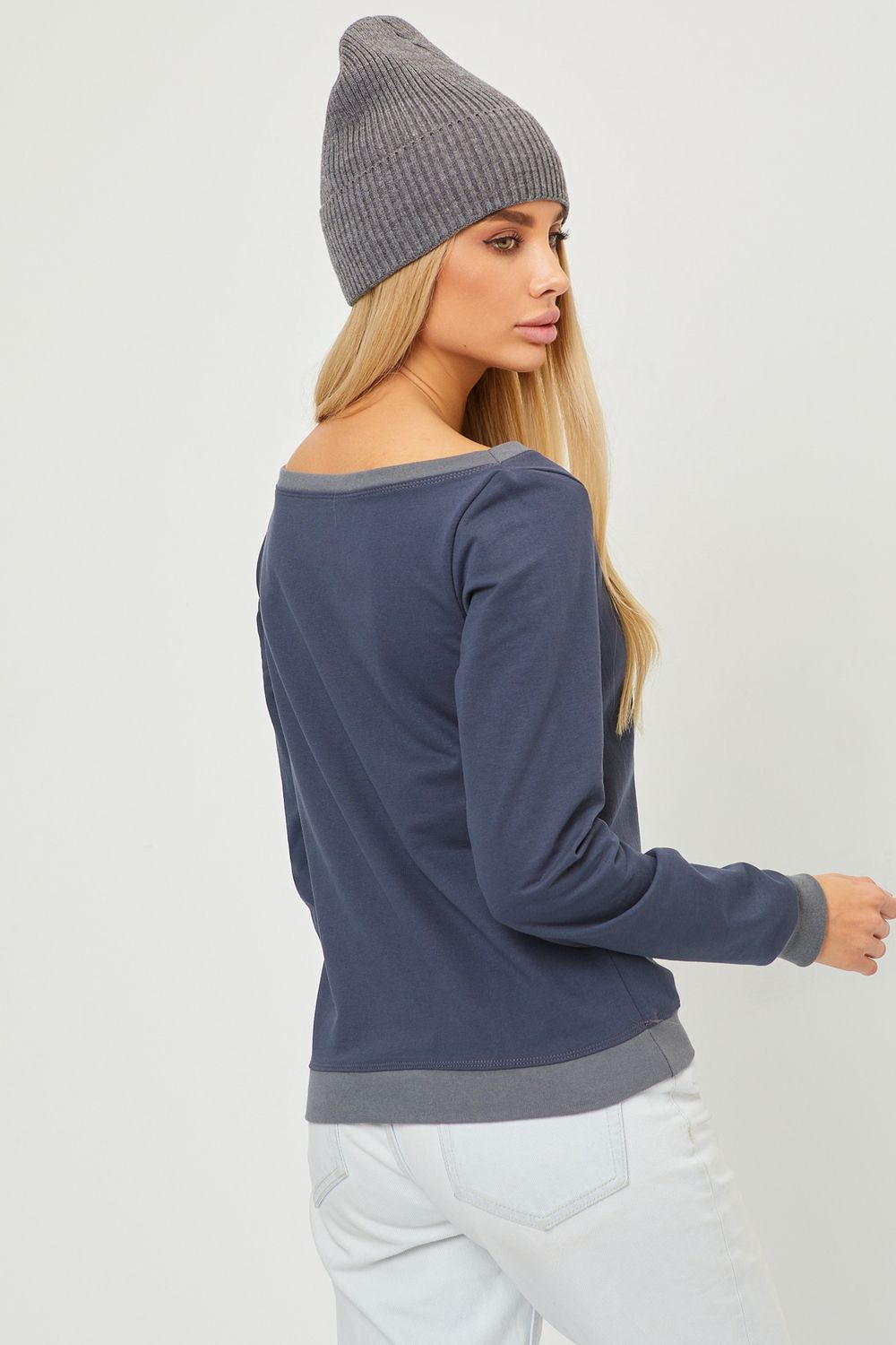 Кофта лодочка женская с округлым вырезом - графит