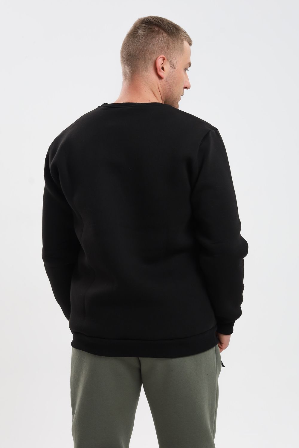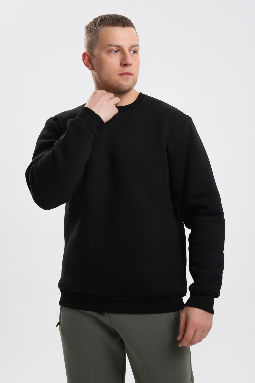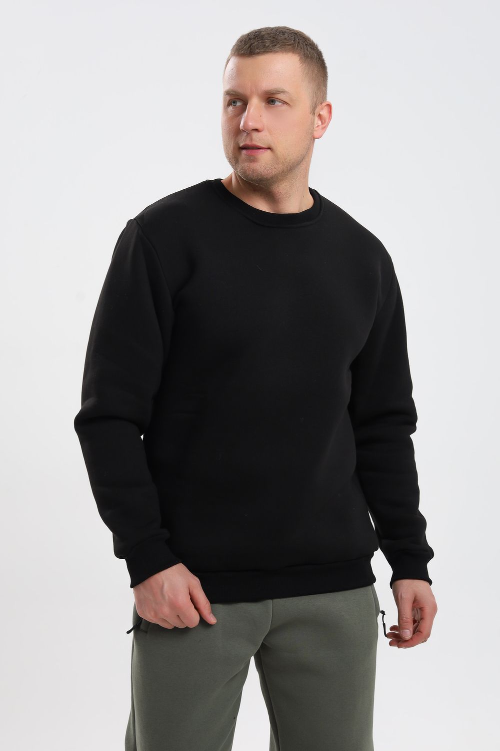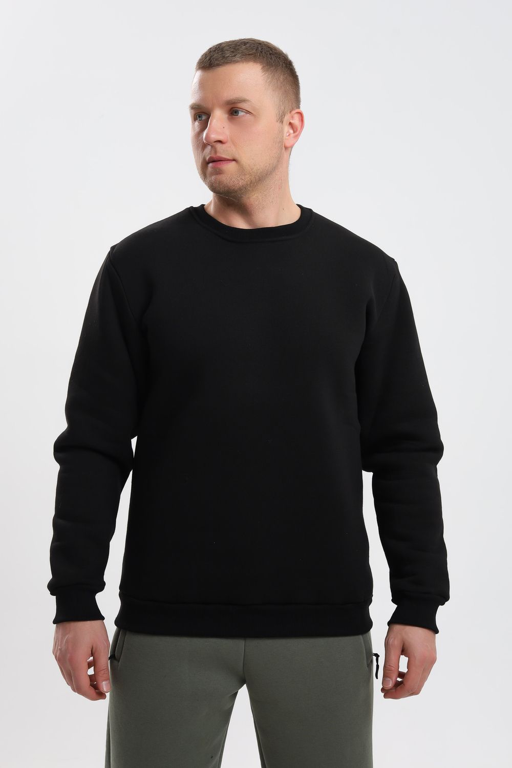 Свитшот черный мужской с начесом это идеальное сочетание стиля и комфорта, подойдет для любых ситуаций - повседневные прогулки, занятий спортом или для праздничных корпаративов. Мягкий начес внутри обеспечивает тепло и не линяет, что делает кофту незаменимой осенью и зимой. Свободный крой и отстуствие капюшона придают элегантный вид, рукава и нижняя часть свитшота на манжетах. Кофта выполнена из высококачественных материалов, которые сохраняют свои свойства после многократных стирок.