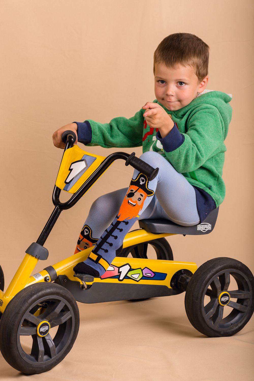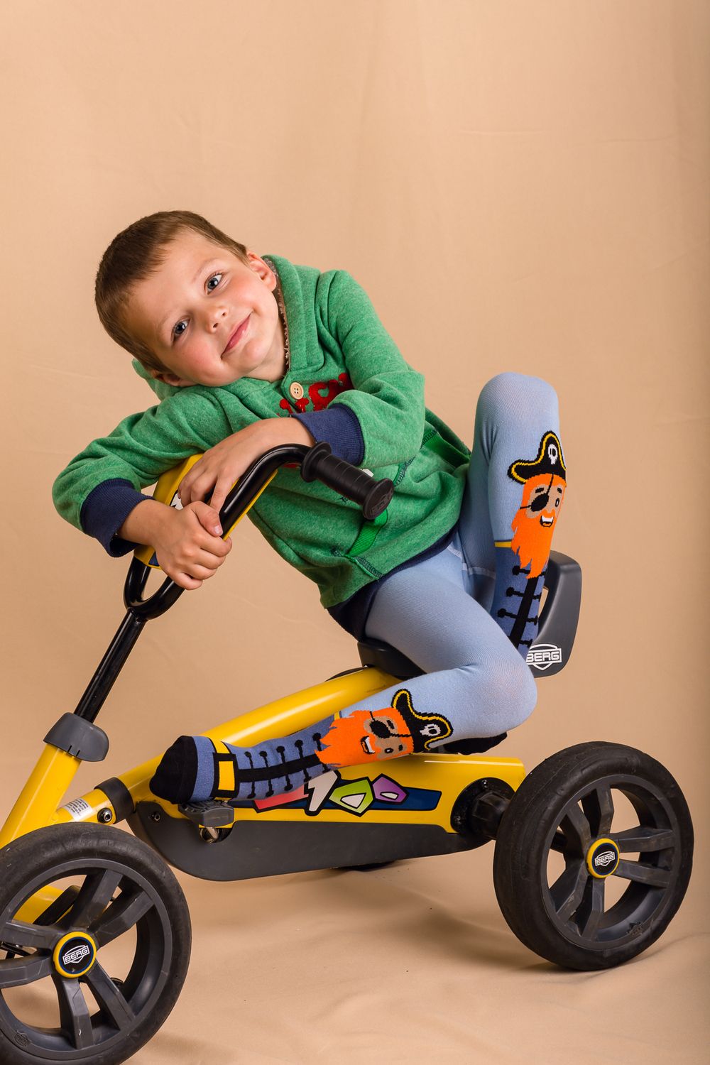 Яркие колготки для мальчиков. Однотонный верх, снизу вывязан пират, сзади - корабль.