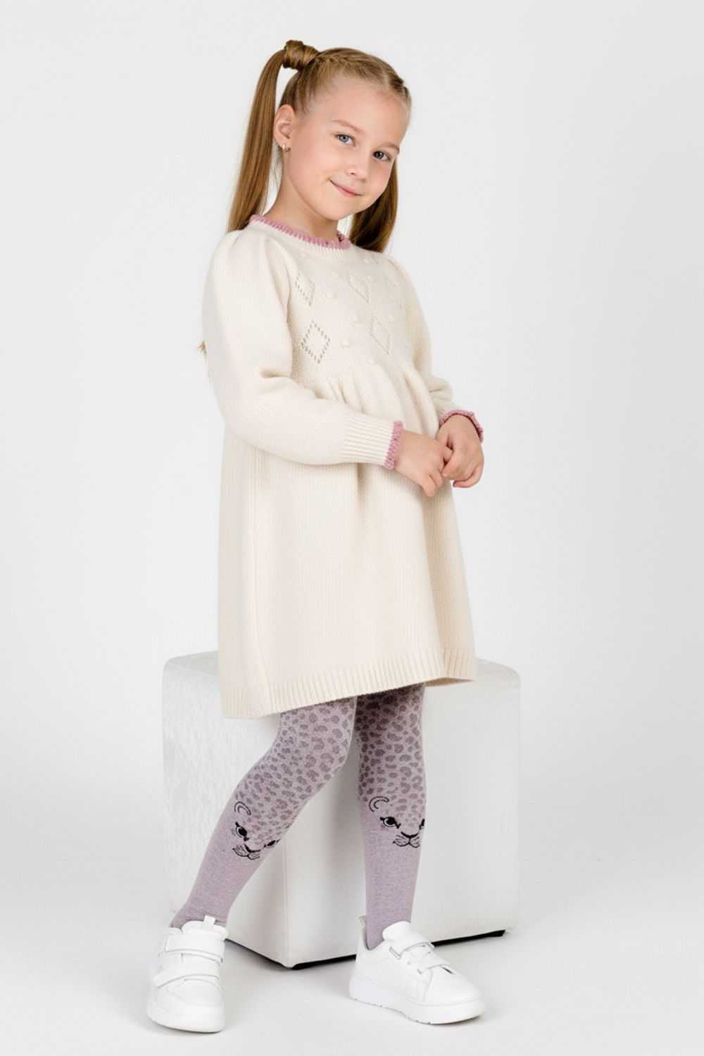 Детские колготки для девочек. Ниже колена кошачья мордочка. Узор в виде пятен леопарда.