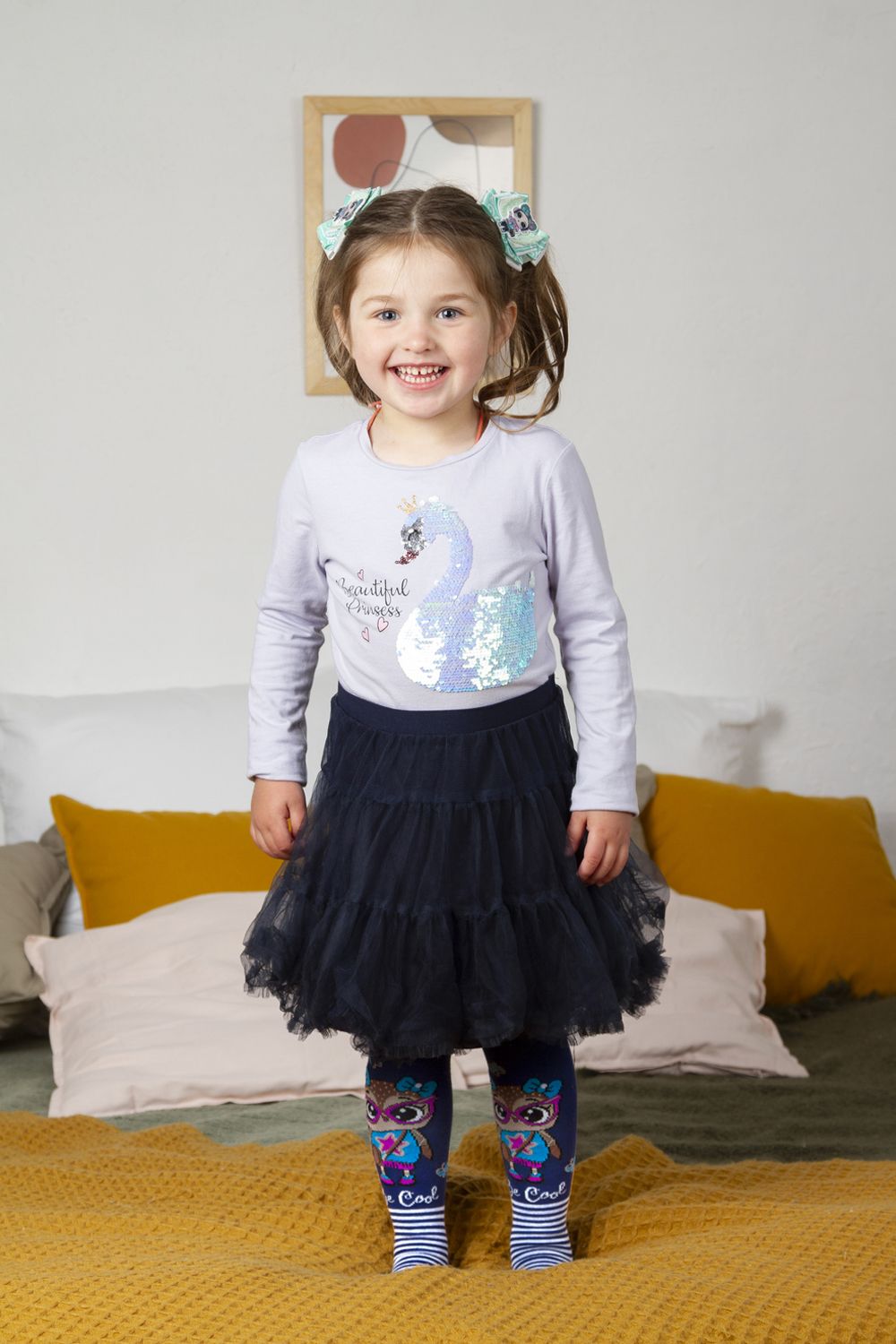 Оригинальные детские колготки. Однотонная основа, носок в полоску. С обеих сторон вывязана сова и надпись "Be Cool"