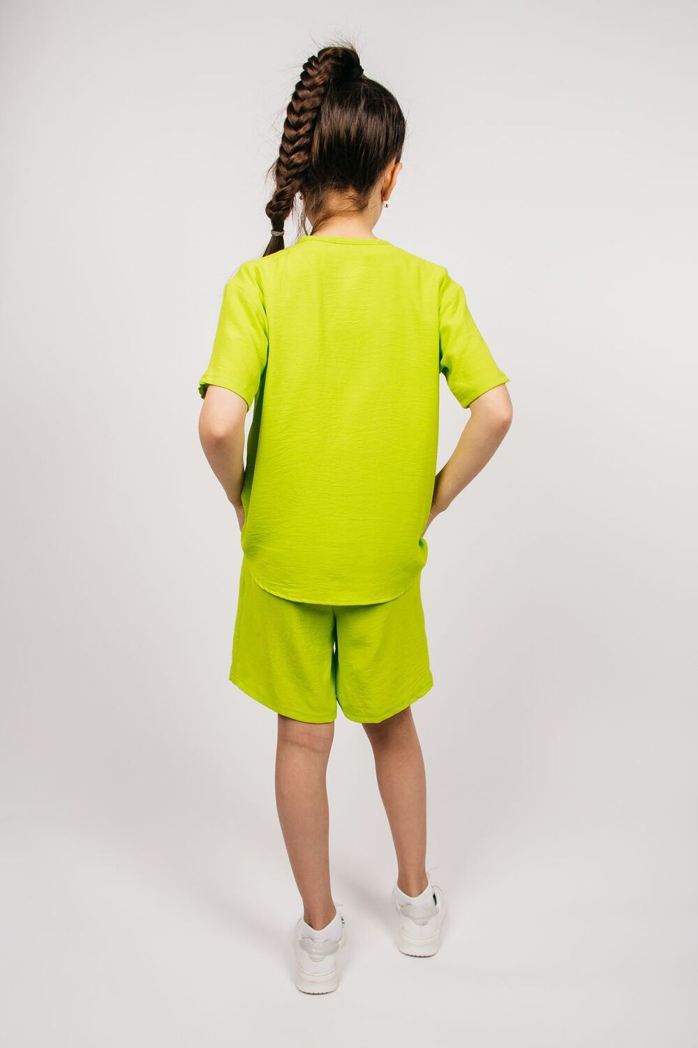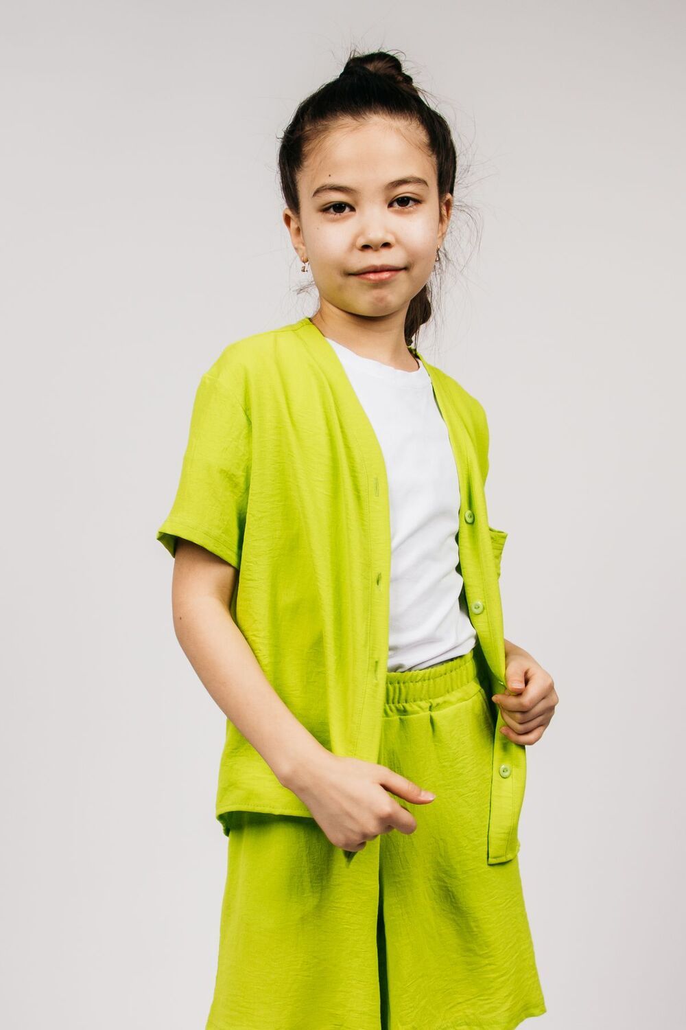 Нарядный костюм для девочек на лето выполнен из ткани сингапур. Комплект одежды состоит из рубашки прямого силуэта, плечо удлинено, с короткими рукавами и удлинёнными шортами на резинке. Блузка застегивается на пуговицы, имеет накладной карман. Свободные шорты оснащены двумя боковыми карманами. Крутой трикотажный костюм уместен летом, на день рождения, вечерние прогулки и фотосессию. Отлично подойдет на девочку подростка, как трендовый подростковый костюмчик. После стирки возможна усадка изделия. Состав: 92% полиэстер, 8% эластан. Плотность 170 гр.