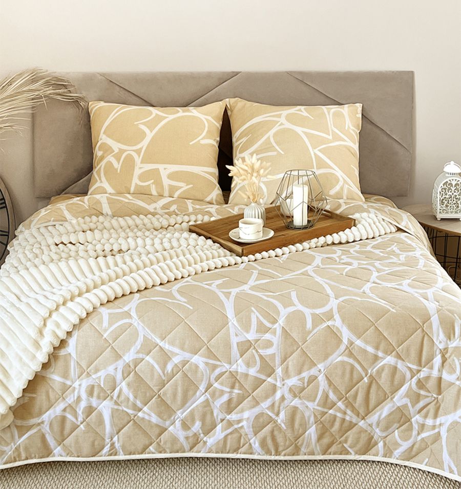 Уникальность набора в том, что в него входят: наволочки, простыня и легкое всесезонное одеяло. Это современное и очень удобное решение, которое идеально подходит тем, кто хочет быстро застилать кровать. Покупая постельные комплекты с одеялом вы экономите на покупке отдельного одеяла. Так же одеяло можно использовать как покрывало, используя его с двух сторон. Комплект легко стирается в обычной машине.
