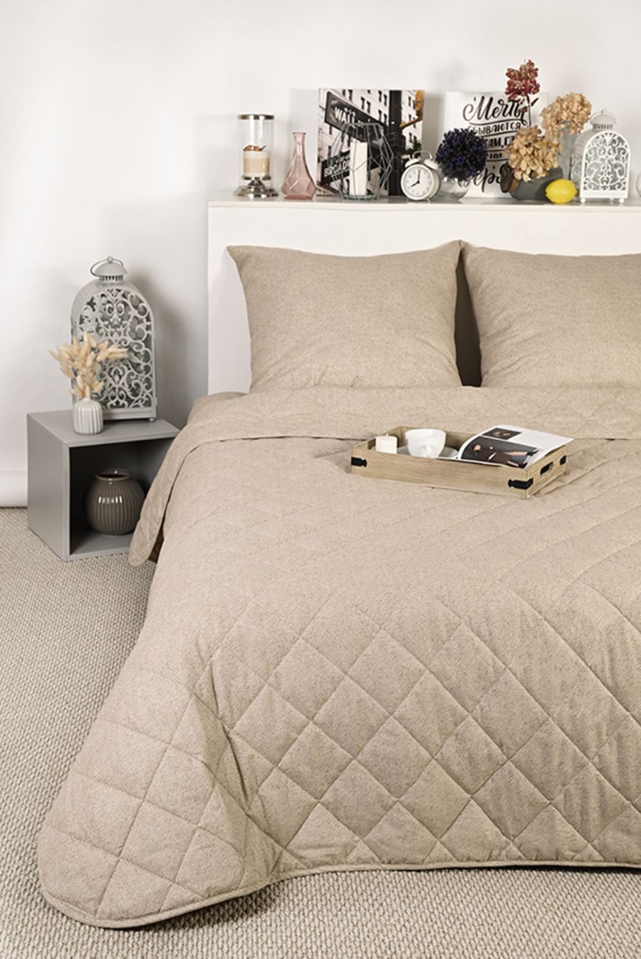 Края одеяла обработаны окантовочным материалом, наволочки клапан
