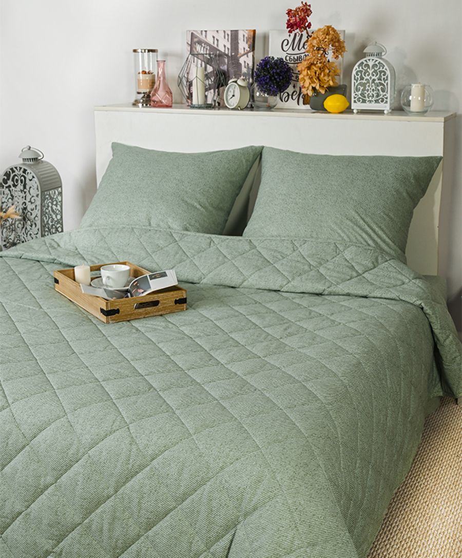 Уникальность набора в том, что в него входят: наволочки, простыня и легкое всесезонное одеяло. Это современное и очень удобное решение, которое идеально подходит тем, кто хочет быстро застилать кровать. Покупая постельные комплекты с одеялом вы экономите на покупке отдельного одеяла. Так же одеяло можно использовать как покрывало, используя его с двух сторон. Комплект легко стирается в обычной машине.